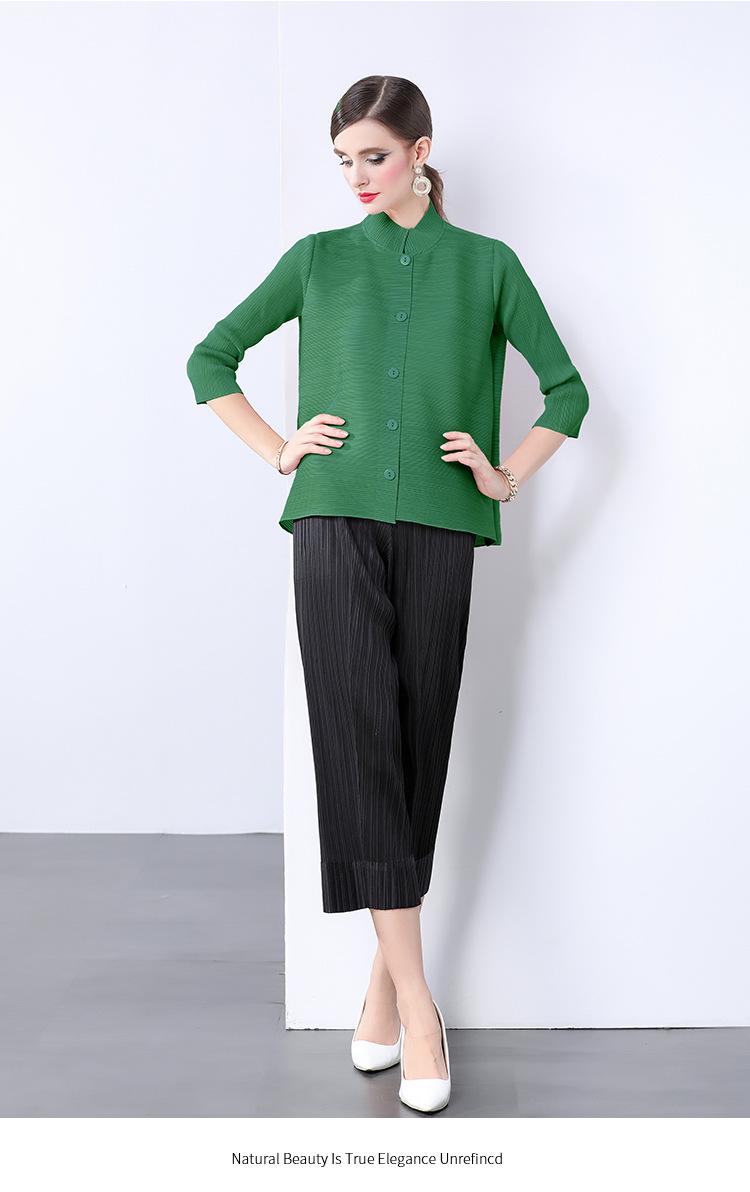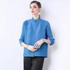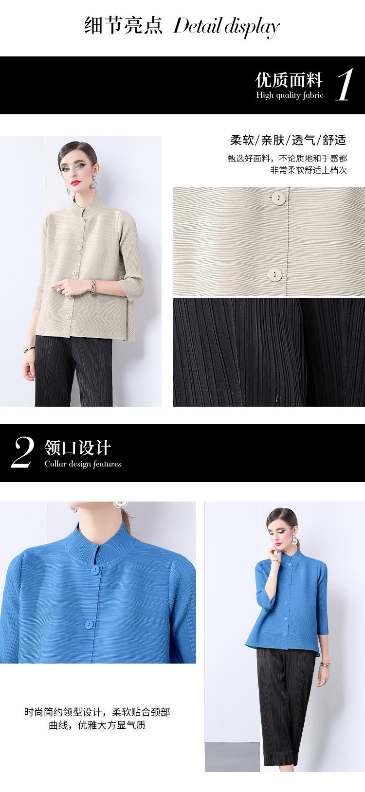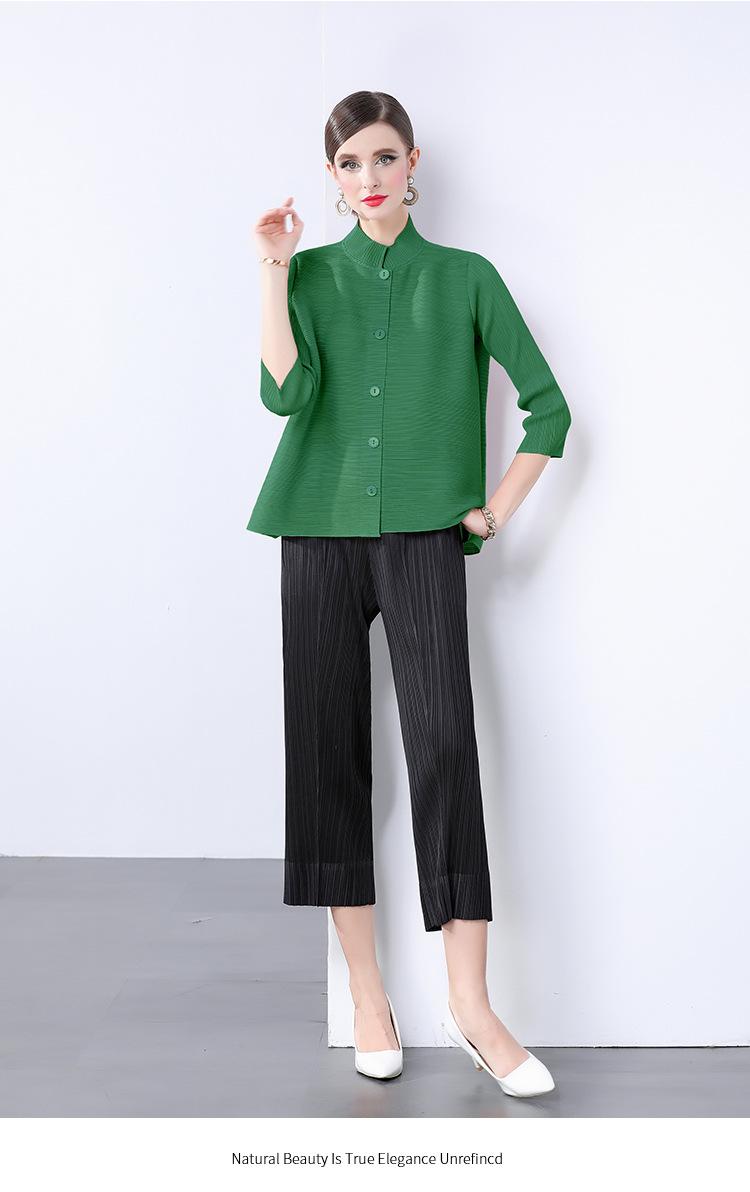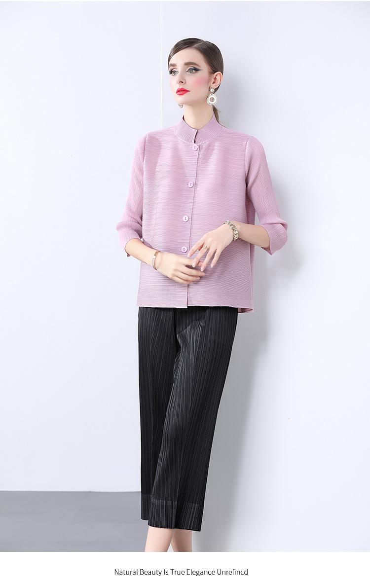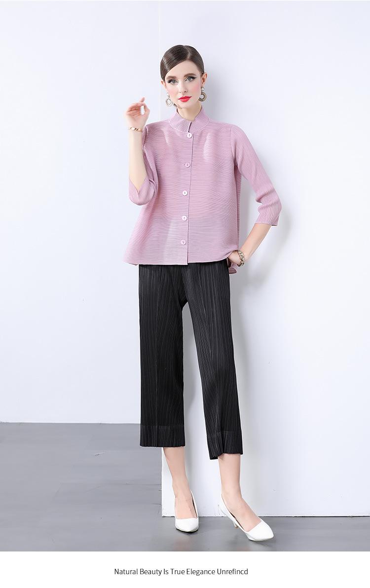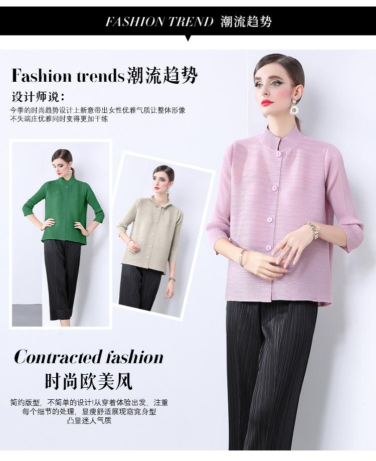 Estilo Europeo y Americano Versátil Top Holgado Plisado mm Ropa de Trabajo Mangas Tres Cuartos Cuello Mao Camisa Slim Chaqueta Sencilla