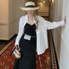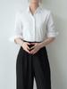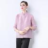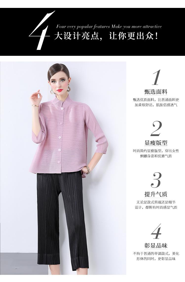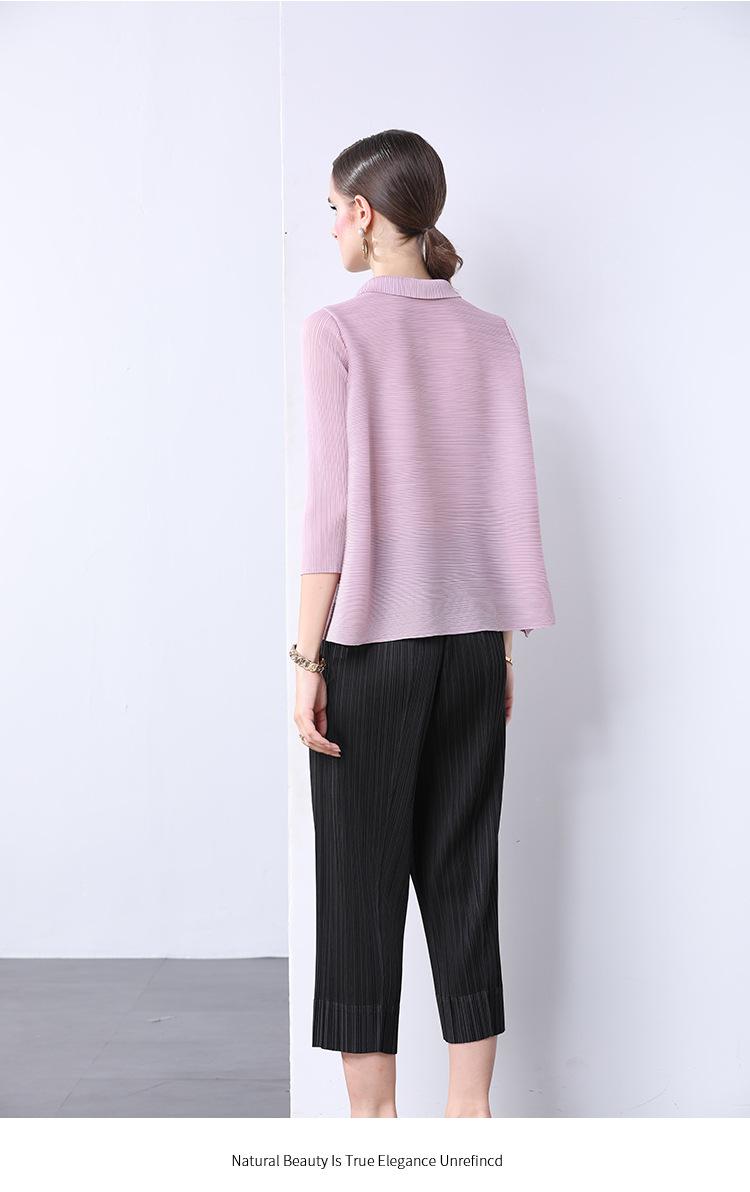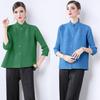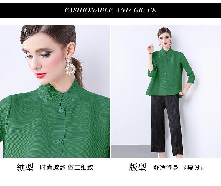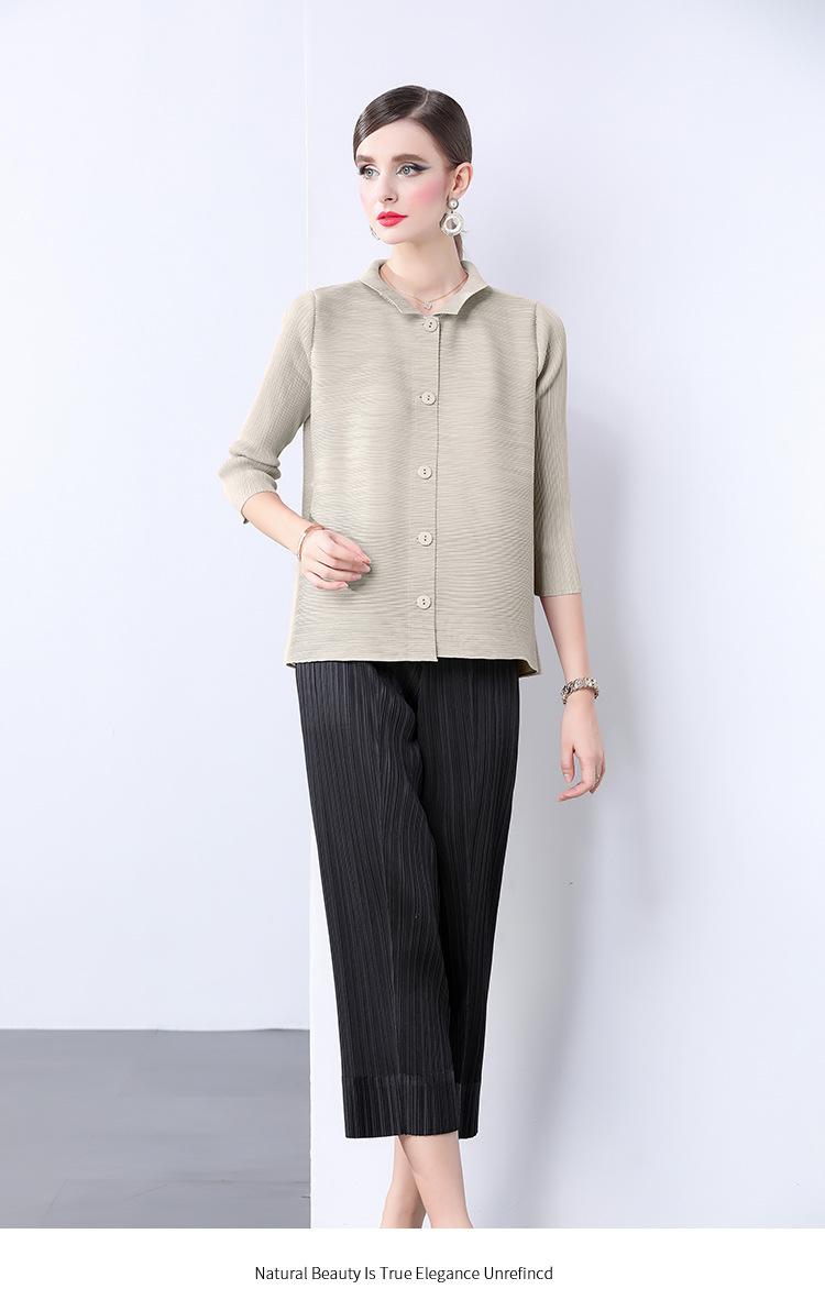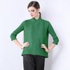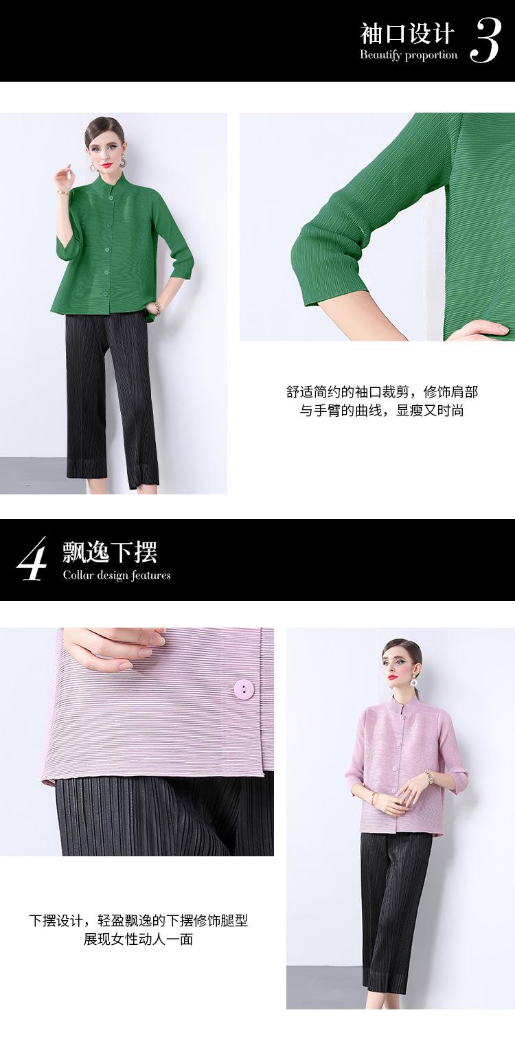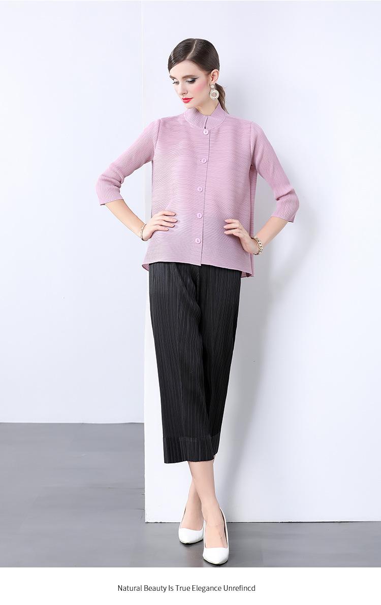 Estilo Europeo y Americano Versátil Top Holgado Plisado mm Ropa de Trabajo Mangas Tres Cuartos Cuello Mao Camisa Slim Chaqueta Sencilla