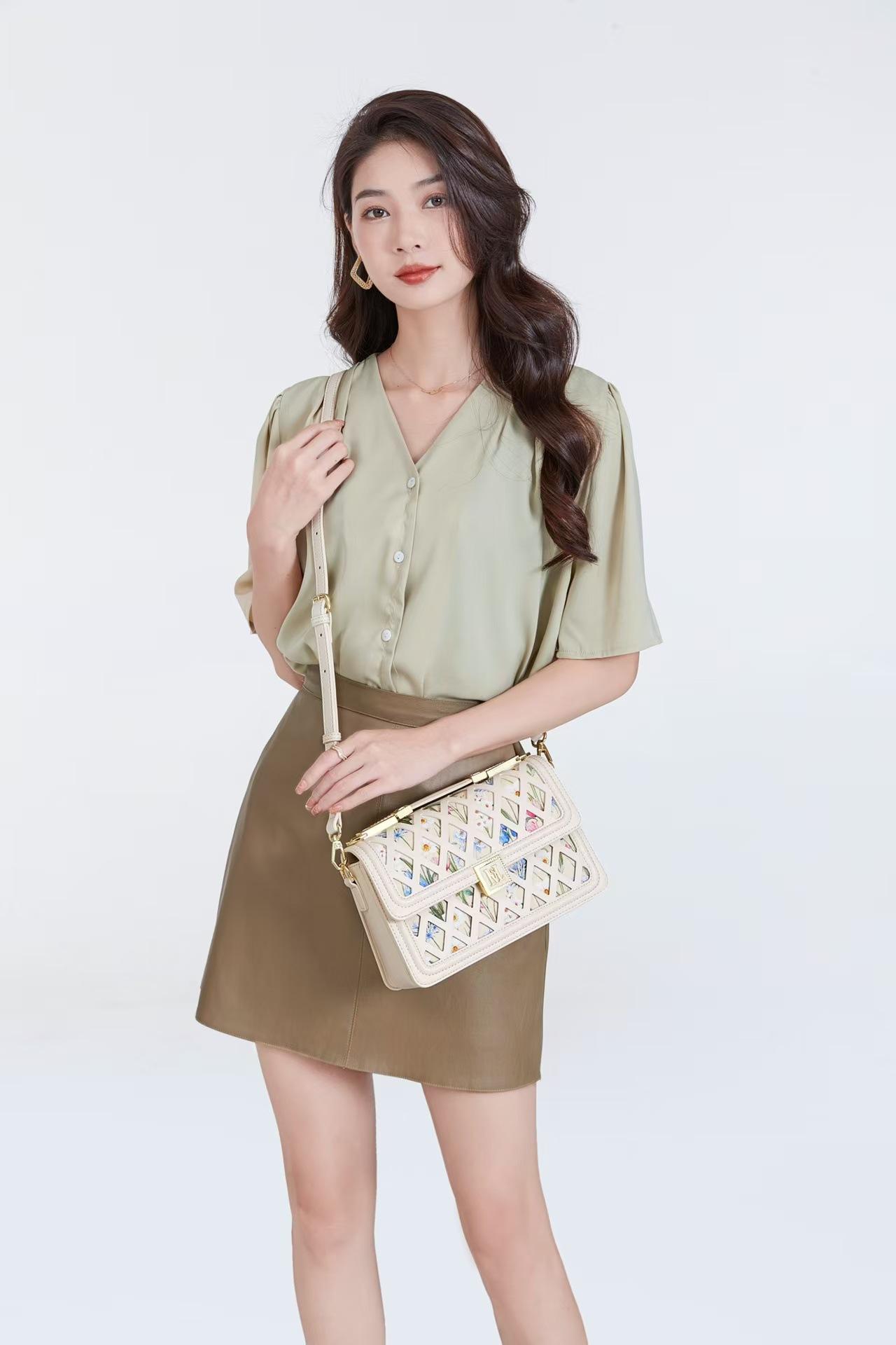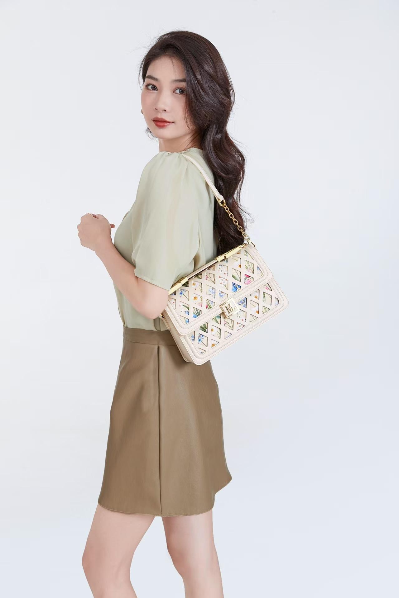Bolso Transfronterizo para Mujer 2024 Otoño e Invierno Nuevo Bolso Cuadrado Pequeño con Flores Caladas Moda Combinable Bolso de Hombro Cruzado