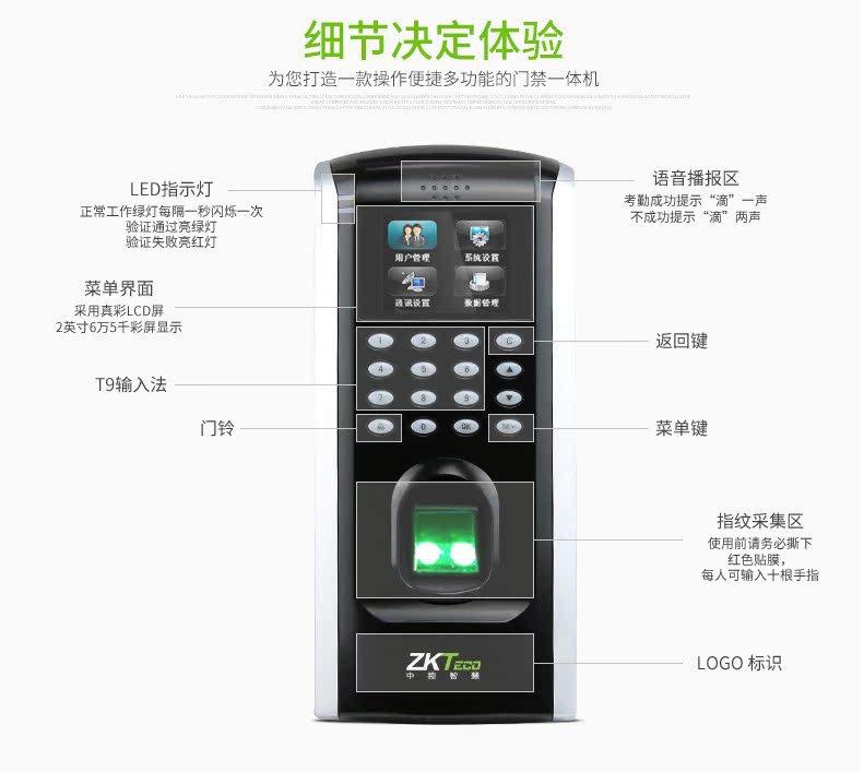 ZKTeco F2 Control de Acceso de Asistencia por Huella Digital basado en Entropía F2ID Red Función U-Disk Inglés Exportación Venta Caliente Transfronteriza