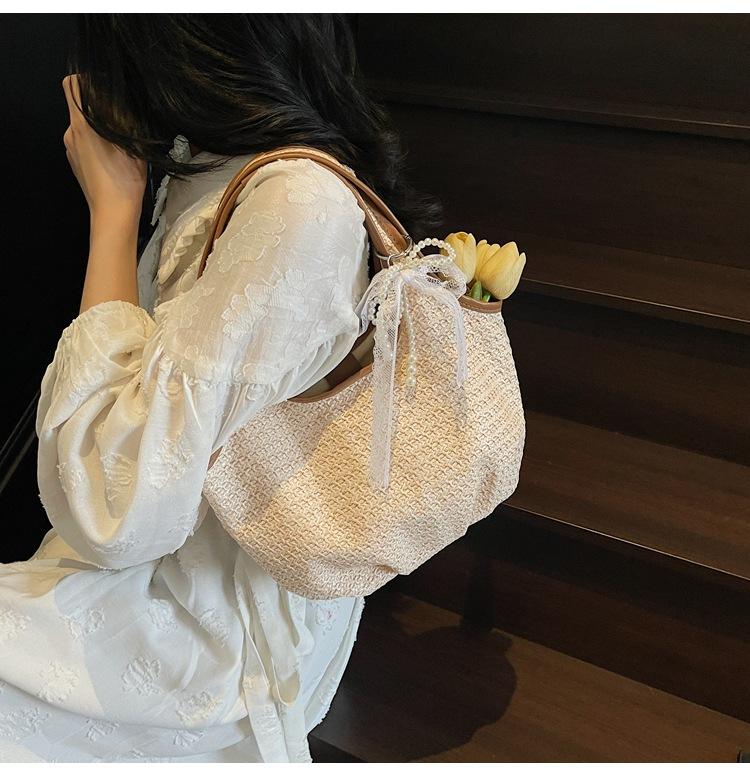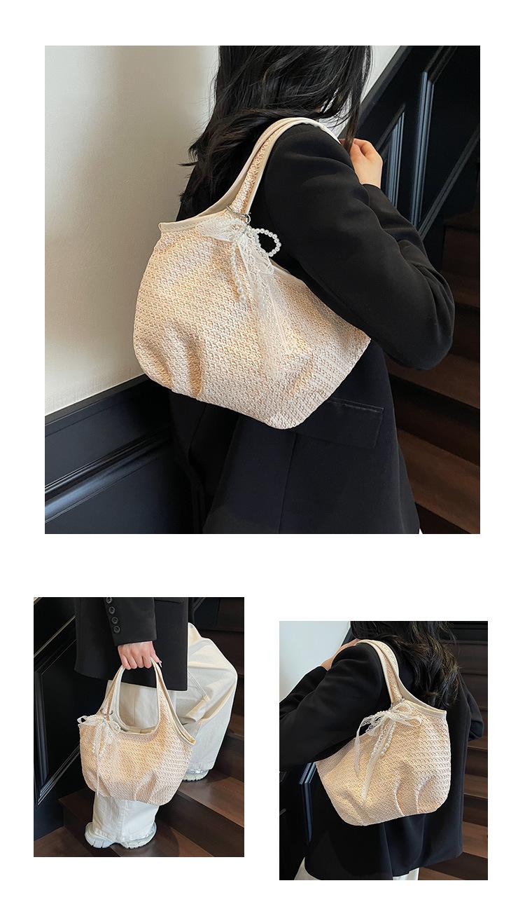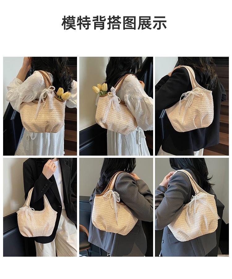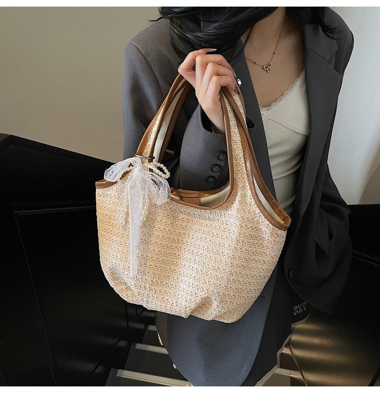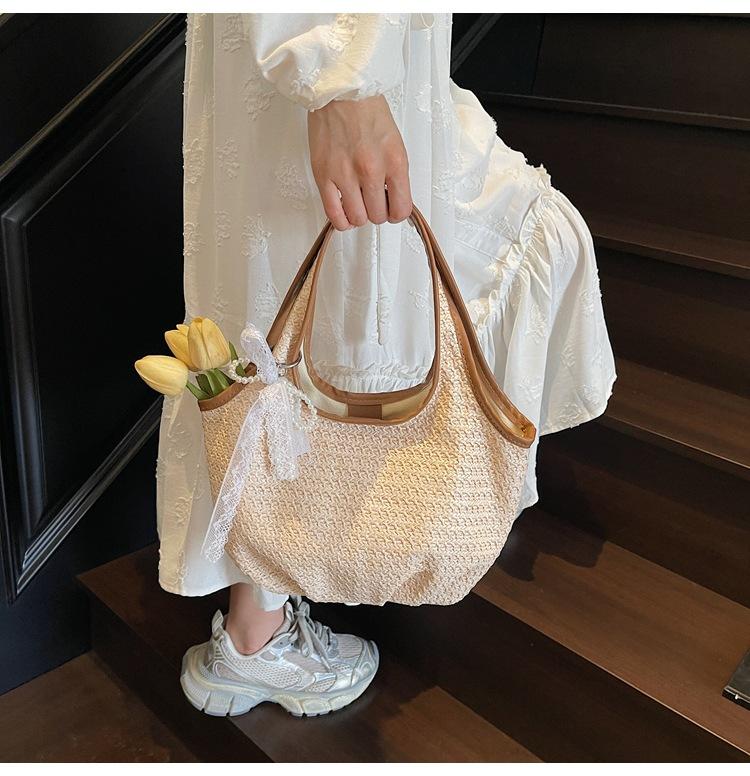 Bolso Tejido de Paja Bolso de Mujer 2025 Nuevo Moda Trendy Retro Bolso Balde Estilo Vacacional Moda Bolso de Hombro
