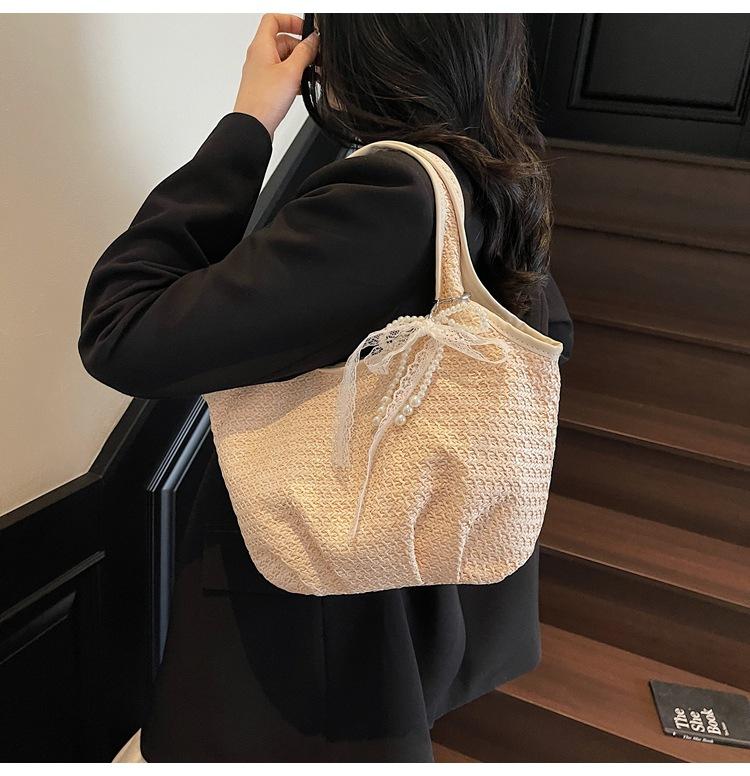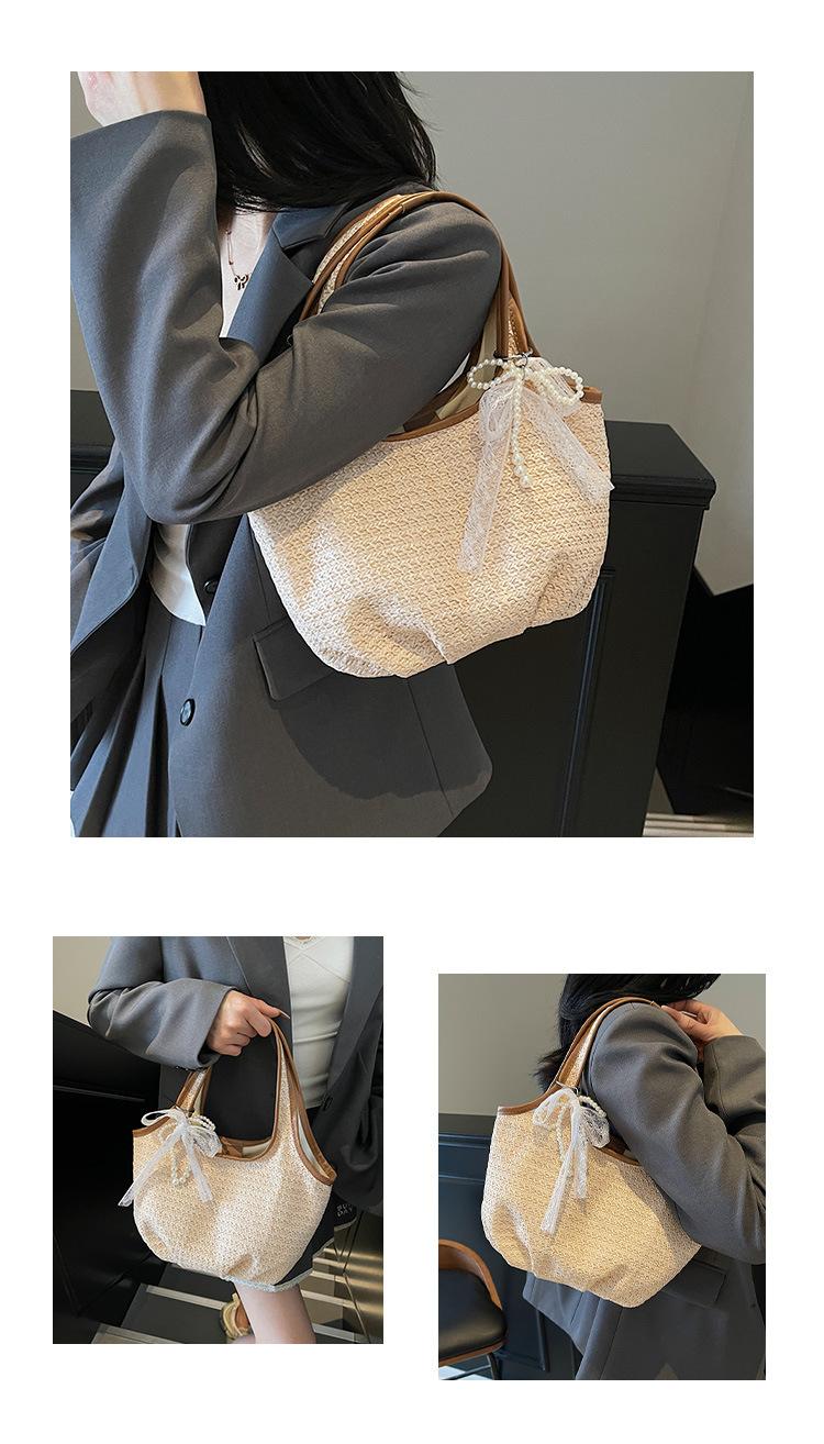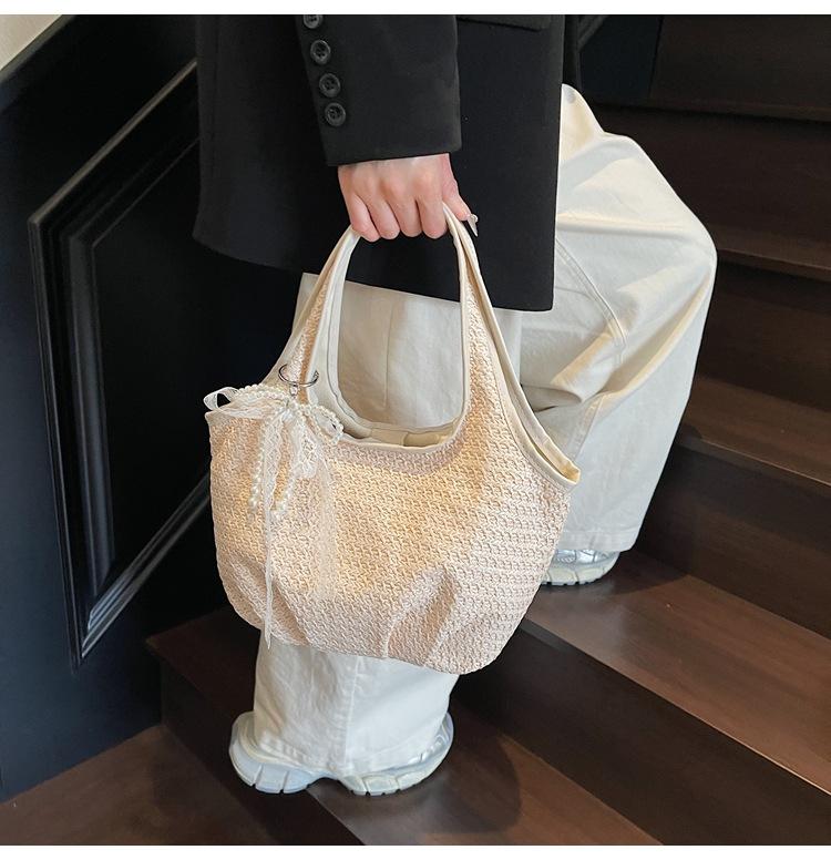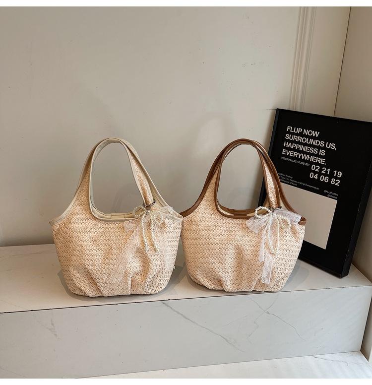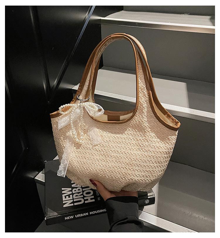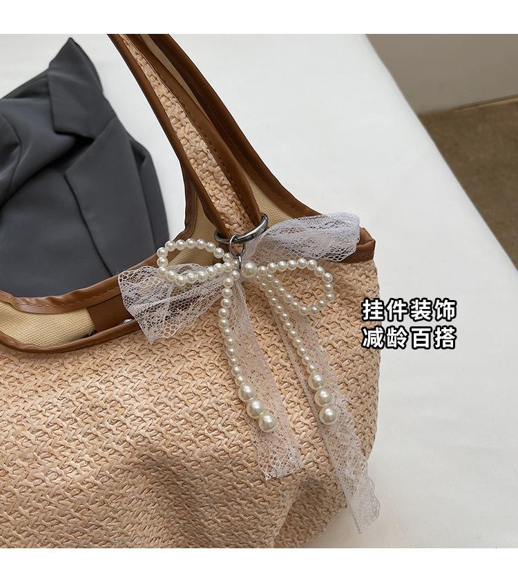 Bolso Tejido de Paja Bolso de Mujer 2025 Nuevo Moda Trendy Retro Bolso Balde Estilo Vacacional Moda Bolso de Hombro