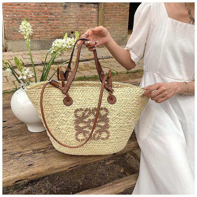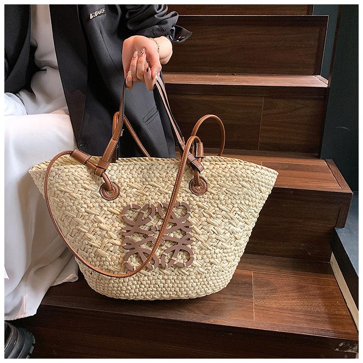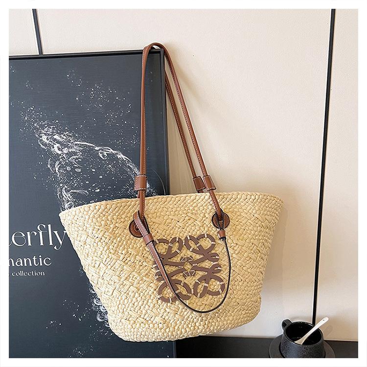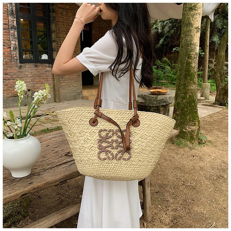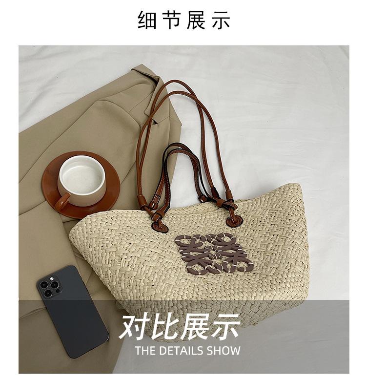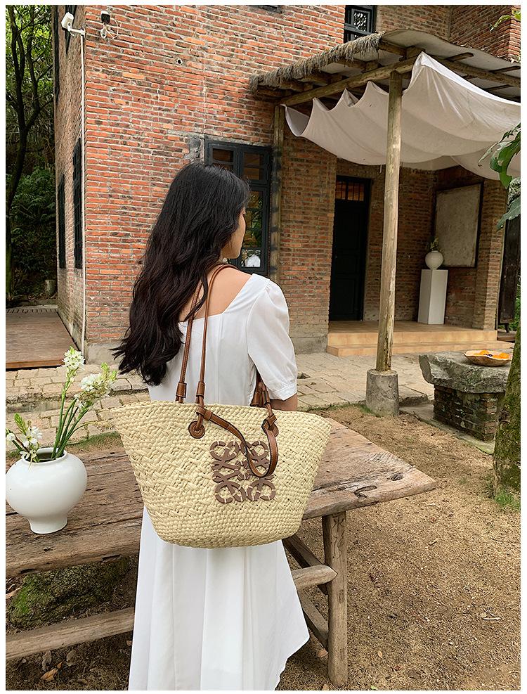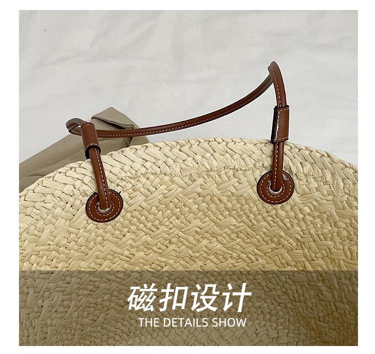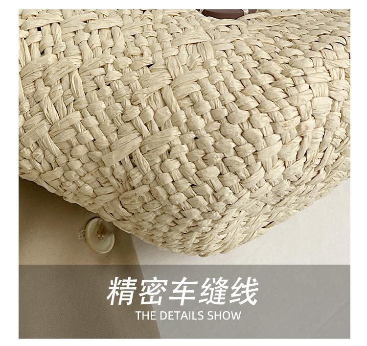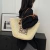 Bolso de Paja de Ratan Estilo Francés 2025 Nuevo Verano Estilo Pastoral Bolso Tote Tejido Vacaciones Junto al Mar Bolso de Hombro Portátil