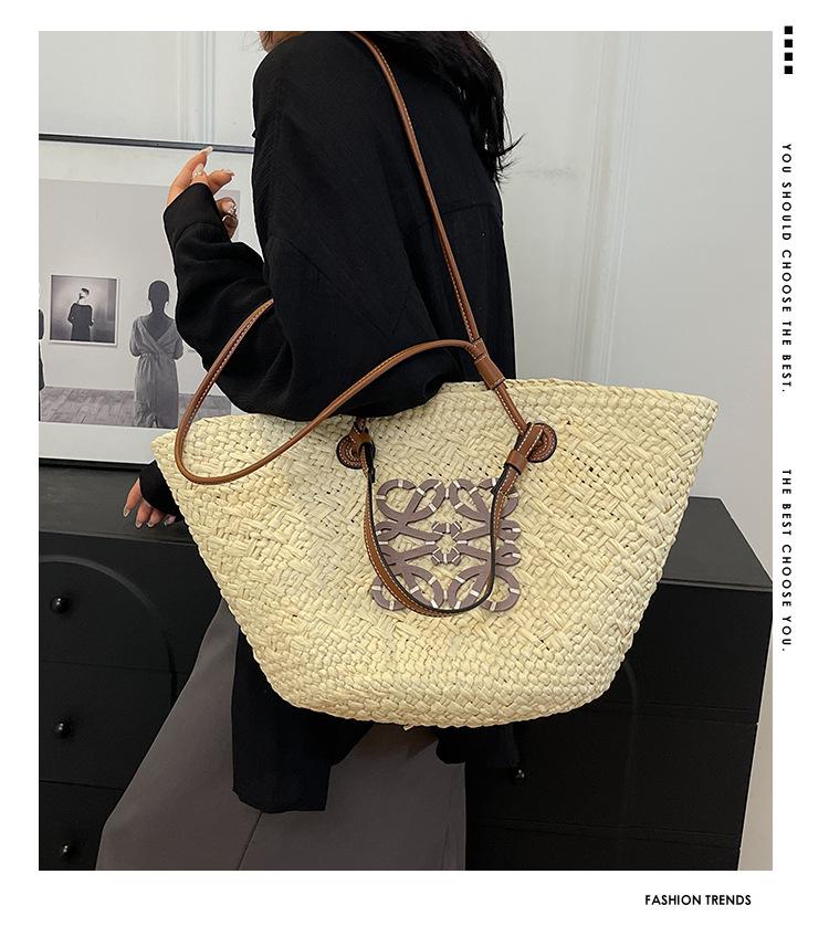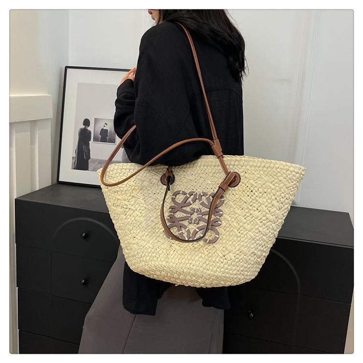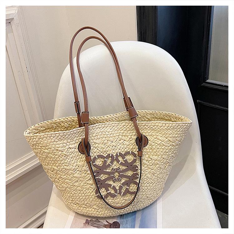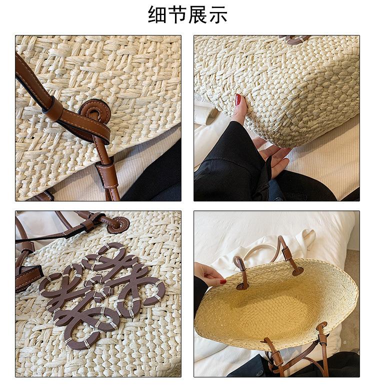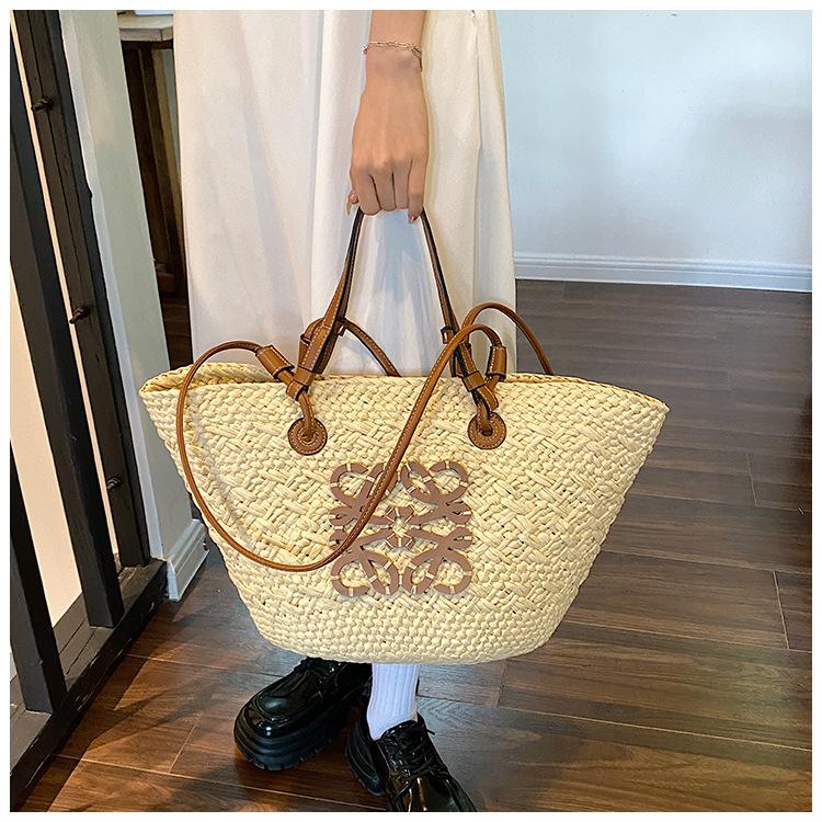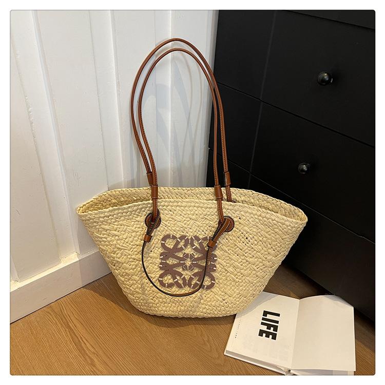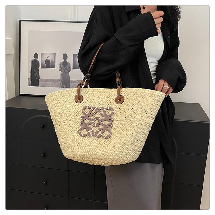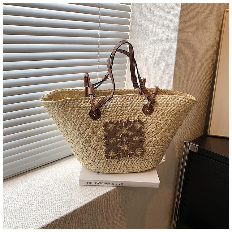 Bolso de Paja de Ratan Estilo Francés 2025 Nuevo Verano Estilo Pastoral Bolso Tote Tejido Vacaciones Junto al Mar Bolso de Hombro Portátil
