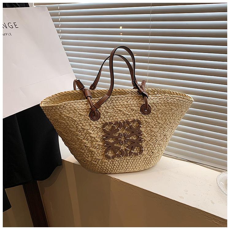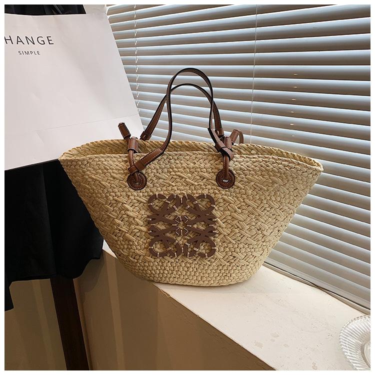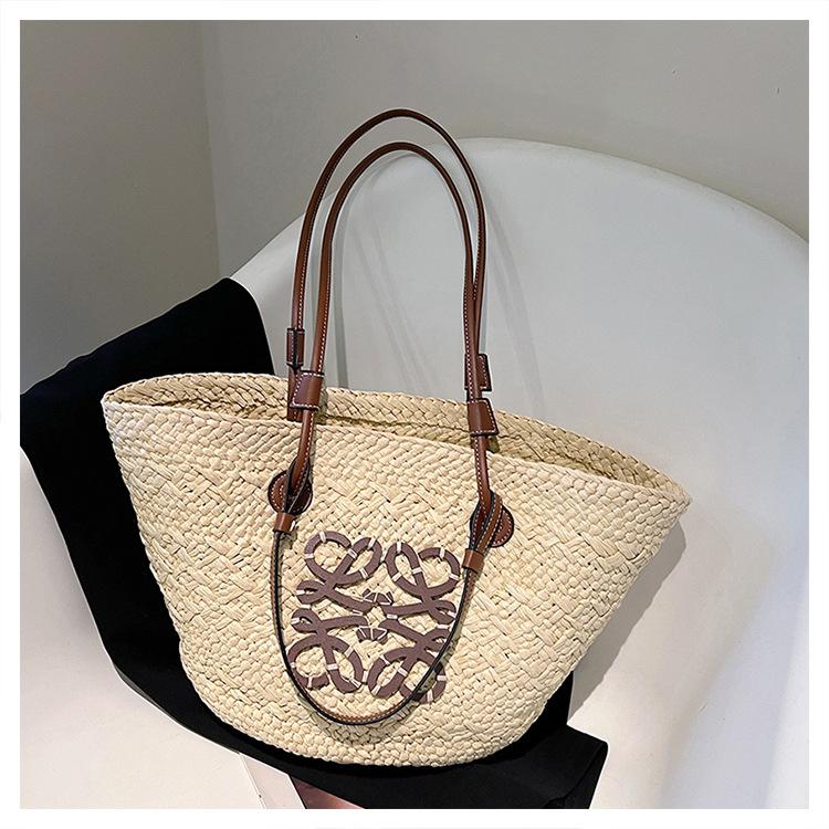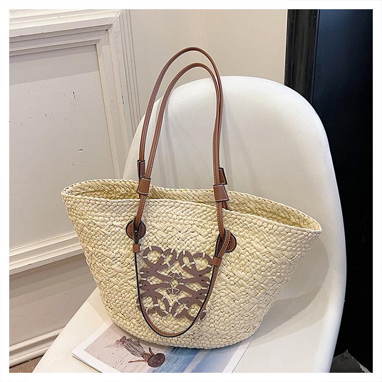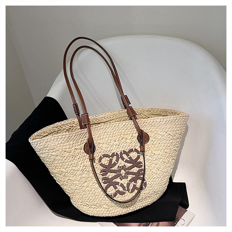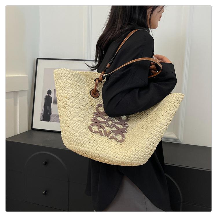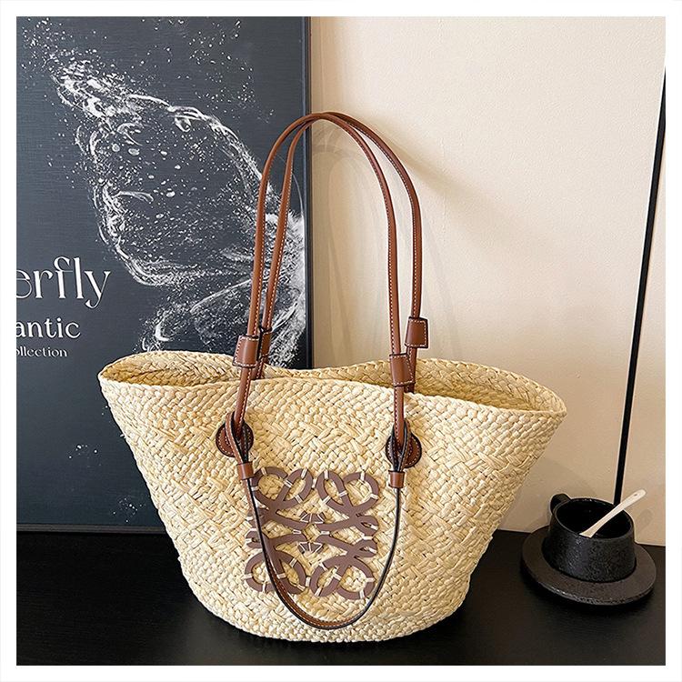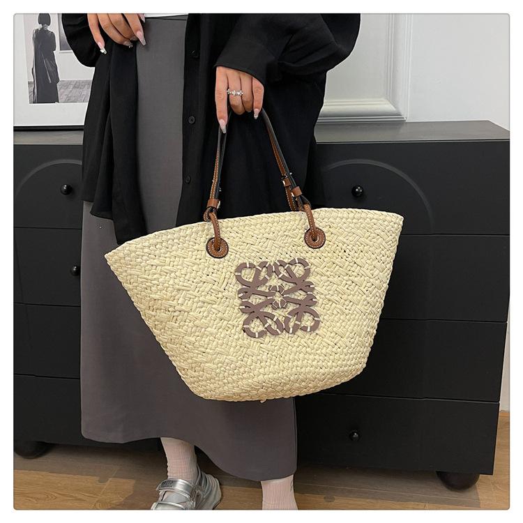 Bolso de Paja de Ratan Estilo Francés 2025 Nuevo Verano Estilo Pastoral Bolso Tote Tejido Vacaciones Junto al Mar Bolso de Hombro Portátil