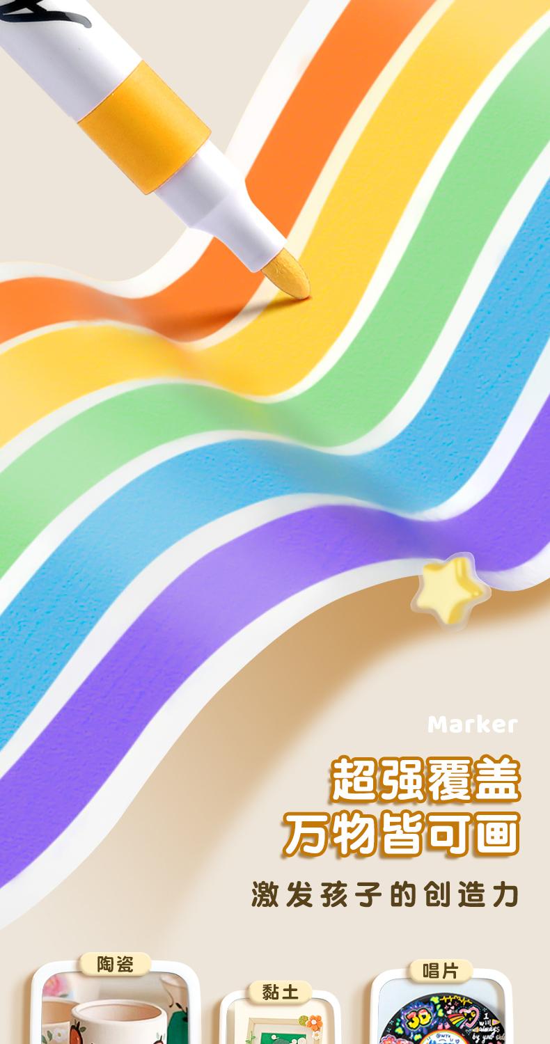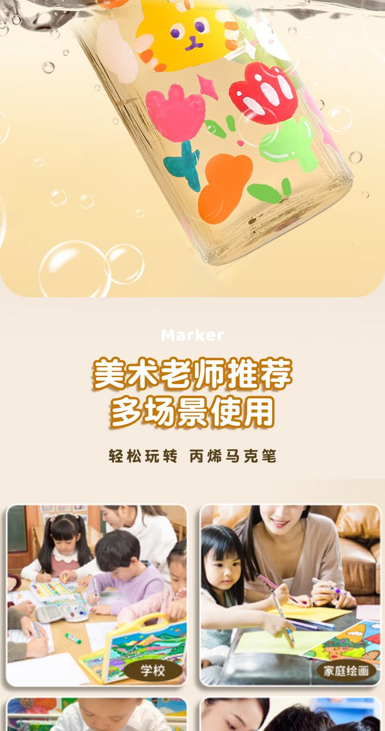 Plumón acrílico para estudiantes de primaria color opaco apilable color arte pluma acrílica pluma de color niños lavable pincel secundaria