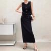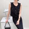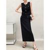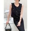 Conjunto de falda de cintura alta con aroma pequeño blanco nuevo de primavera y otoño 2025 de dos piezas para mujer, top chaleco sin mangas