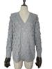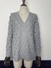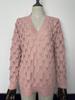 Suéter nuevo de invierno europeo y americano de punto de pluma calado con cuello en V y manga larga para mujer, venta directa de fábrica