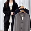 2025 Nuevo Suéter de Punto Exportación Manga Murciélago Cuello en V Punto Ropa Exterior de Largo Medio de Talla Grande Holgado para Mujer Chal Grande