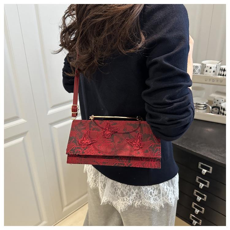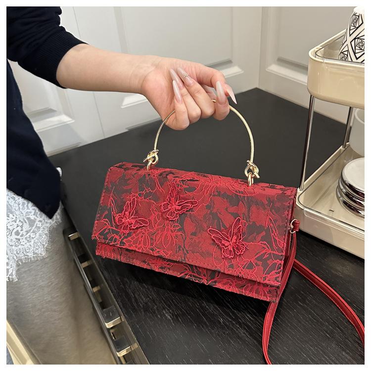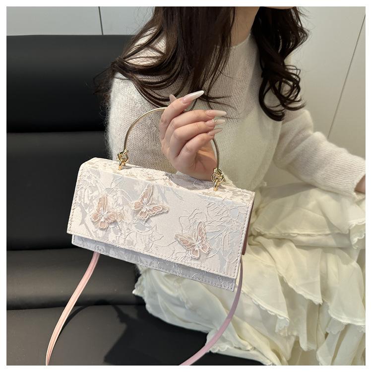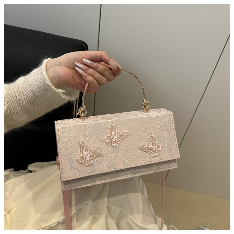 Bolso de encaje transfronterizo para mujer 2025 nuevo bordado de mariposas bolso cuadrado pequeño moda europea y americana bandolera