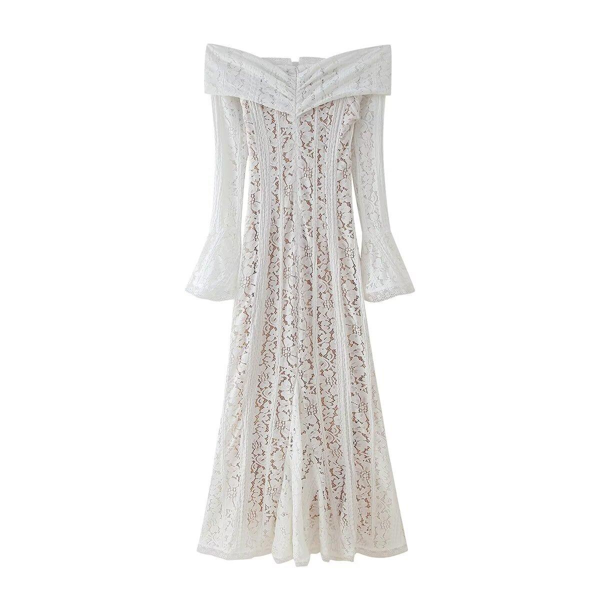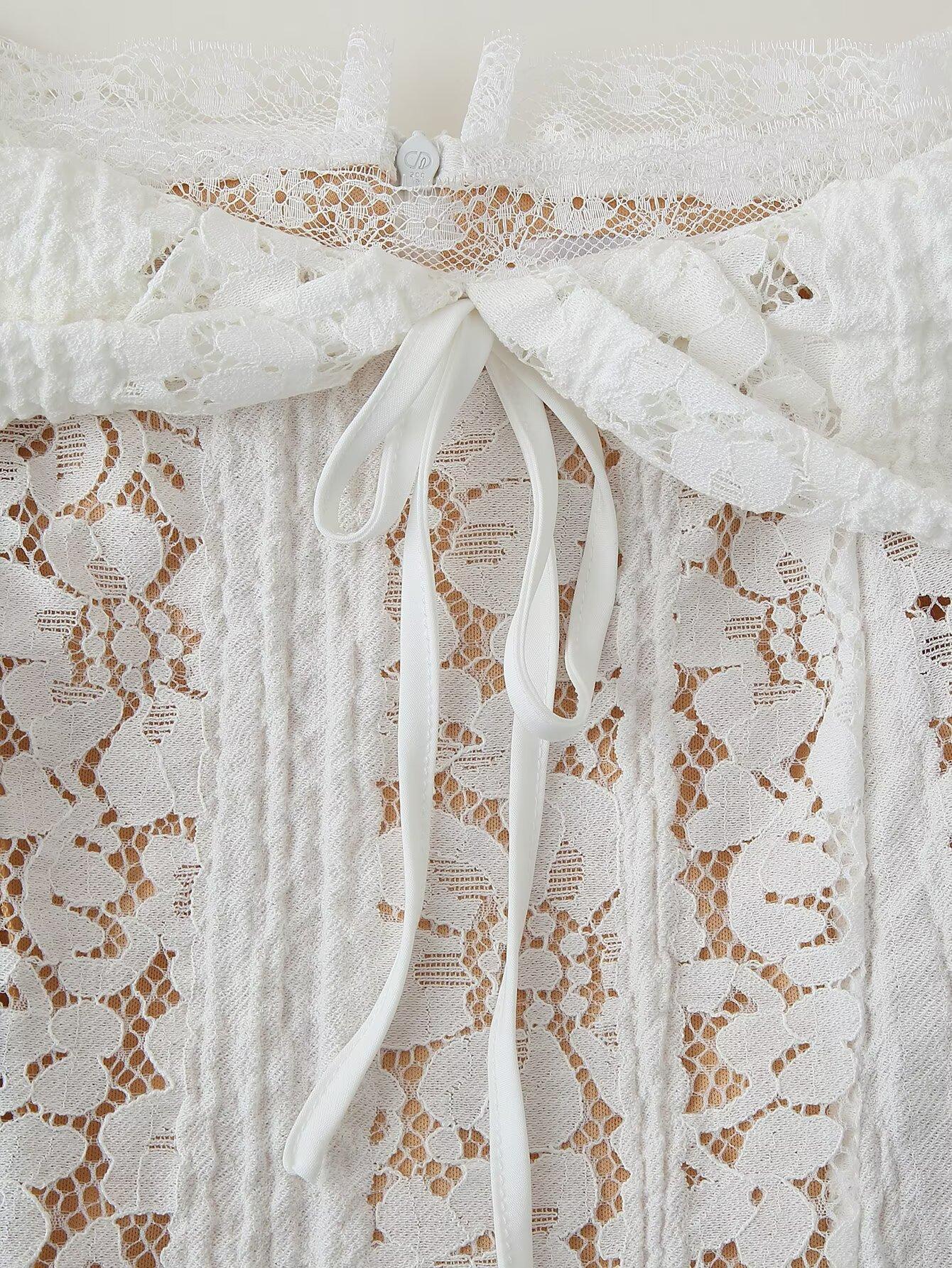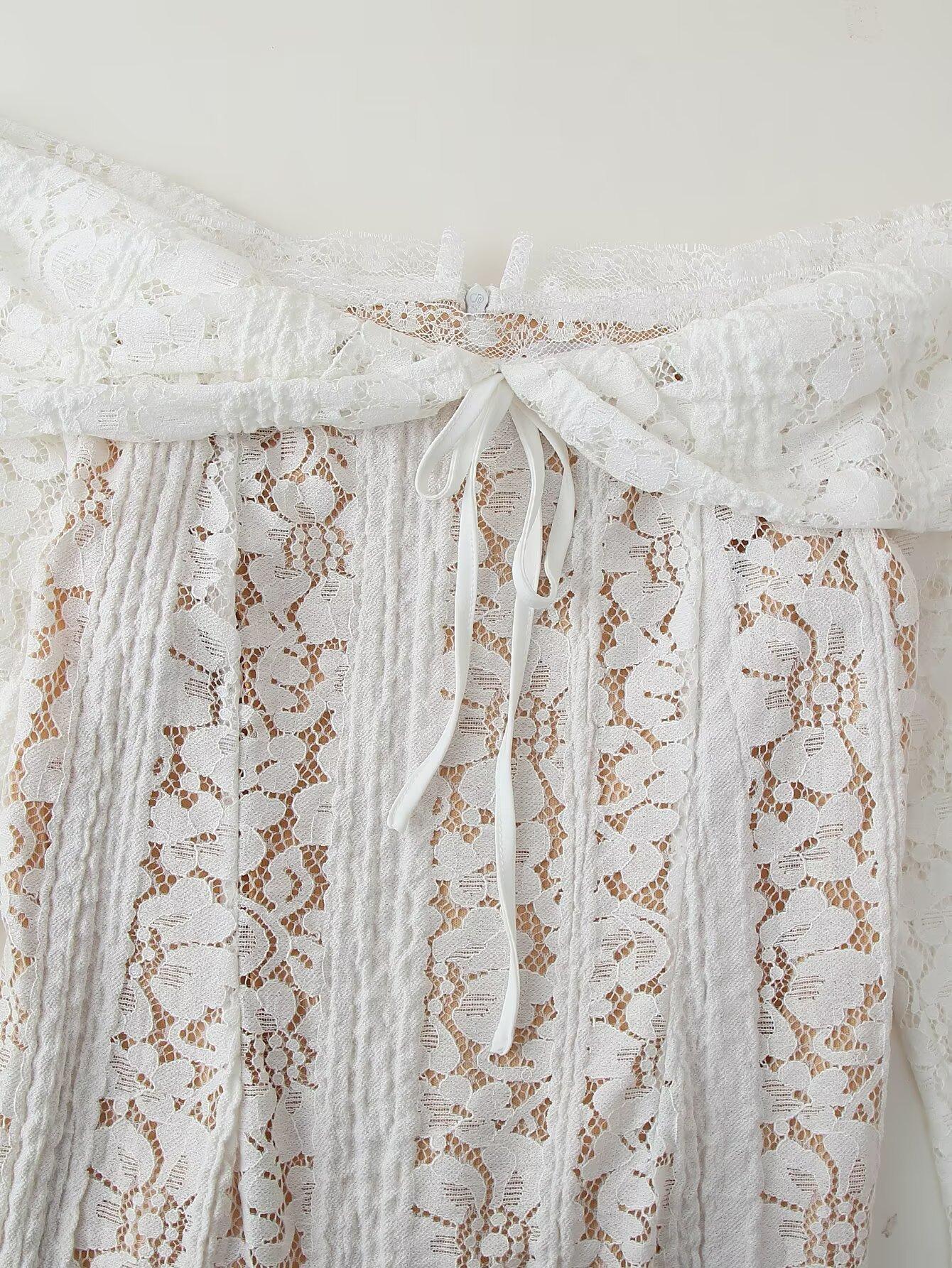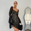 2025 primavera nuevo ropa de mujer transfronteriza europea y americana con forro vestido de encaje con hombros descubiertos w028 6772