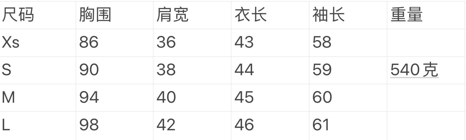 XS, S, M, L