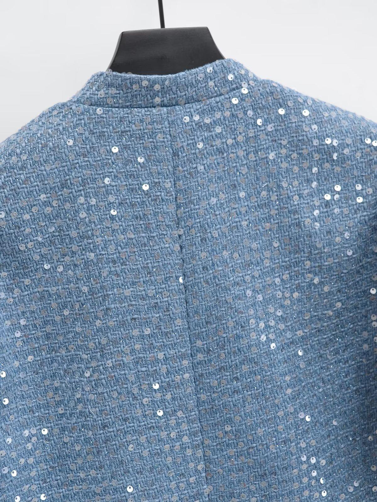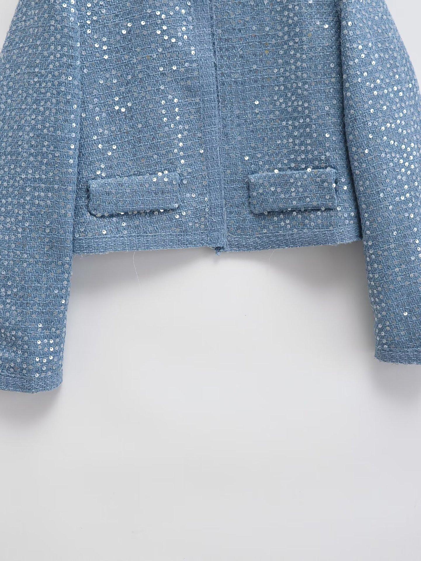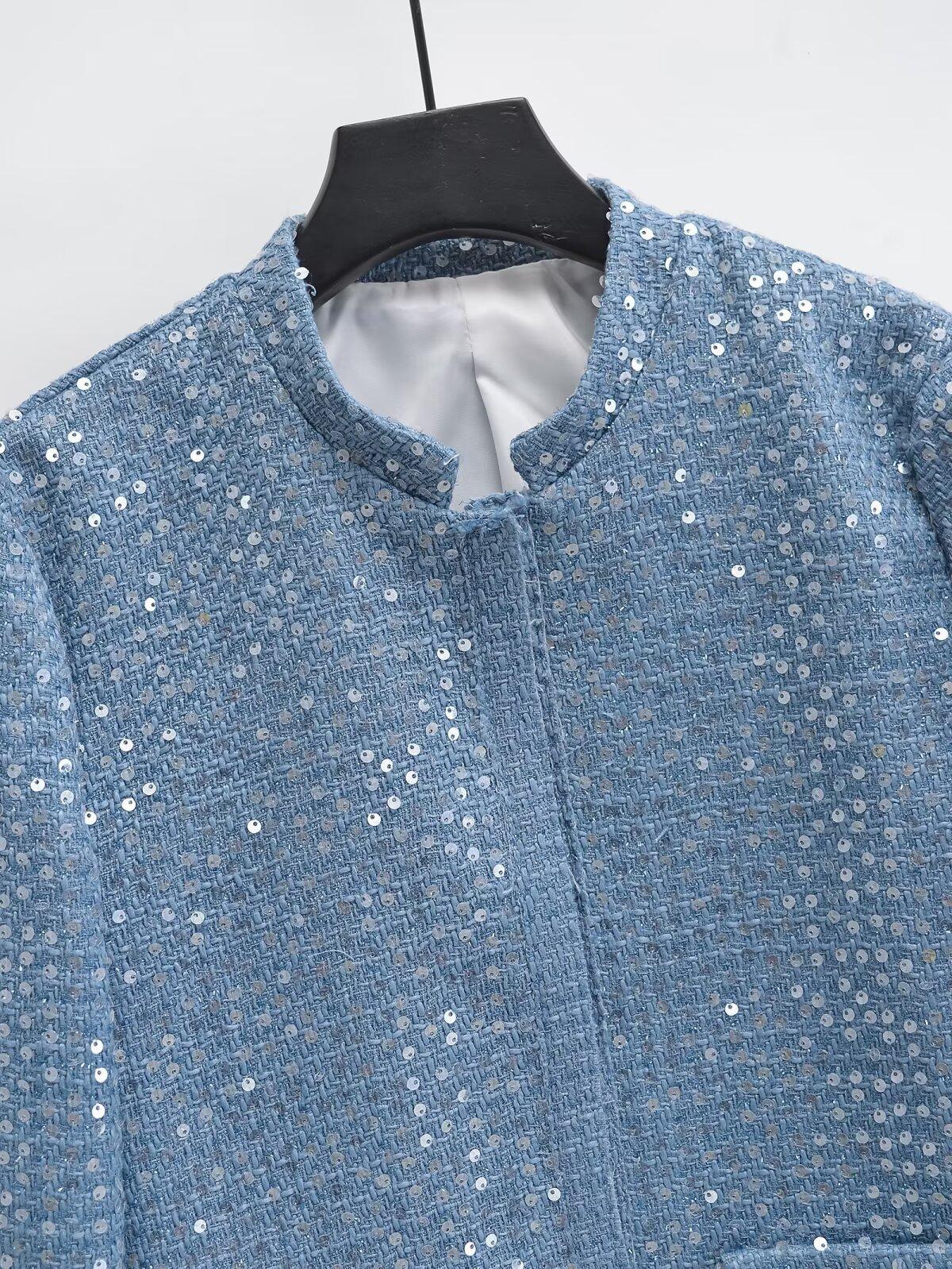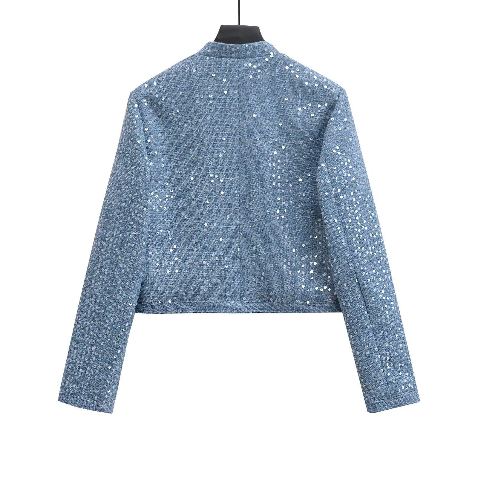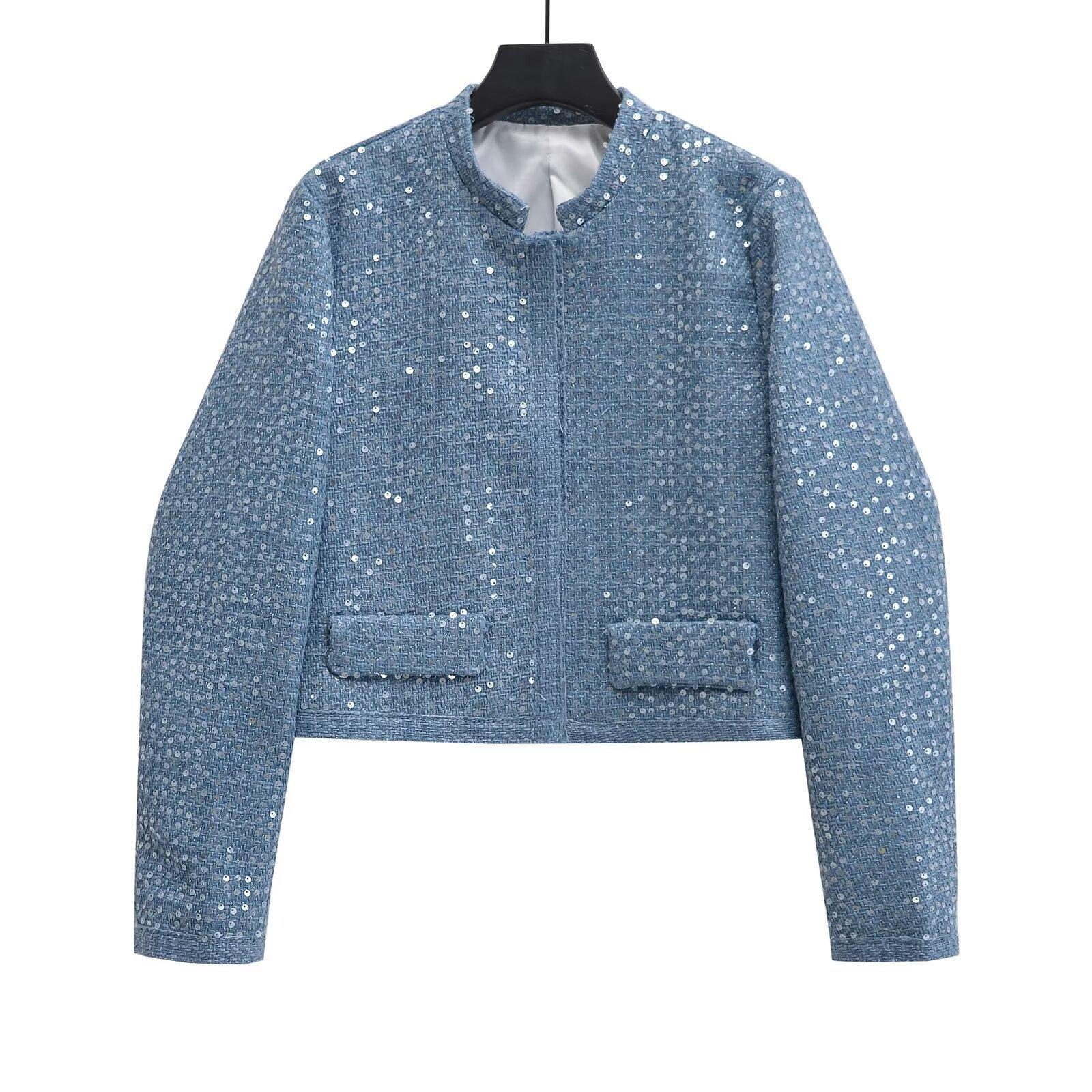 2025 Primavera Nuevo Ropa de Mujer Transfronteriza Europea y Americana Moda Urbana Cuentas con Cuello Vertical Chaqueta Corta w027 9452