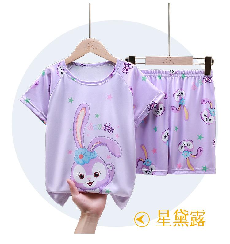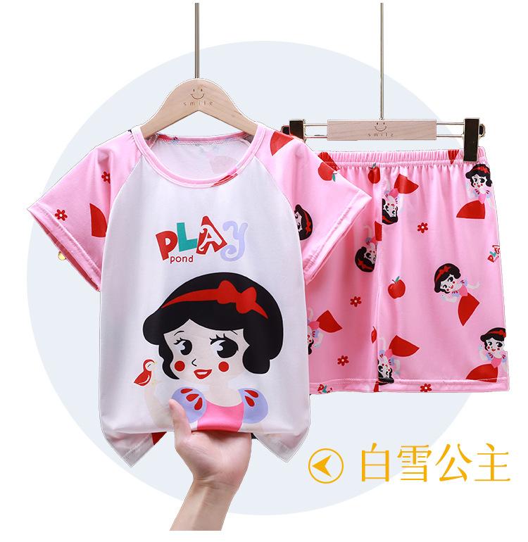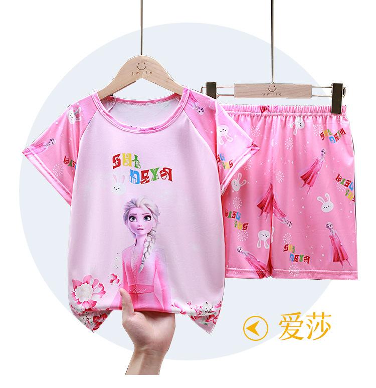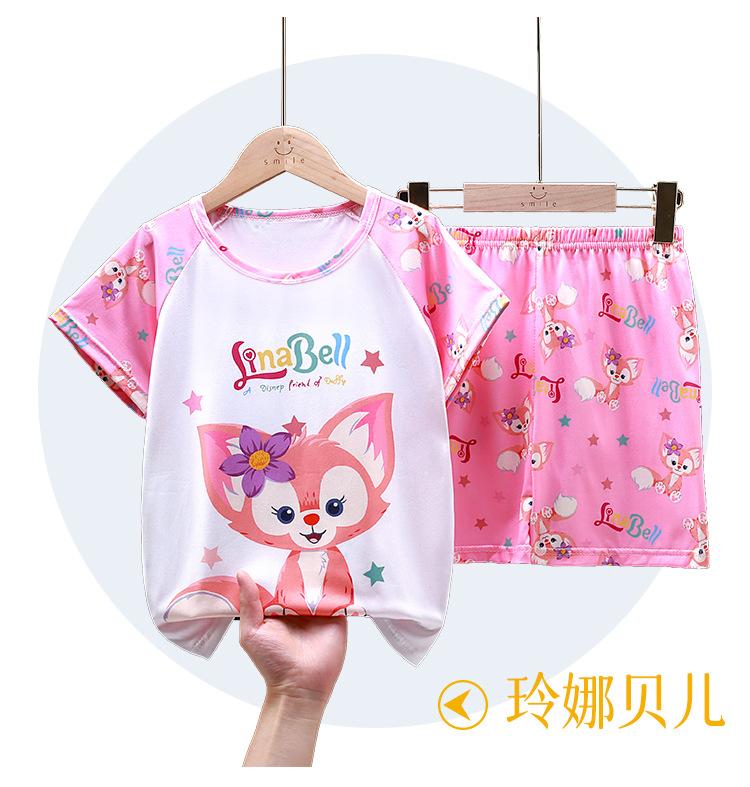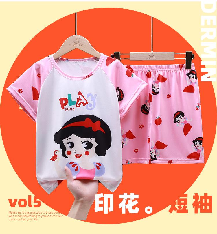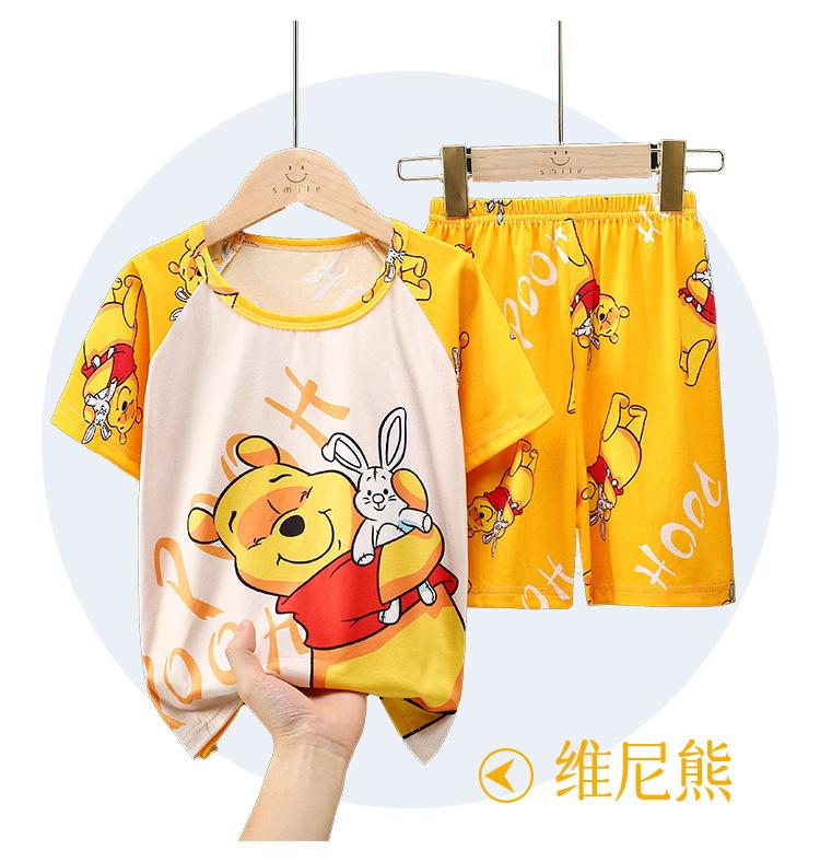 Pijamas infantiles 2023 de verano para niña, de manga corta, delgados, de dibujos animados para niño mediano y grande, traje de ropa de casa para bebé al por mayor