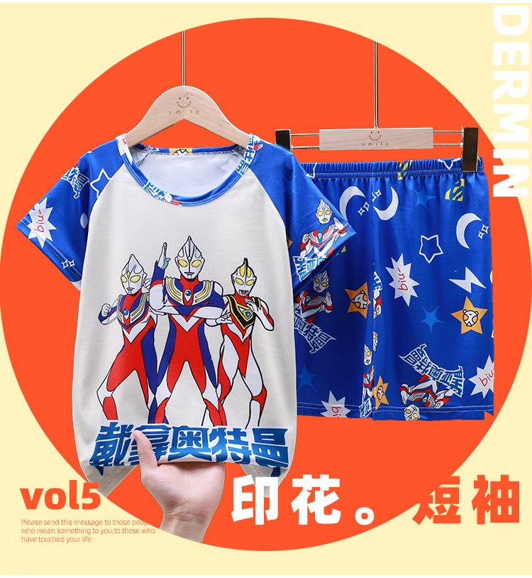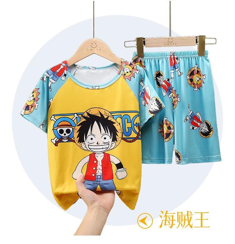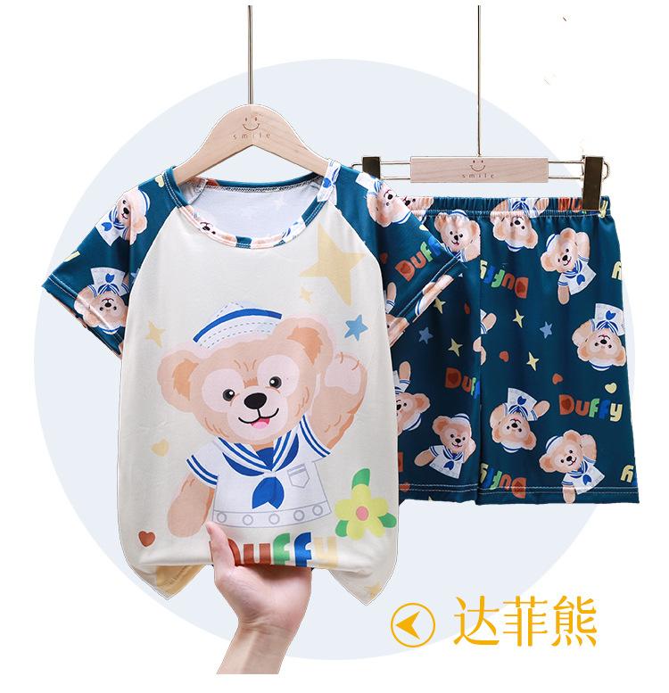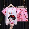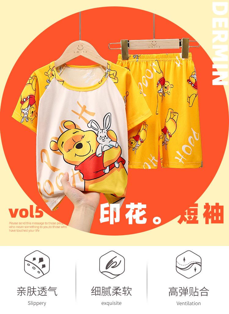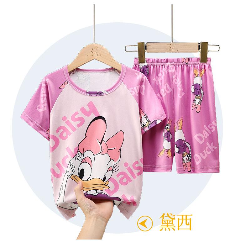 Pijamas infantiles 2023 de verano para niña, de manga corta, delgados, de dibujos animados para niño mediano y grande, traje de ropa de casa para bebé al por mayor