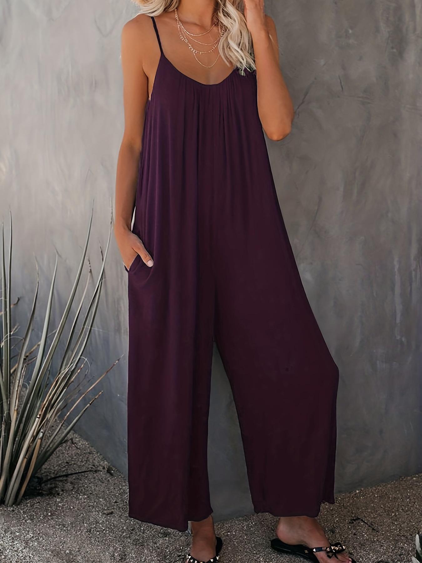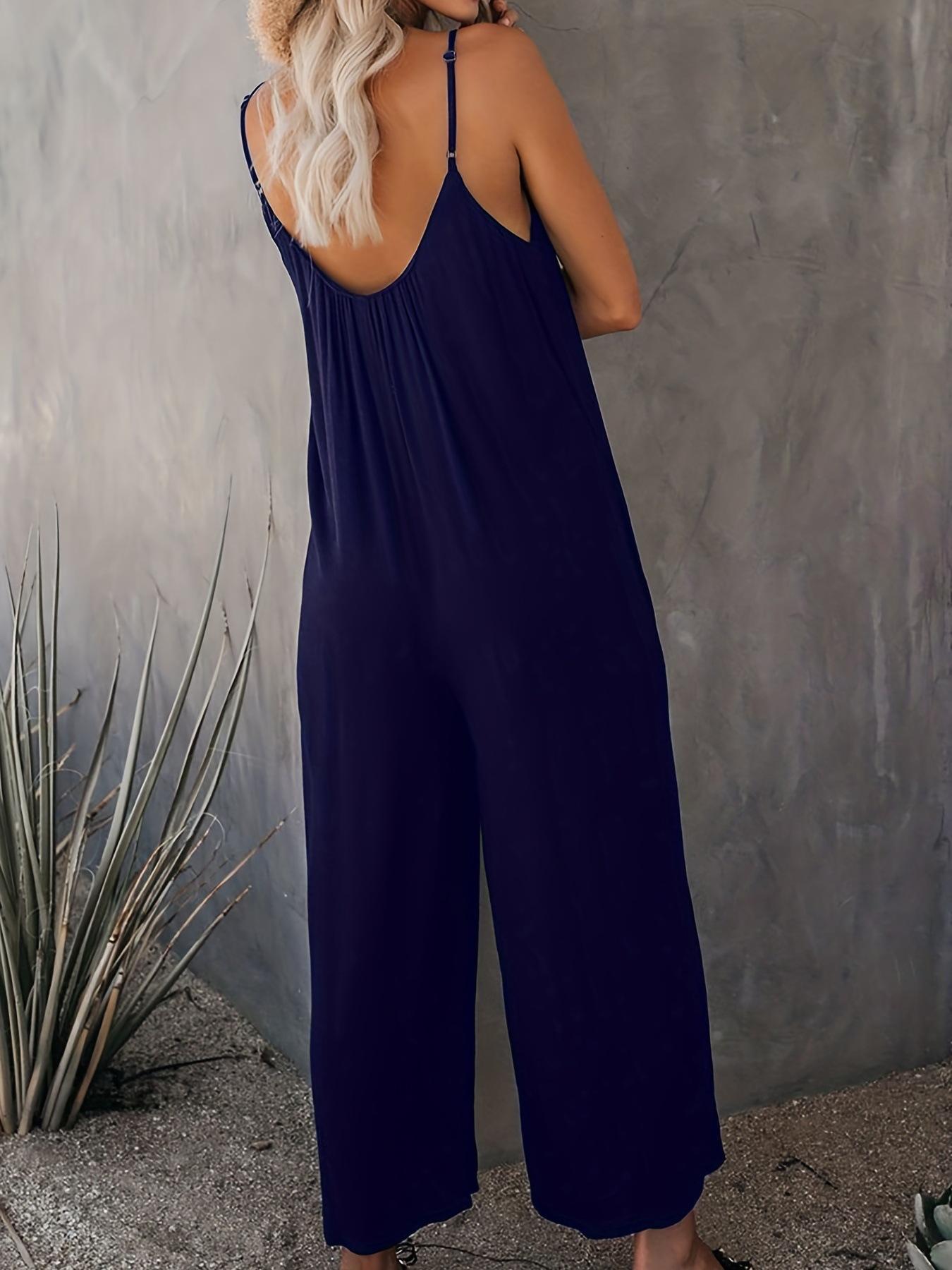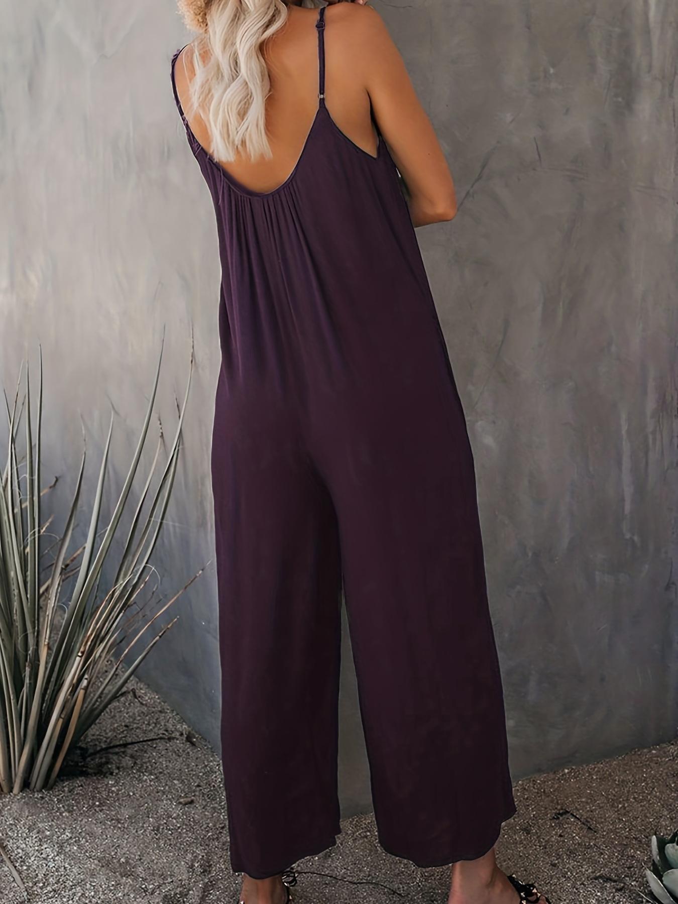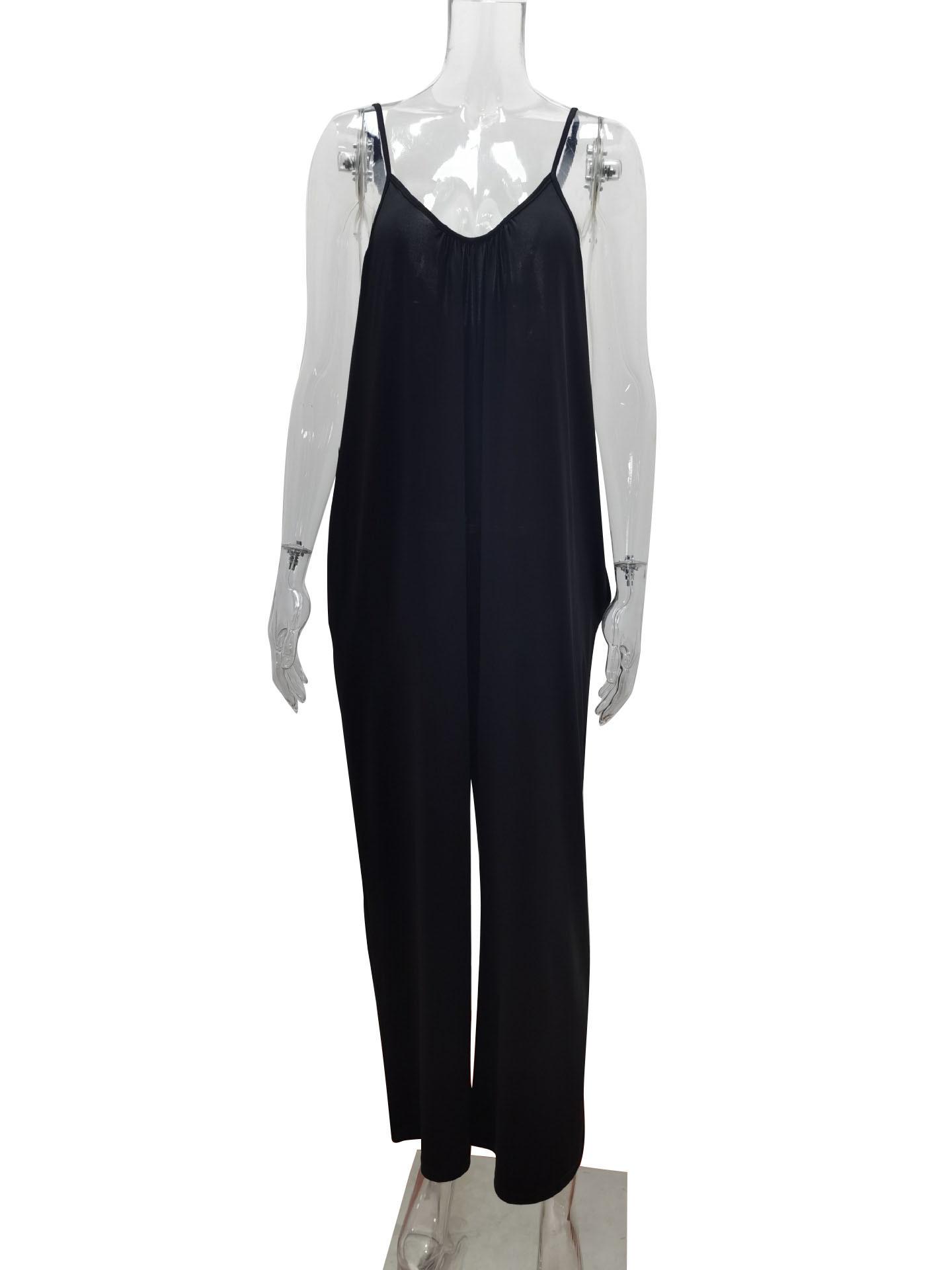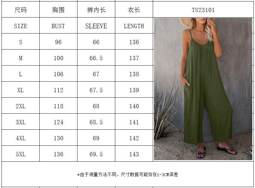 Mono de Mujer de Talla Grande para Exportación Transfronteriza Casual Moda Elegante Mono de Tirantes de Color Puro para Mujer