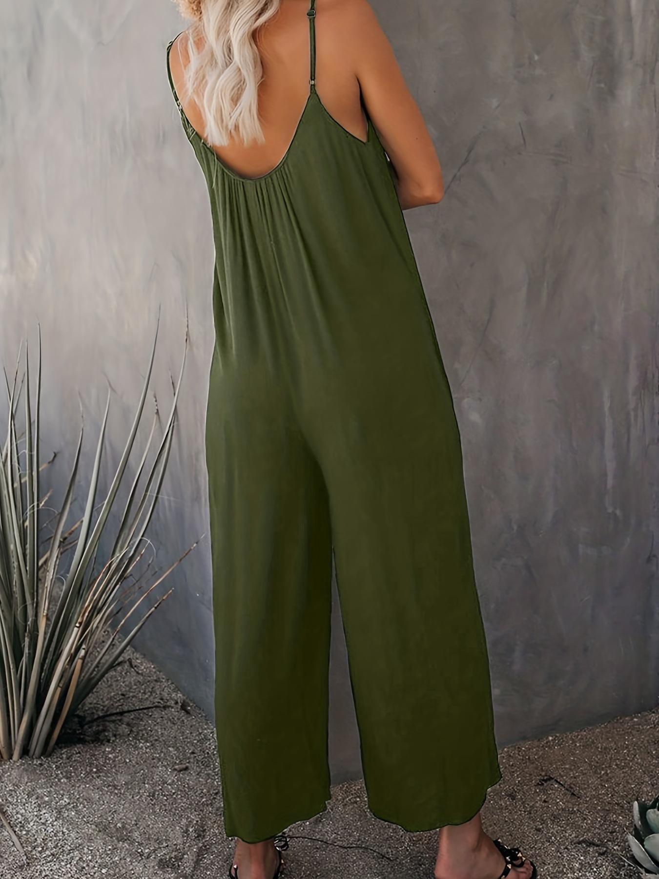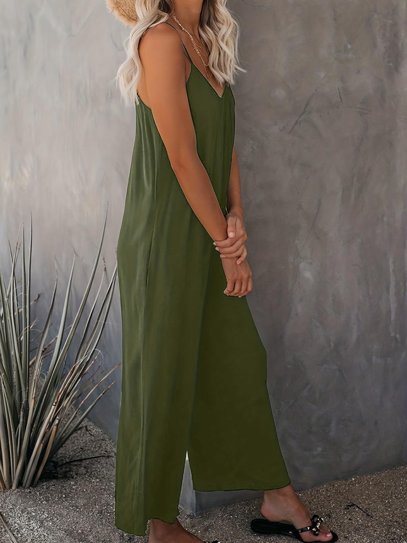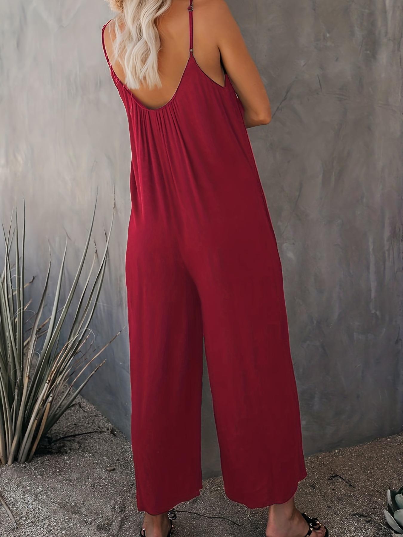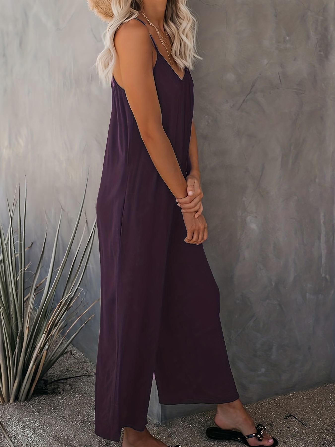 Mono de Mujer de Talla Grande para Exportación Transfronteriza Casual Moda Elegante Mono de Tirantes de Color Puro para Mujer