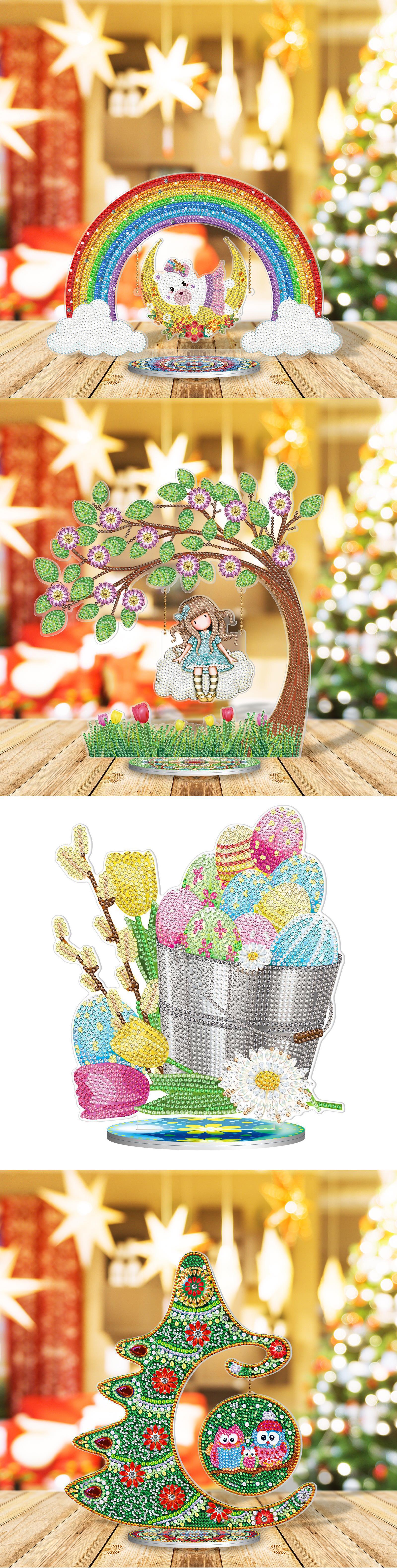 Adornos de Escritorio Navideños DIY Transfronterizos con Forma de Diamante Brillante 5D Pintura de Diamantes Decorativa