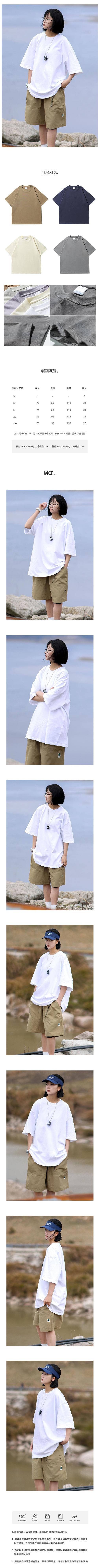 Wu Hang Verano 300g Cuello Redondo Pesado Color Sólido Suelto Pareja Hombres y Mujeres ins Estudiantes Joker Media Manga Manga Corta T999