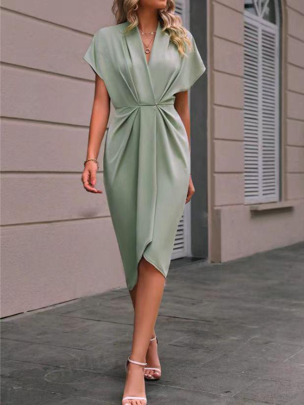 2025 Nuevo Amazon Transfronterizo Europeo y Americano Verano y Primavera Esencial Moda Vestido de Color Sólido para Mujer, Elegante y Versátil