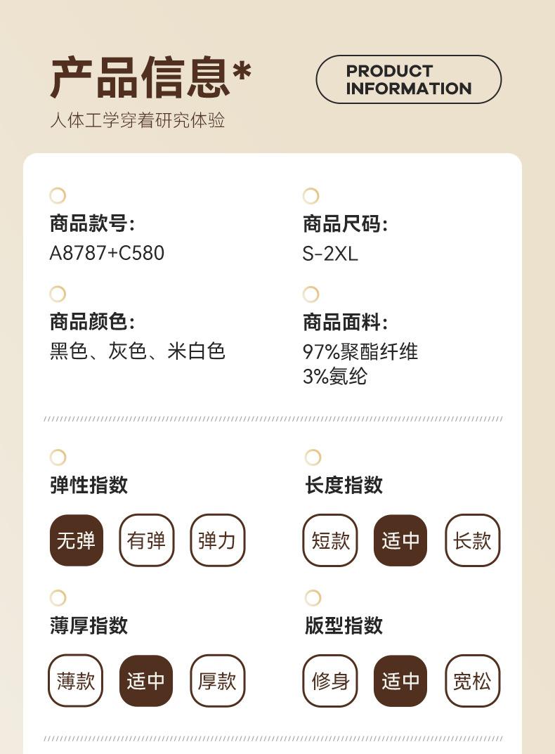 Black one piece suit, Gray one piece suit, Off-white single suit, Black suit + pants, Gray suit + pants, Off-white suit + pants