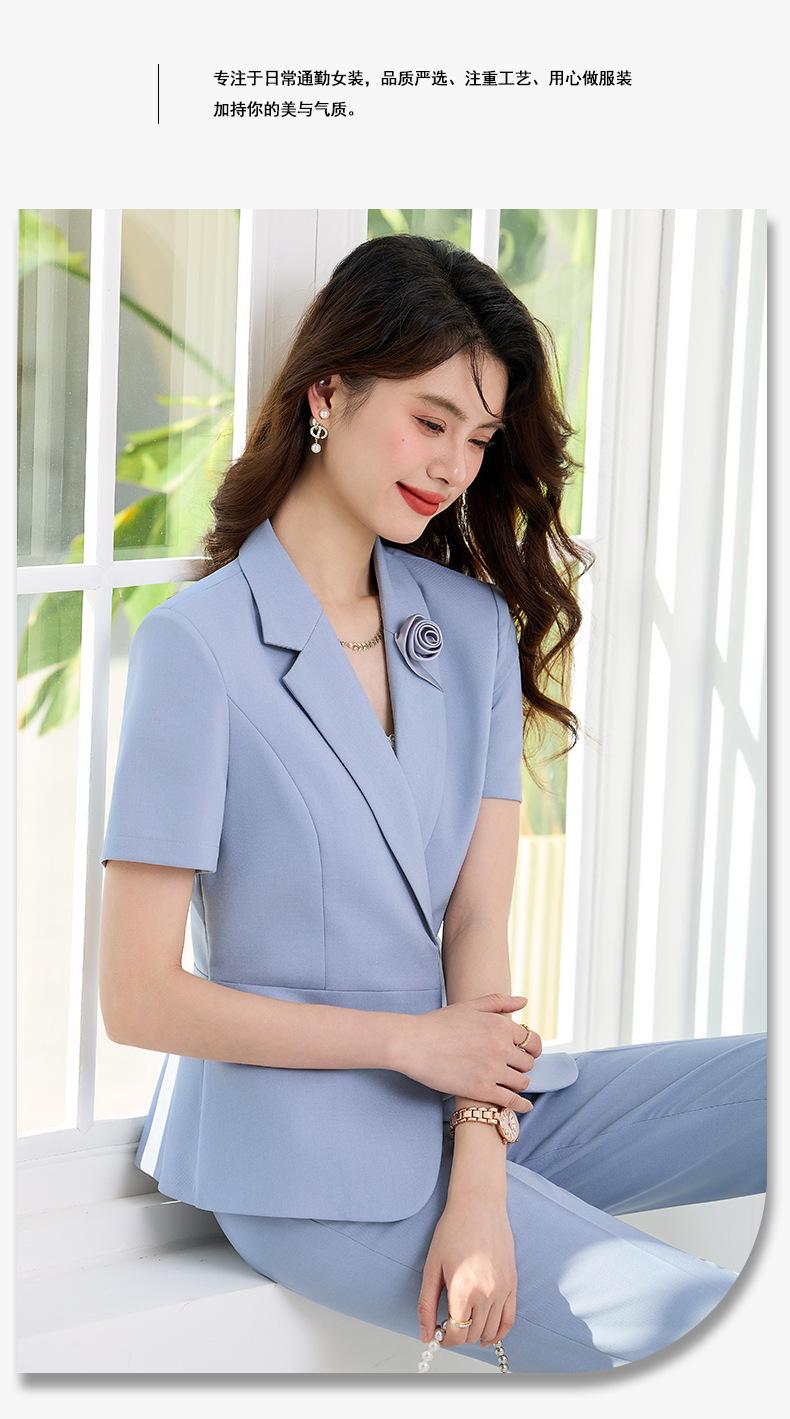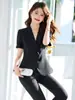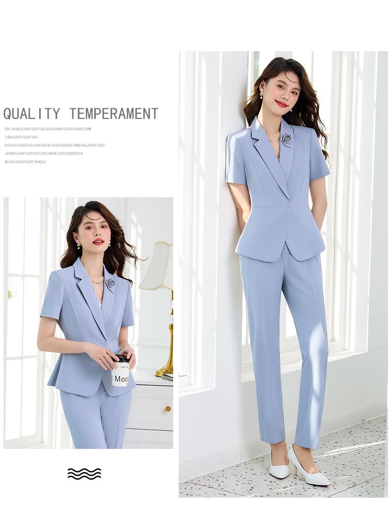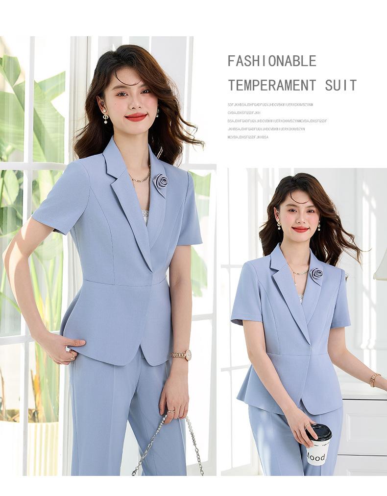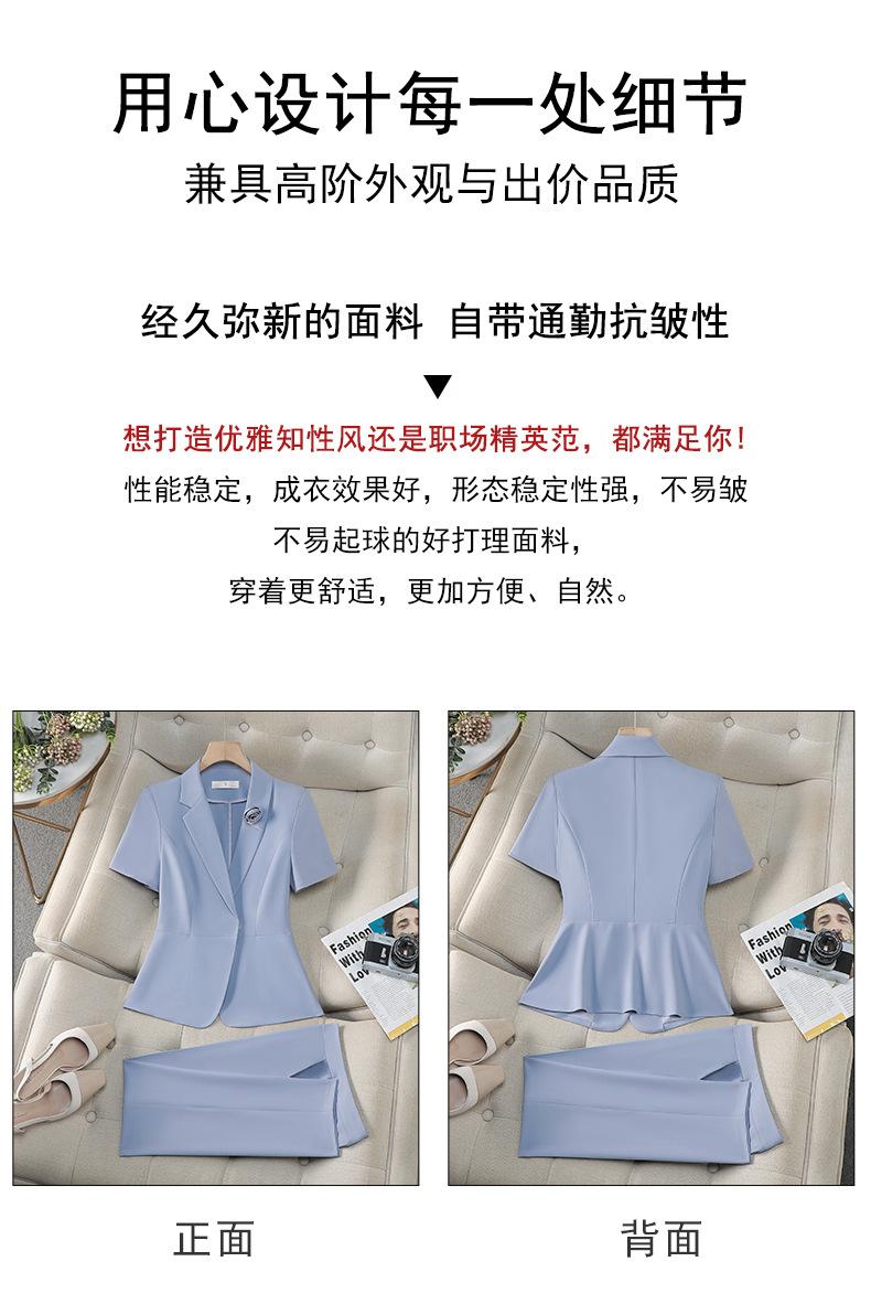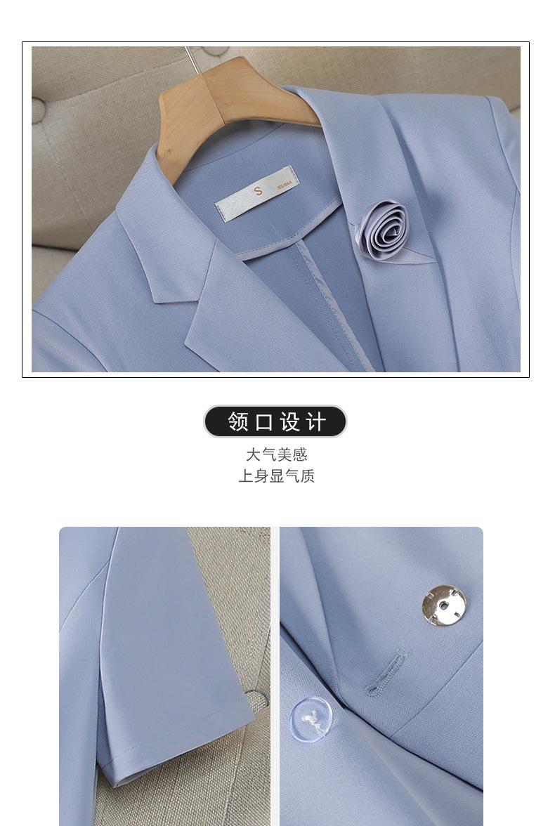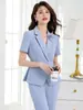 Chaqueta de Traje Azul de Verano de Manga Corta para Mujer Pantalones Ropa de Negocios de Alta Gama azul claro Traje de Dos Piezas de Alta Gama Moda