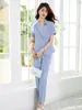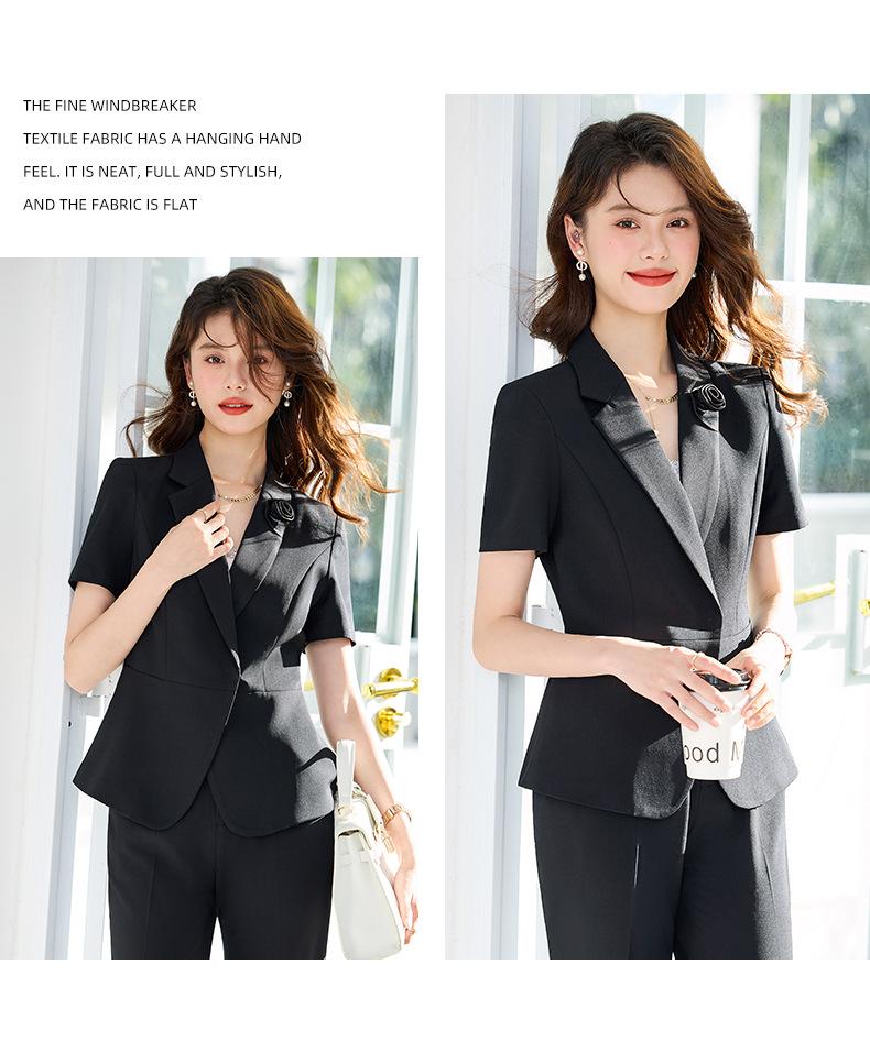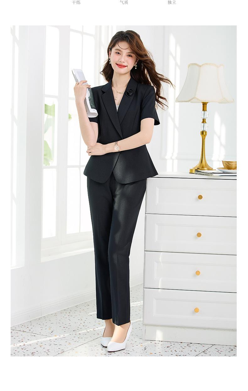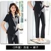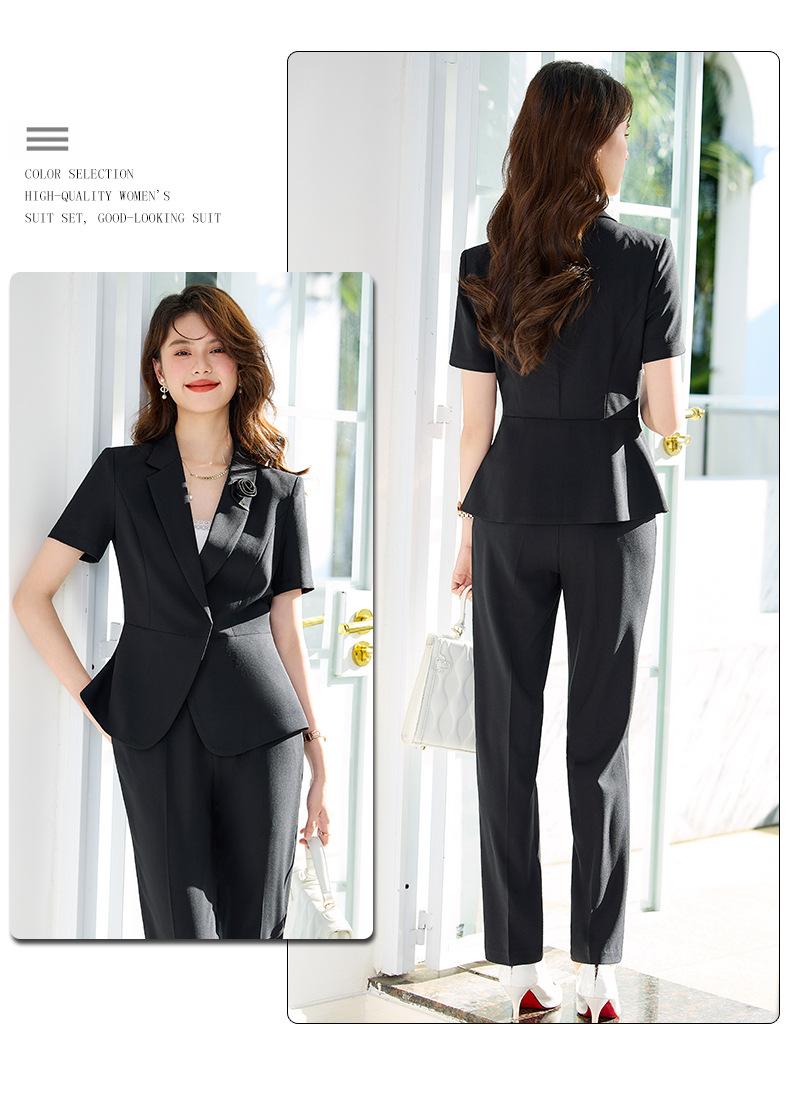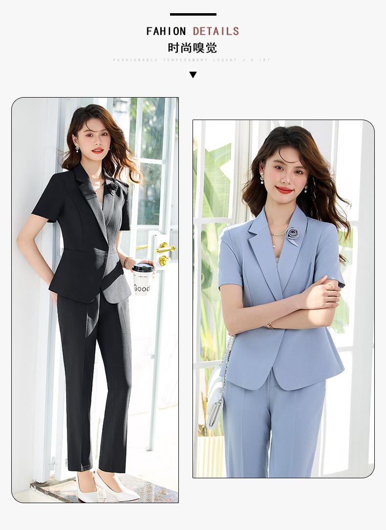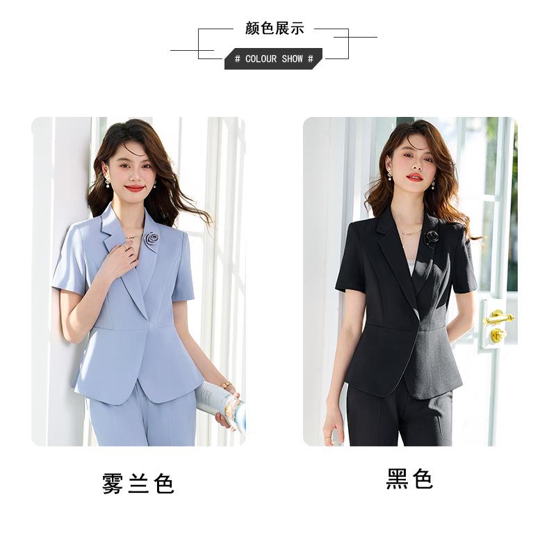 Chaqueta de Traje Azul de Verano de Manga Corta para Mujer Pantalones Ropa de Negocios de Alta Gama azul claro Traje de Dos Piezas de Alta Gama Moda