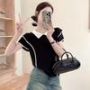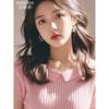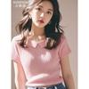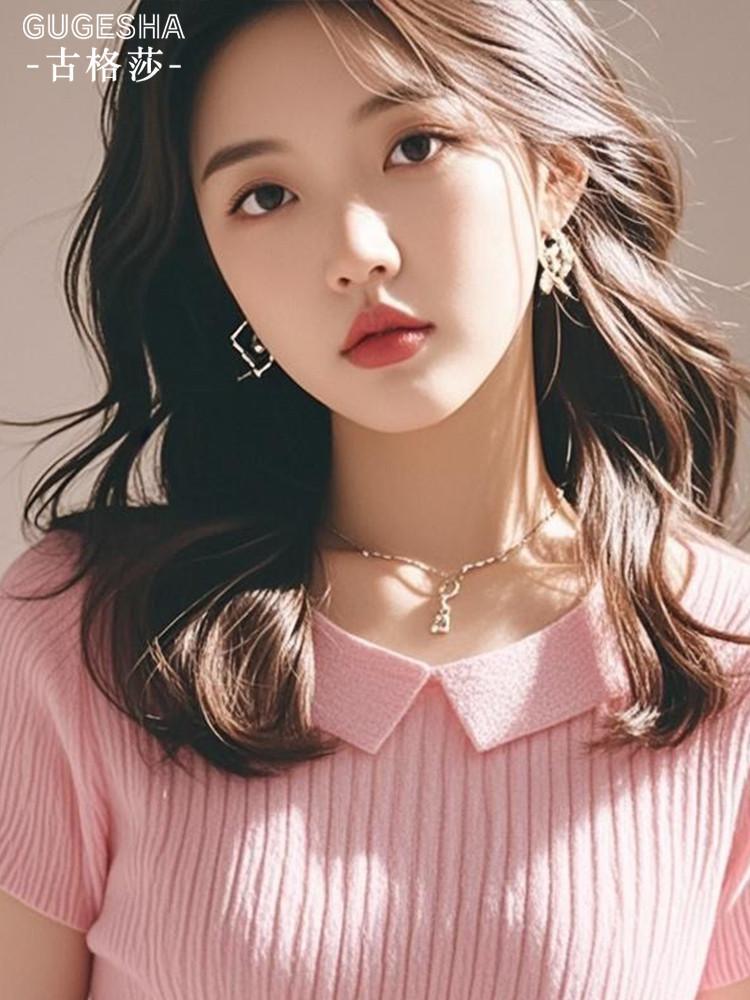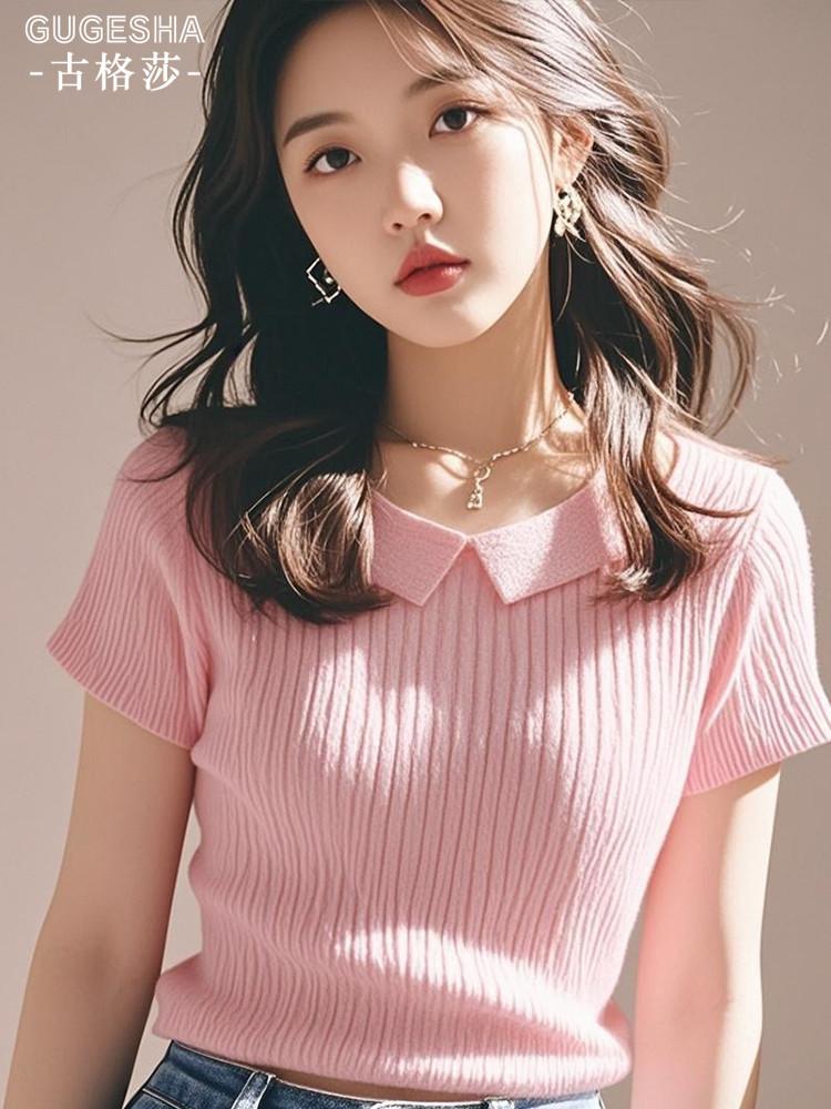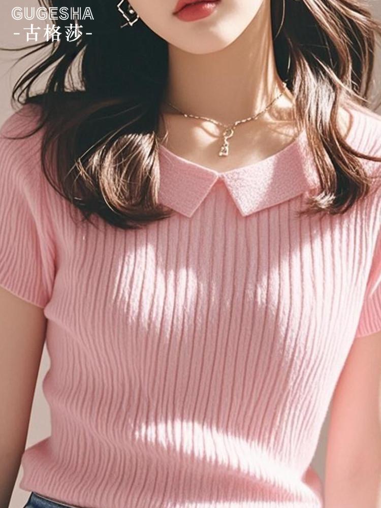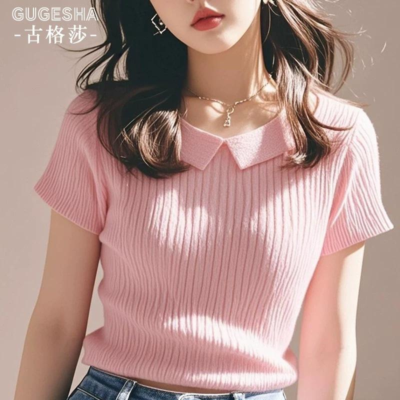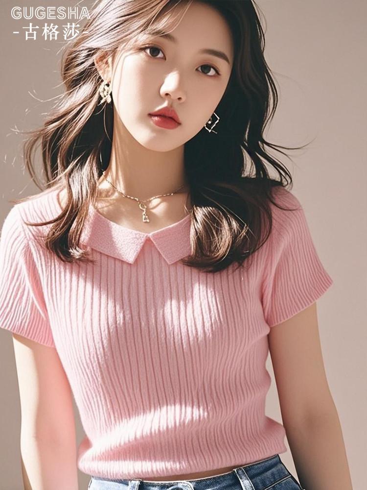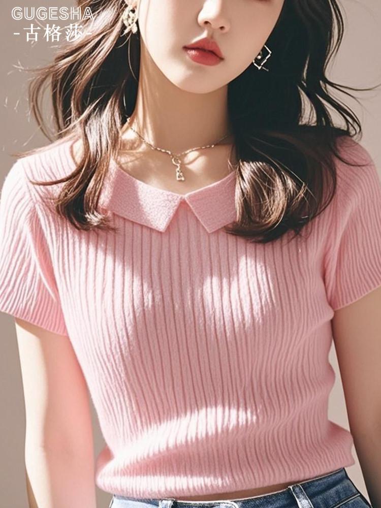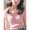 Suéter de Punto con Solapa Estilo Coreano Estilo Suave Rosa Dulce para Mujer Verano 2025 Nuevo Diseño de Moda Nicho Camiseta de Manga Corta