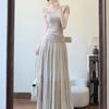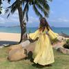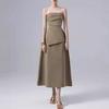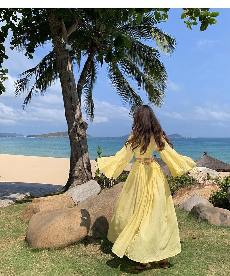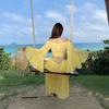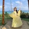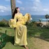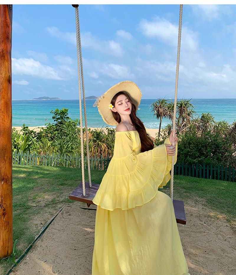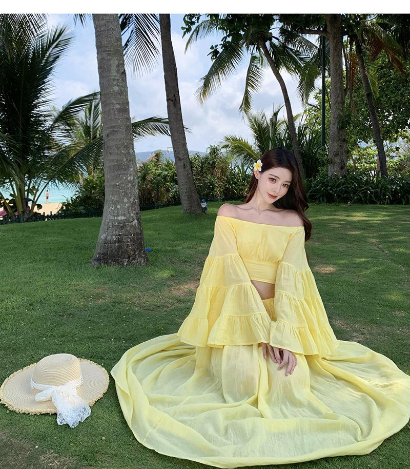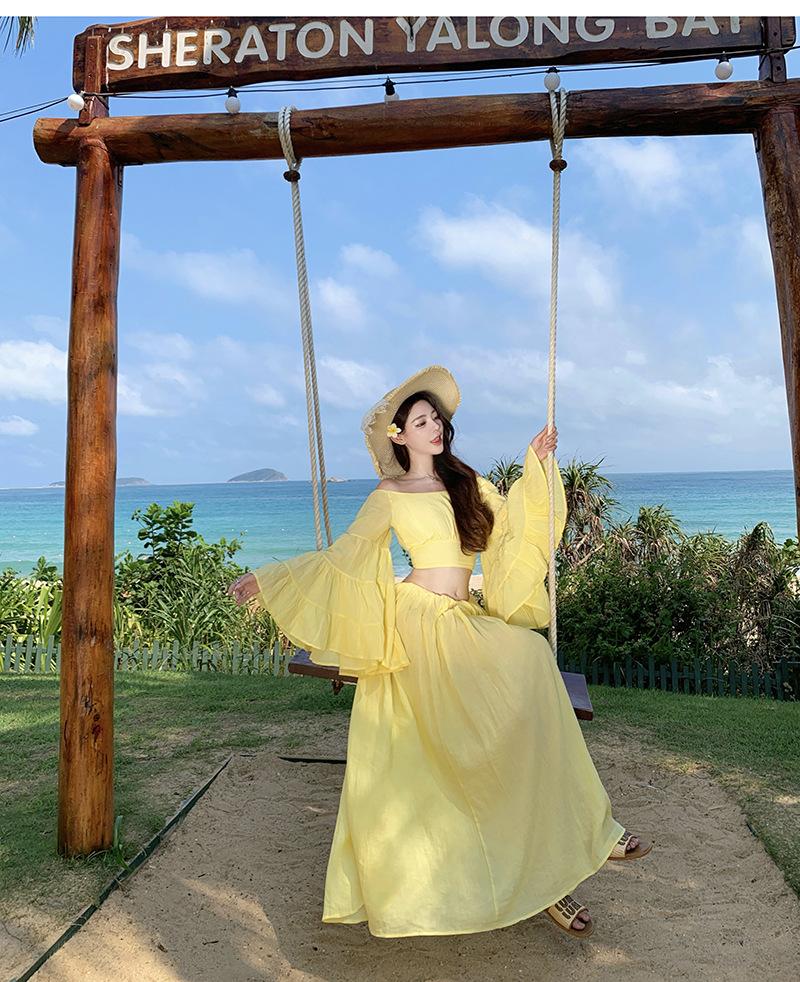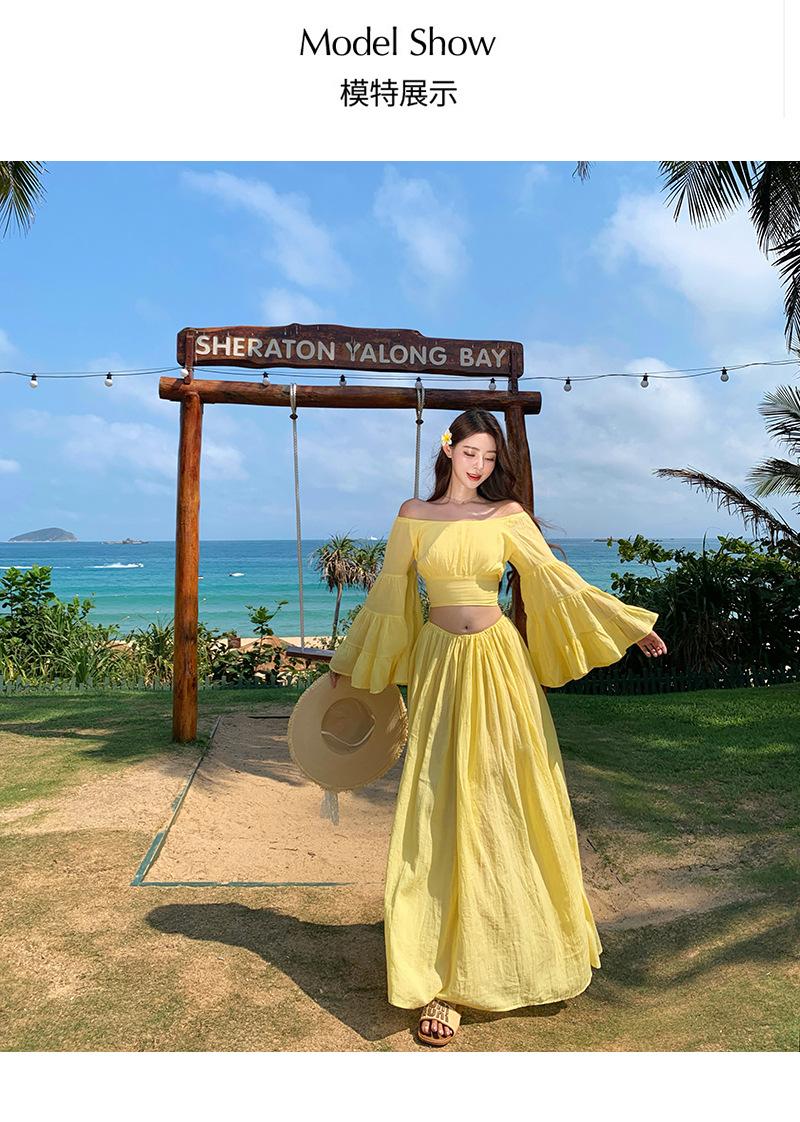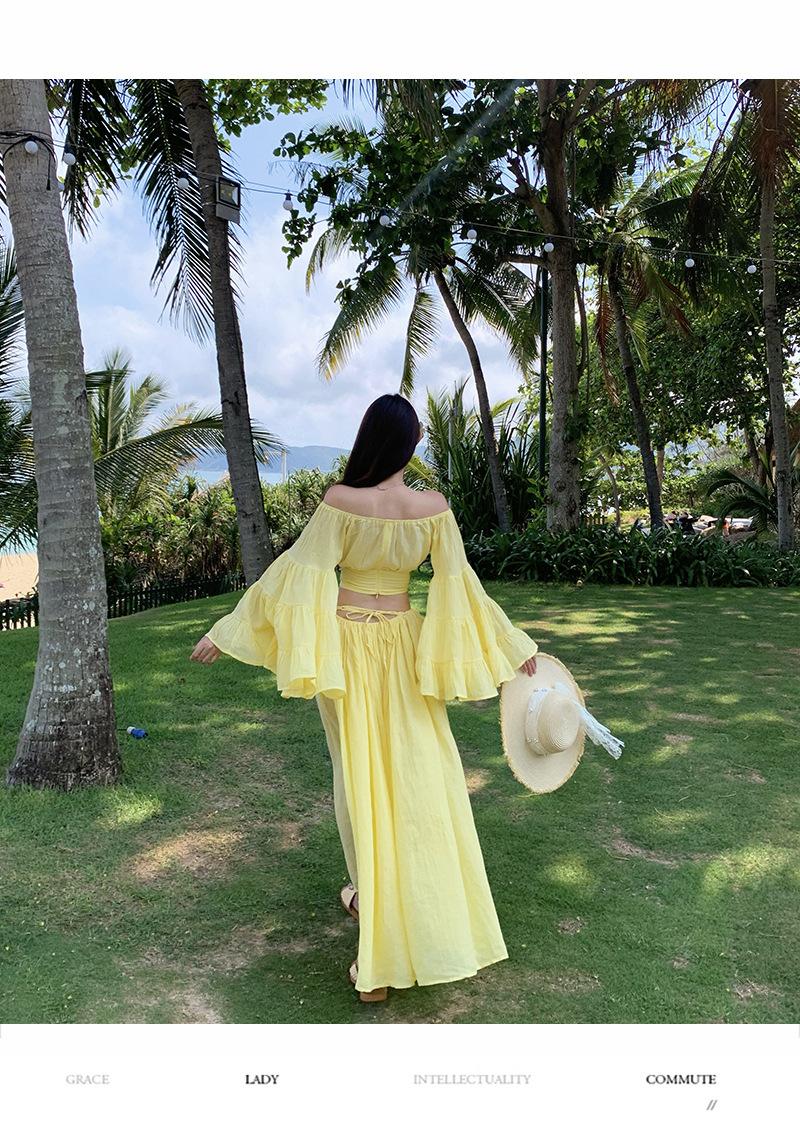 Vacaciones Junto al Mar Top de Un Hombro con Volantes y Manga Campana y Falda Larga Vestido de Dos Piezas para Mujer Traje Dopamina