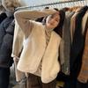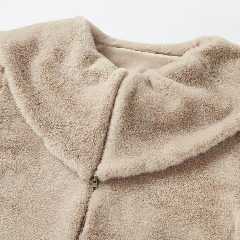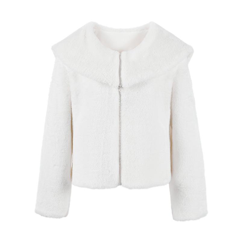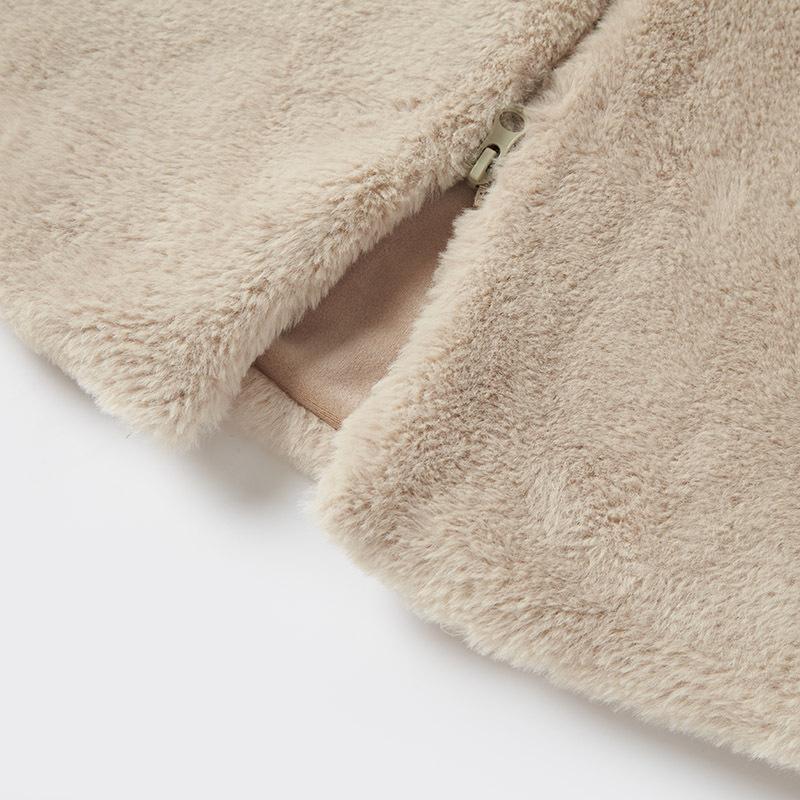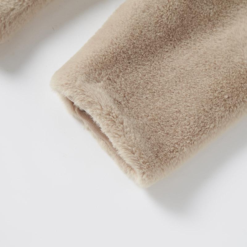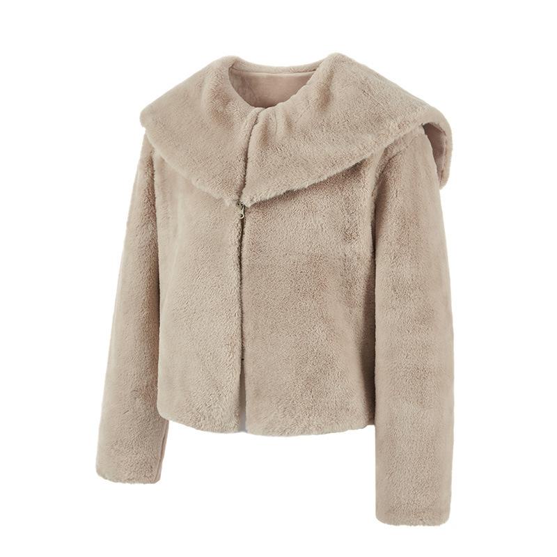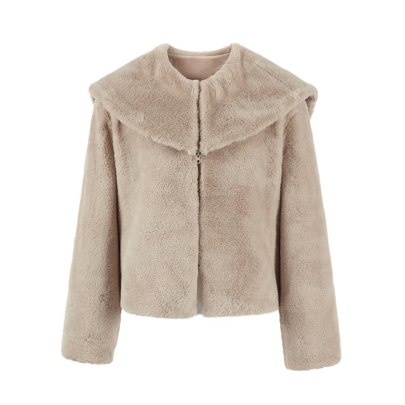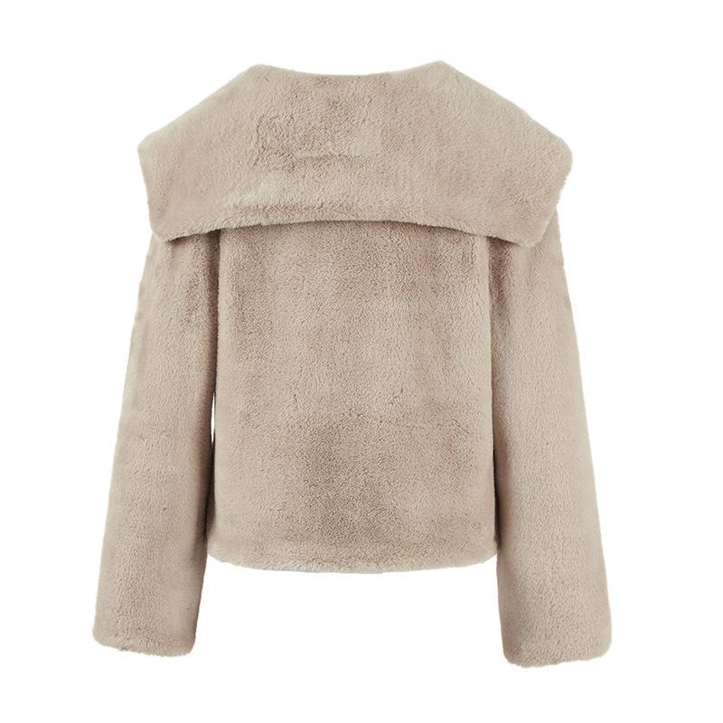 Abrigo de Mujer Exclusivo Transfronterizo de Cuello Grande Mediano Largo de Imitación de Piel para Otoño e Invierno, Nuevo Abrigo Cálido Suelto de Felpa para Mujer