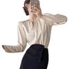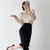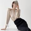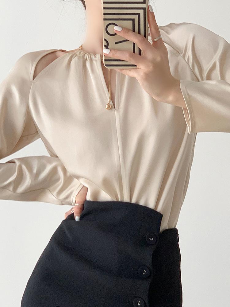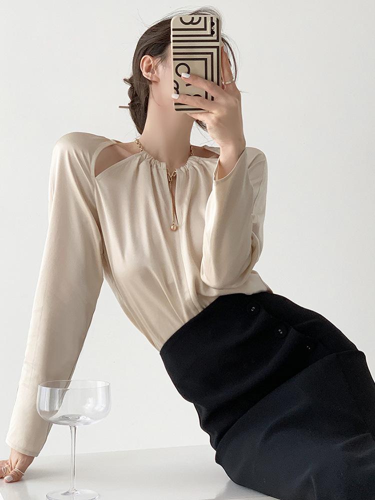 Camisa Beige de Moda para Mujer Estilo Francés Sentido del Diseño Nicho Primavera y Otoño Vintage Interior Elegante Clavícula Top de Manga Larga