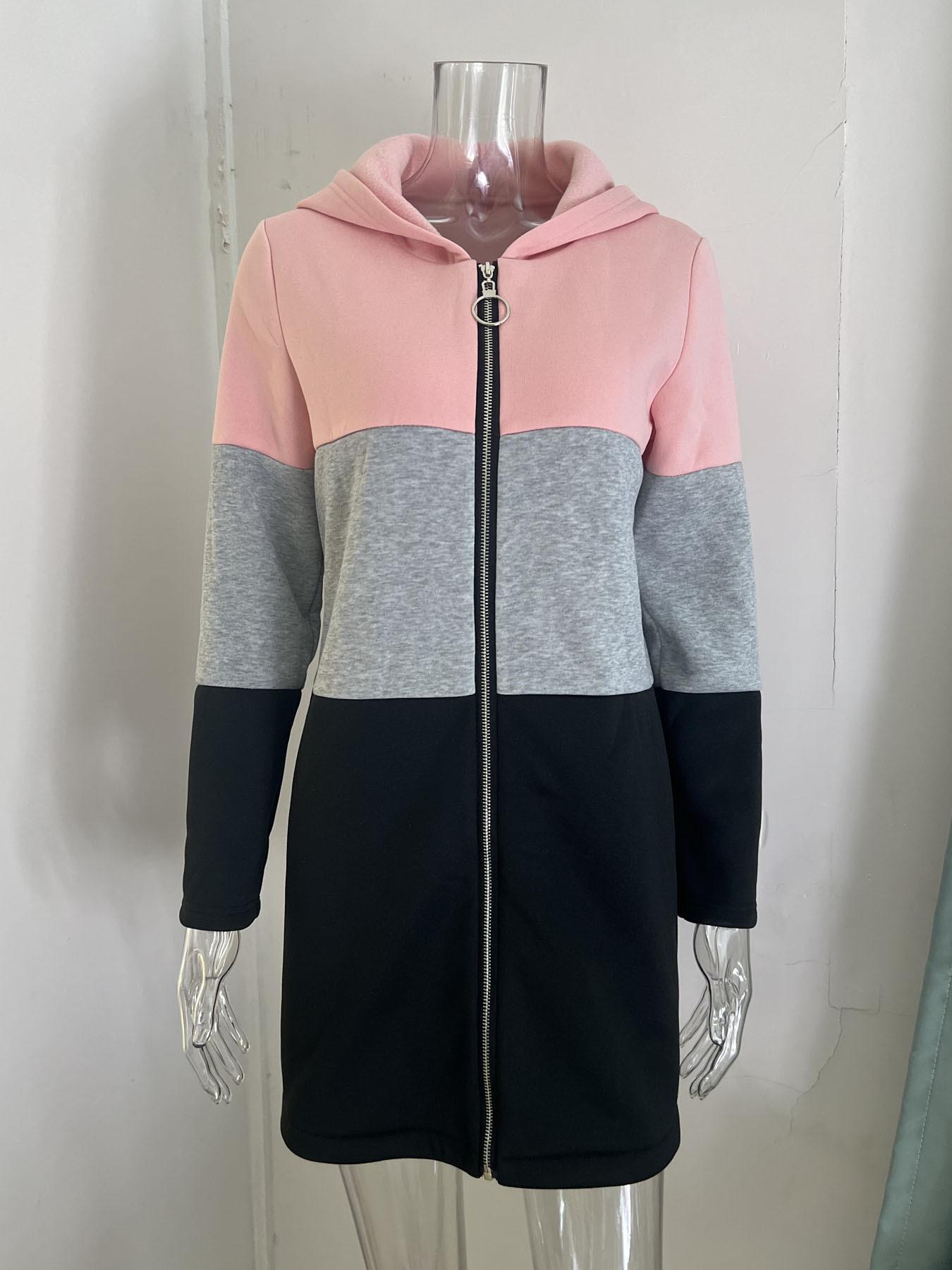 Abrigo con capucha de moda casual suelto de contraste de color de tres colores para mujer de otoño e invierno europeo y americano Amazon transfronterizo ropa de mujer