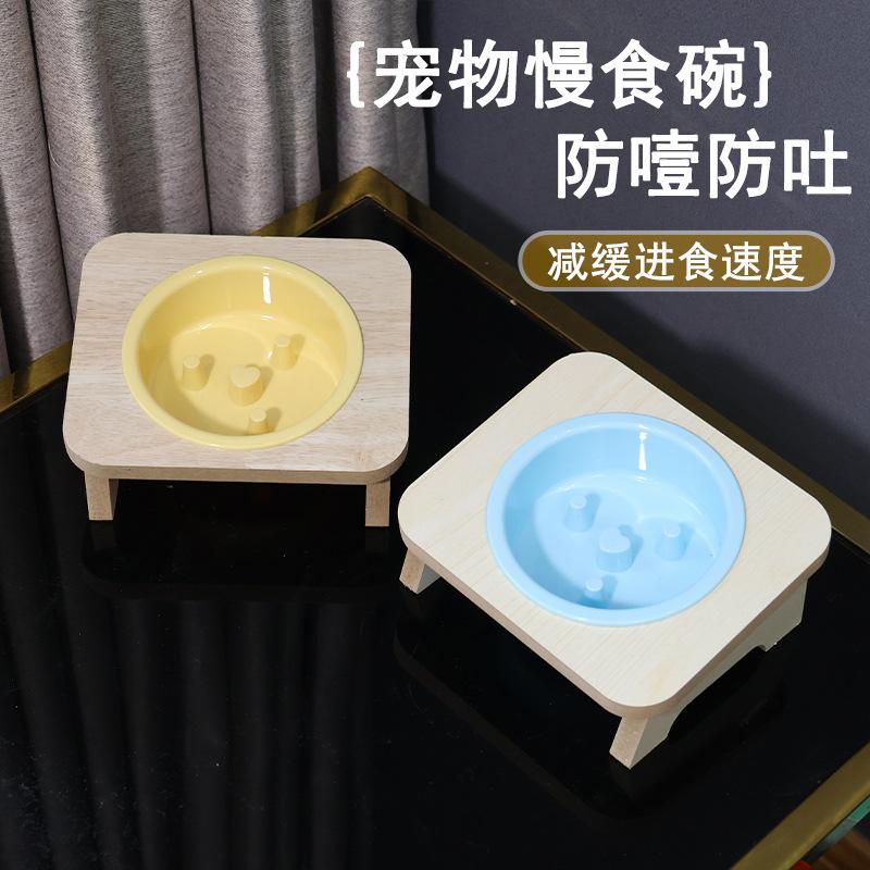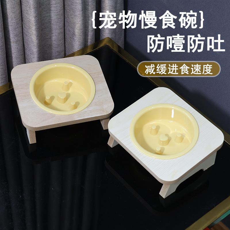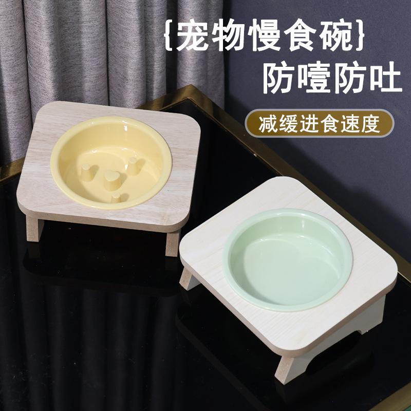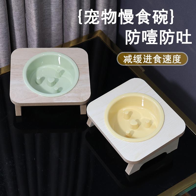Tazón Cuadrado para Arroz para Gato Plástico Comida Lenta Antiahogo Tazón Doble Columna Cervical Patas Altas Agua Potable Mascota Barbilla Tazón para Comida Tazón para Comida para Perro