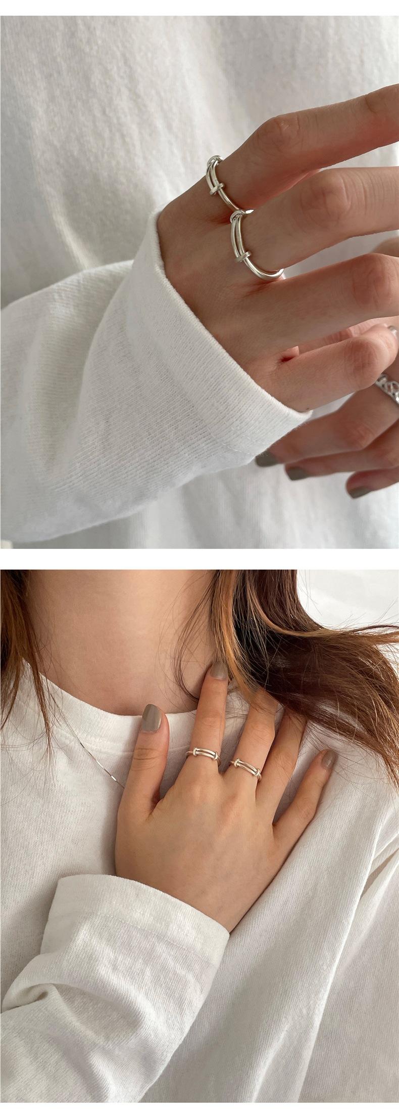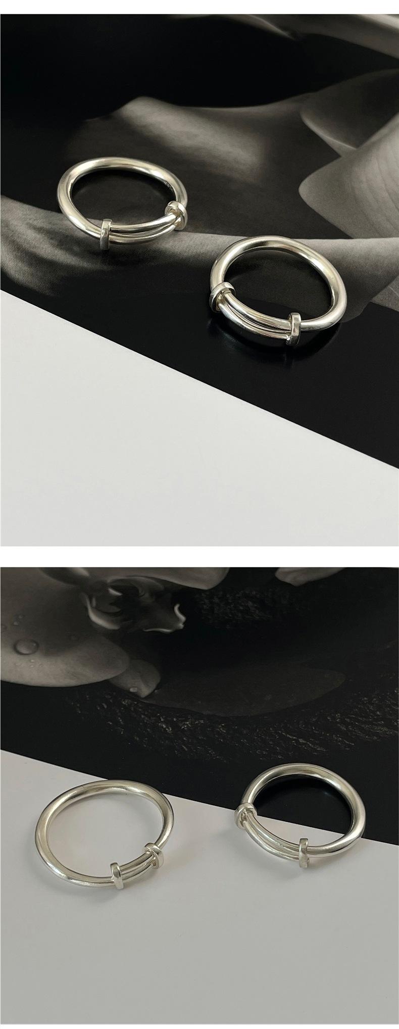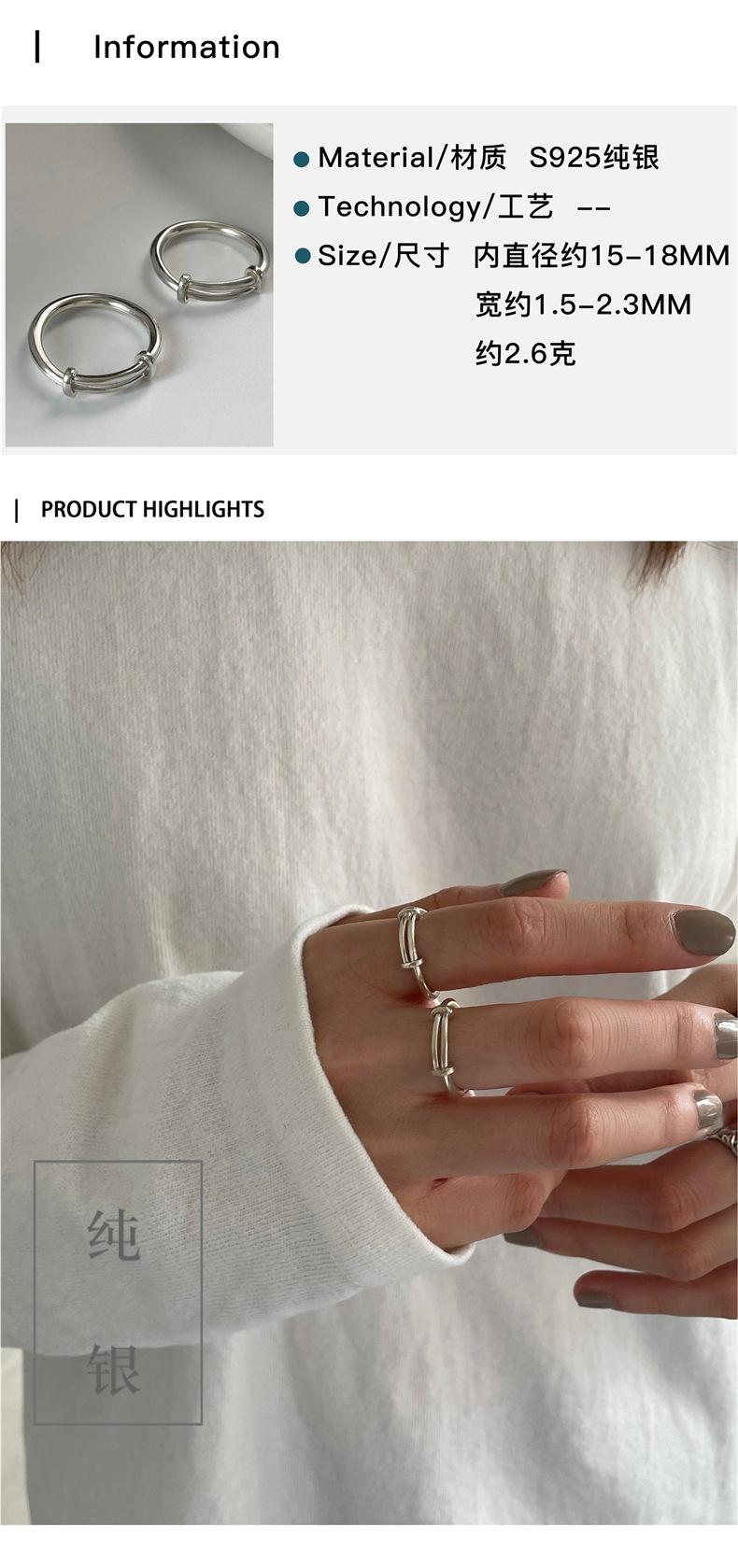 Anillo S925 de Plata Personalizado Push-Pull para Mujer, Estilo Retro Simple Minimalista, Anillo Hip-Hop Creativo Punk para el Dedo Índice