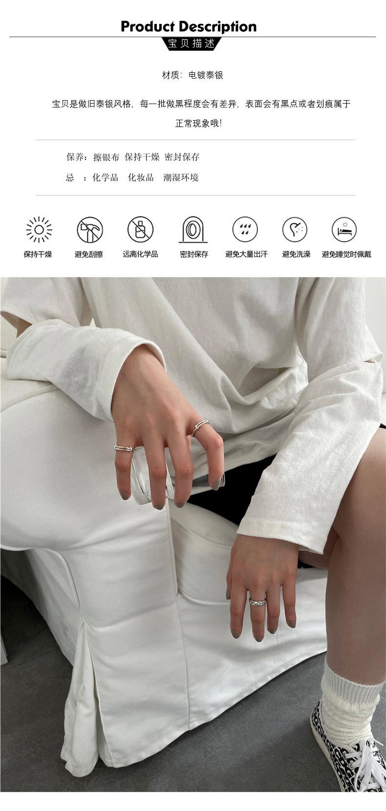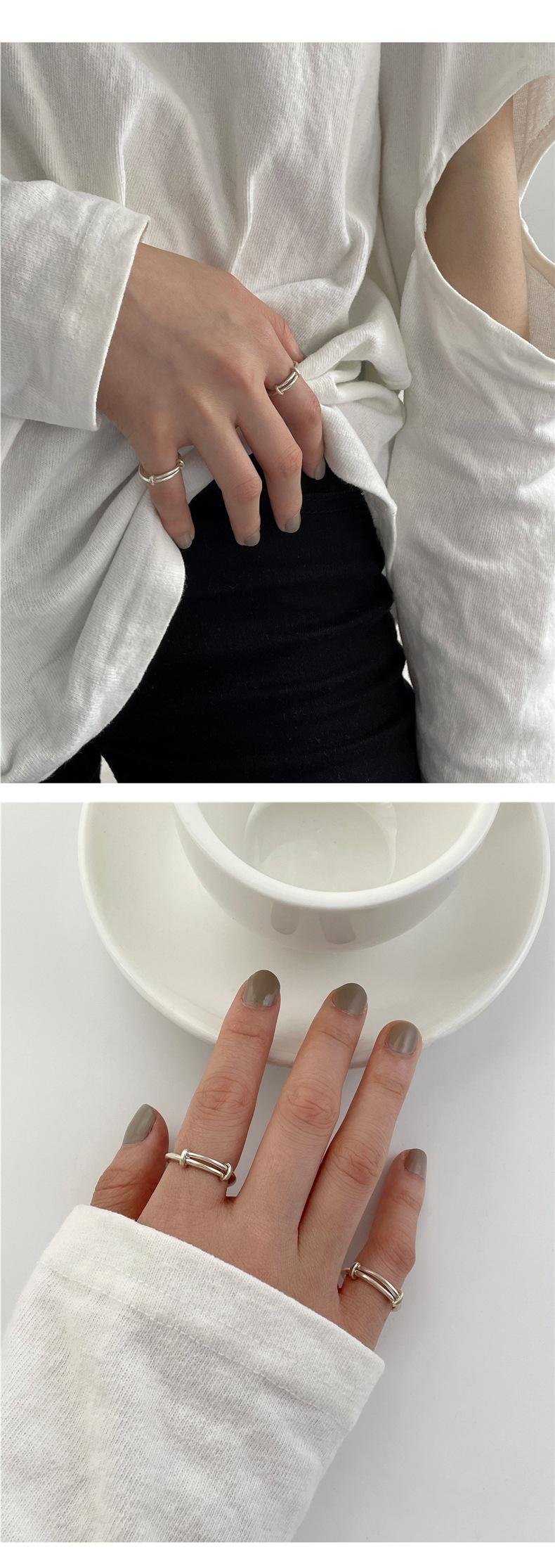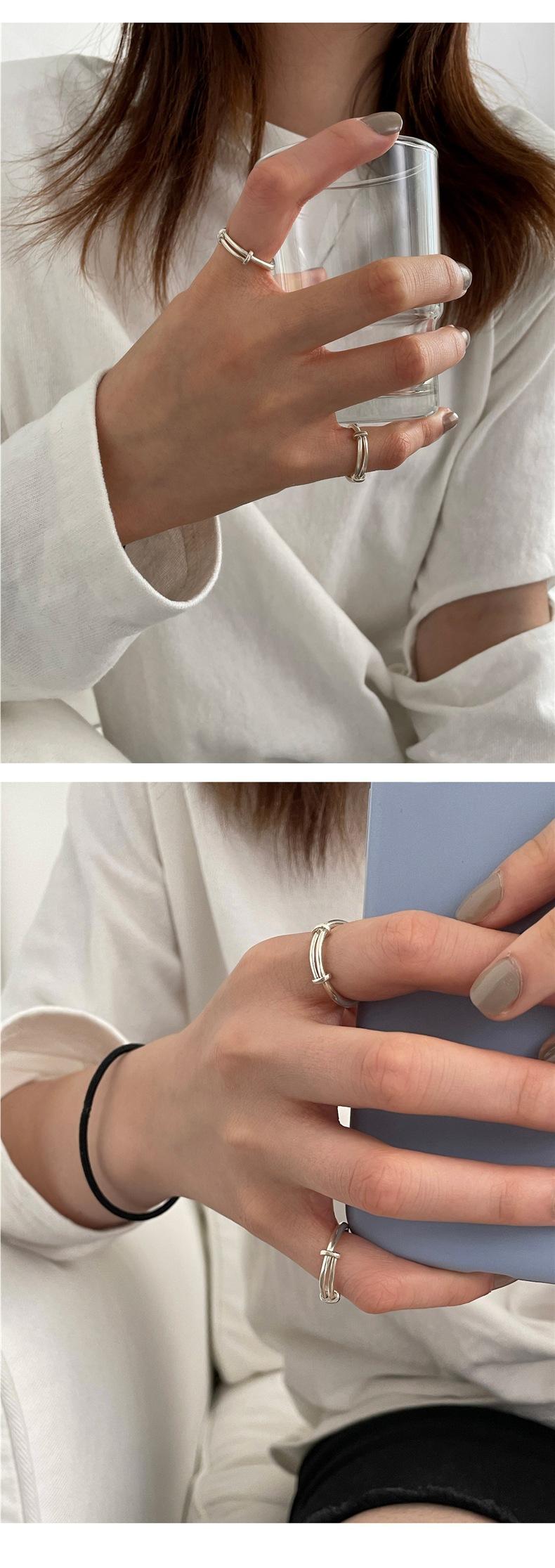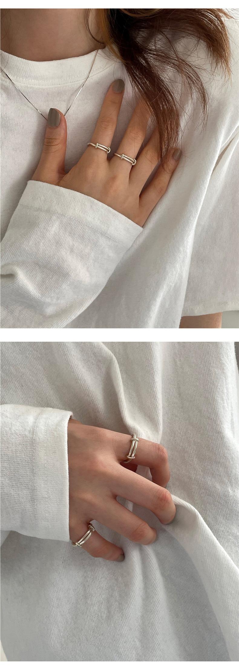 Anillo S925 de Plata Personalizado Push-Pull para Mujer, Estilo Retro Simple Minimalista, Anillo Hip-Hop Creativo Punk para el Dedo Índice