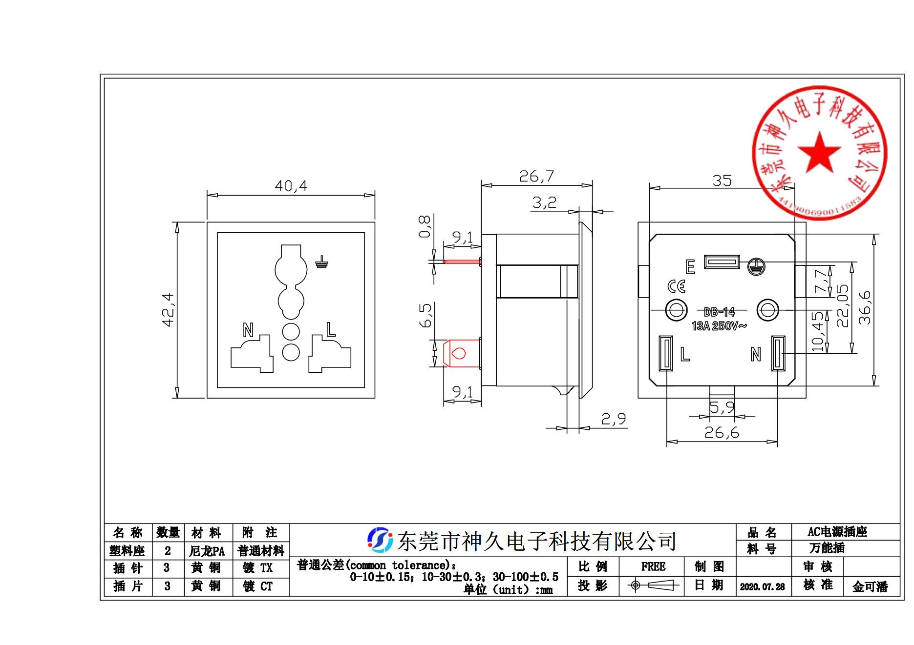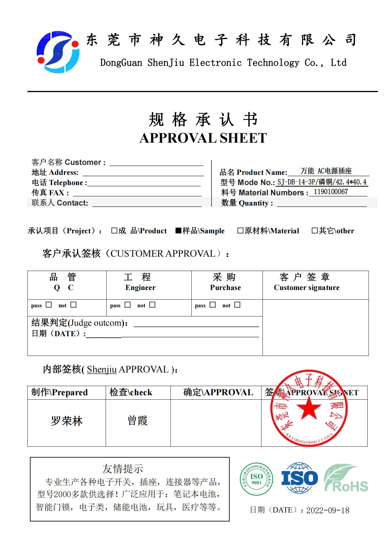 Conector Sj-Db-14-3P Universal Conector CA Electrodoméstico Inteligente Herramienta Eléctrica Aparato Eléctrico Enchufe de Carga