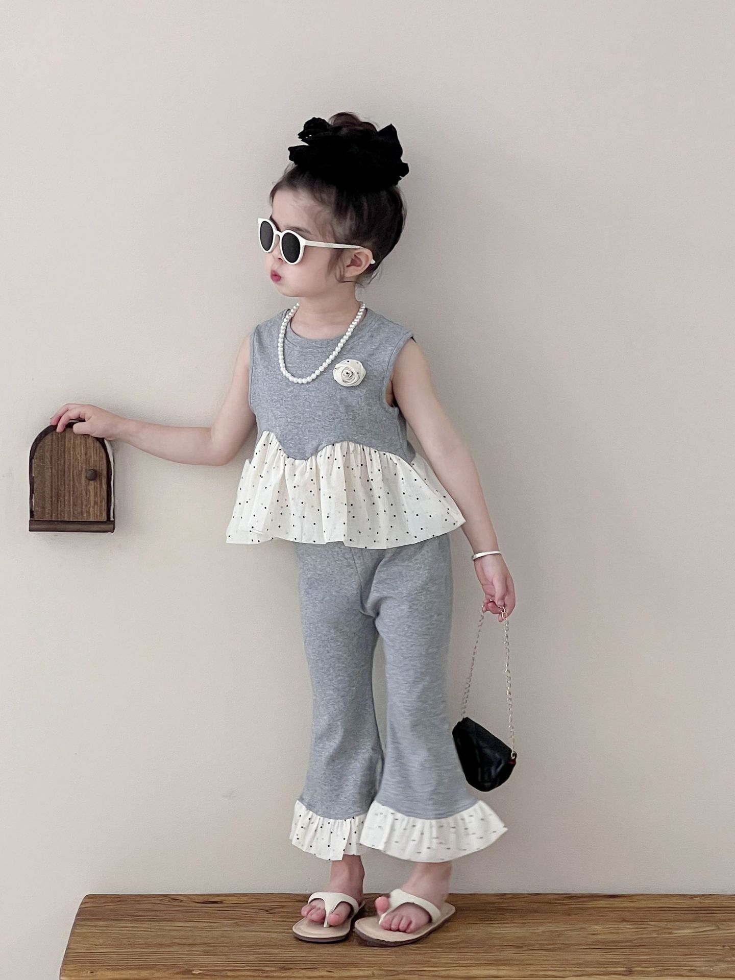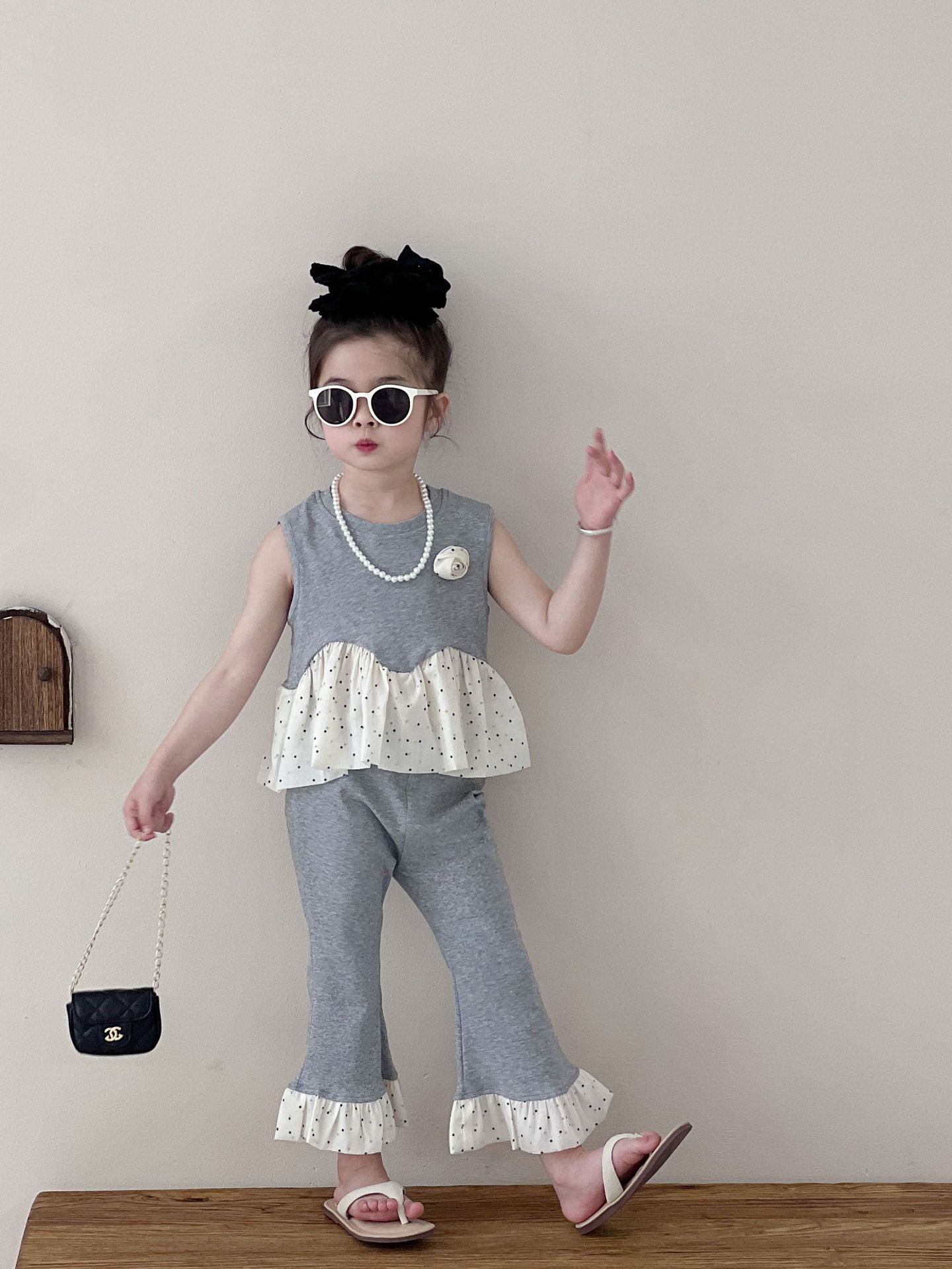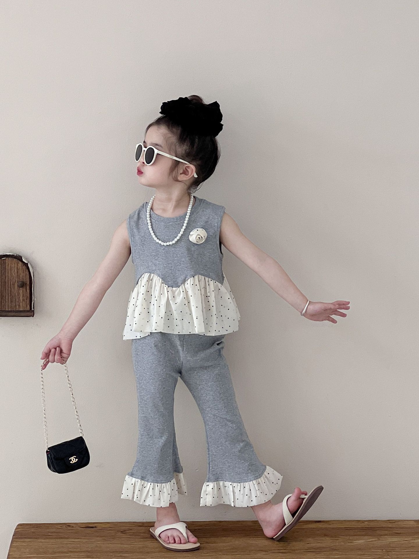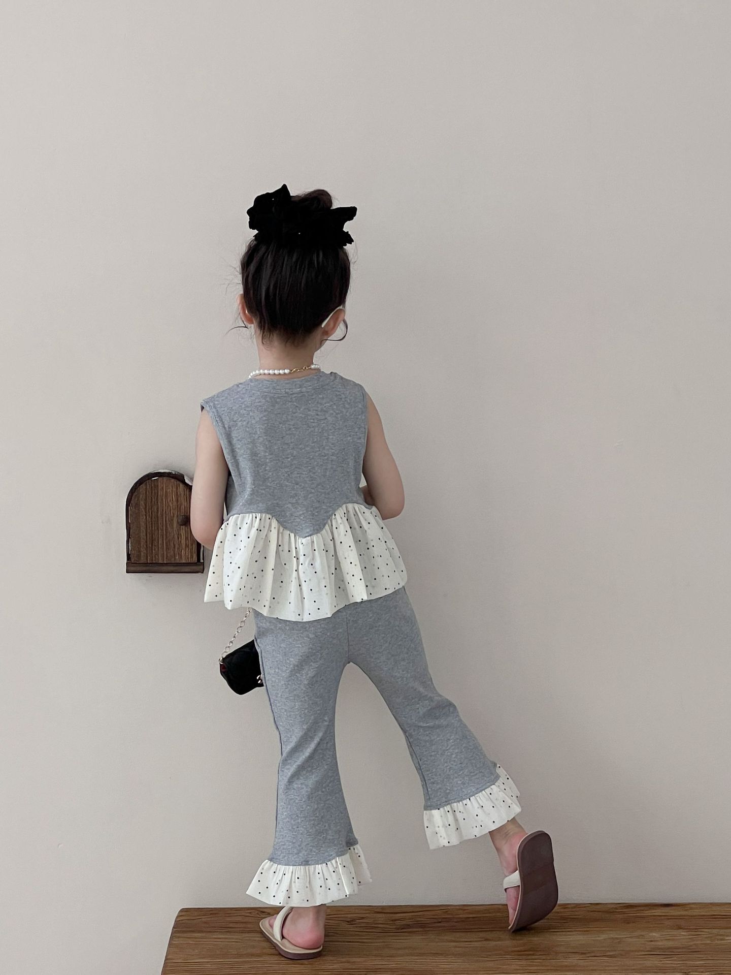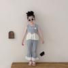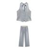 Traje de verano sin mangas 2025 elástico estilo coreano nuevo combinación de colores chaleco de lunares pantalones acampanados de nueve piezas conjunto de dos piezas