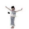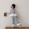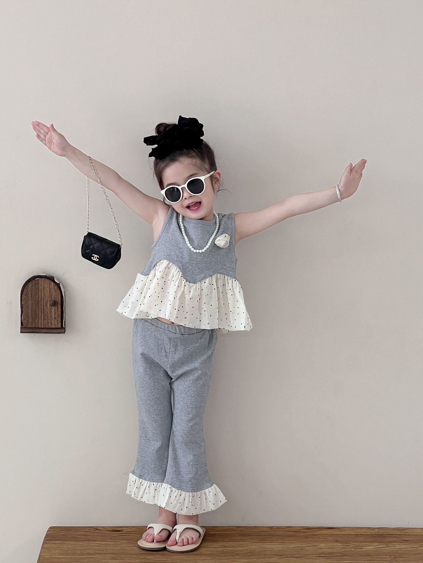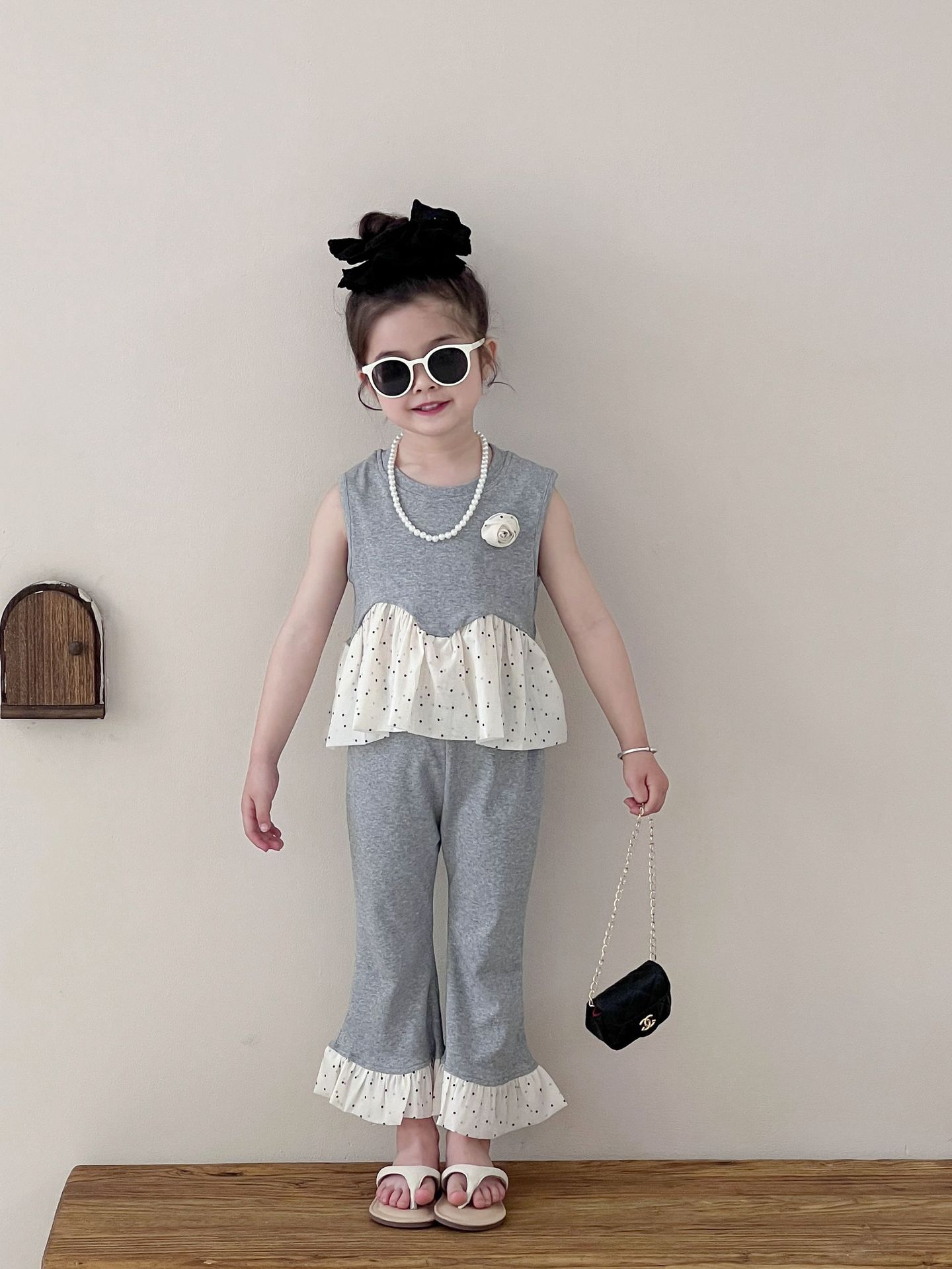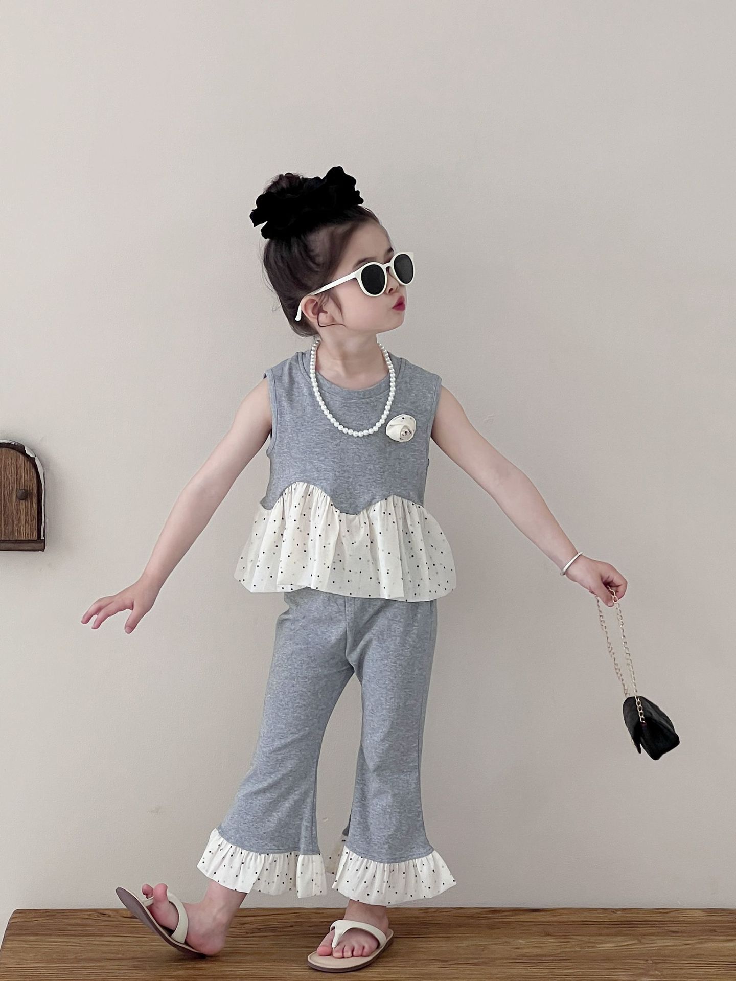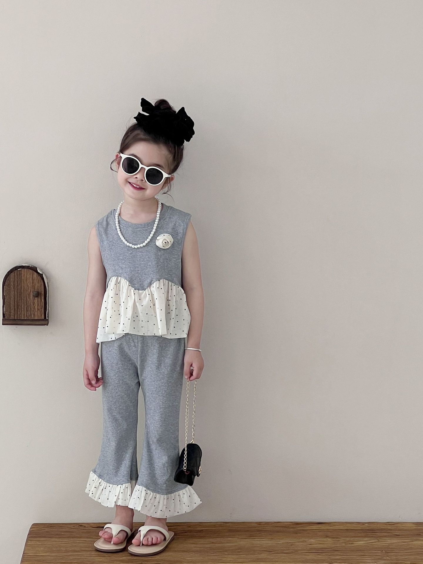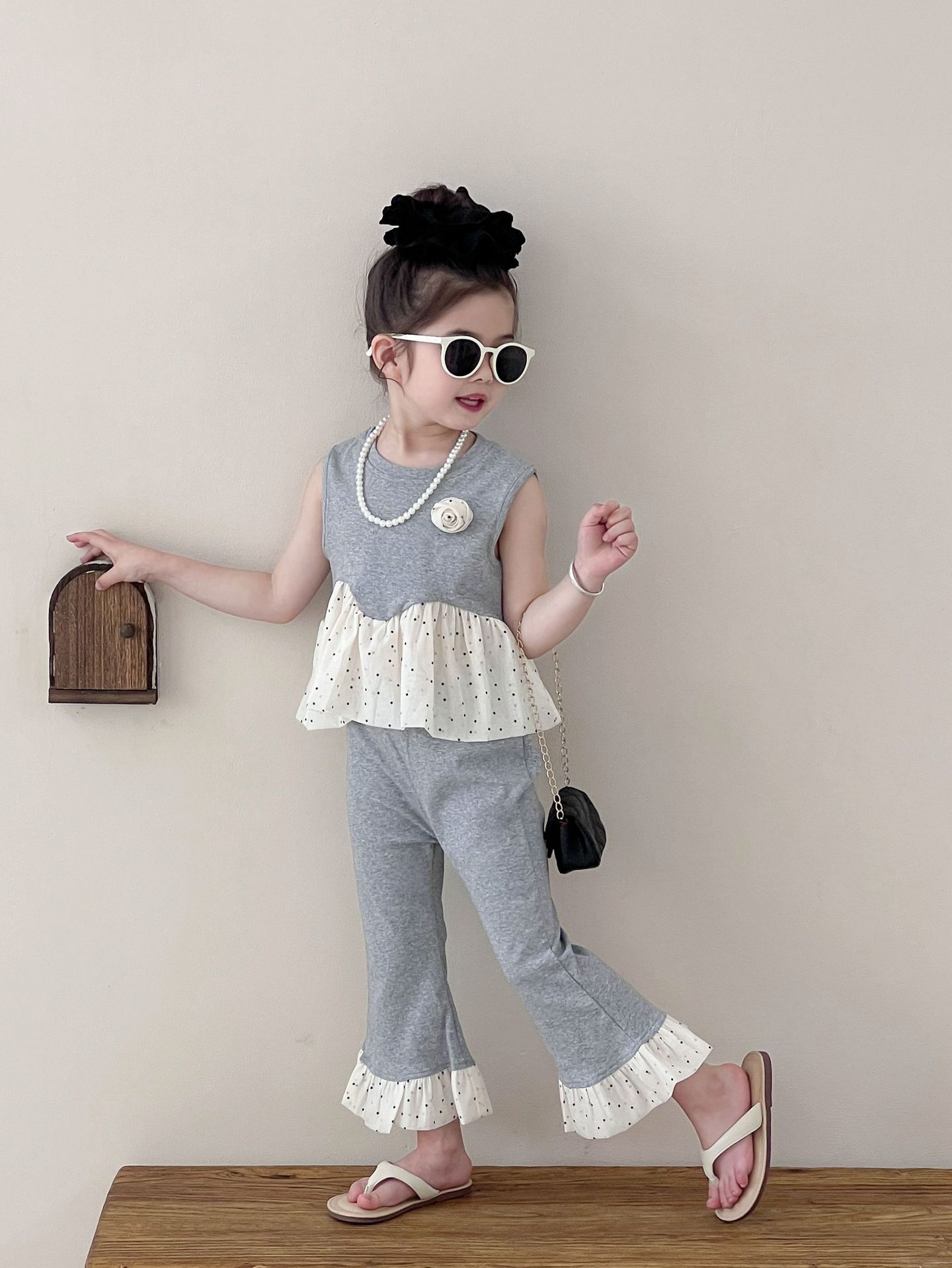 Traje de verano sin mangas 2025 elástico estilo coreano nuevo combinación de colores chaleco de lunares pantalones acampanados de nueve piezas conjunto de dos piezas