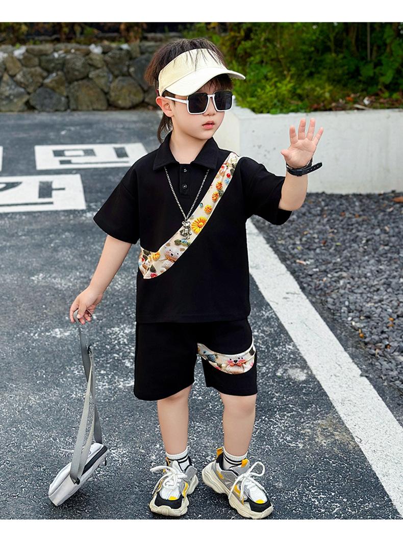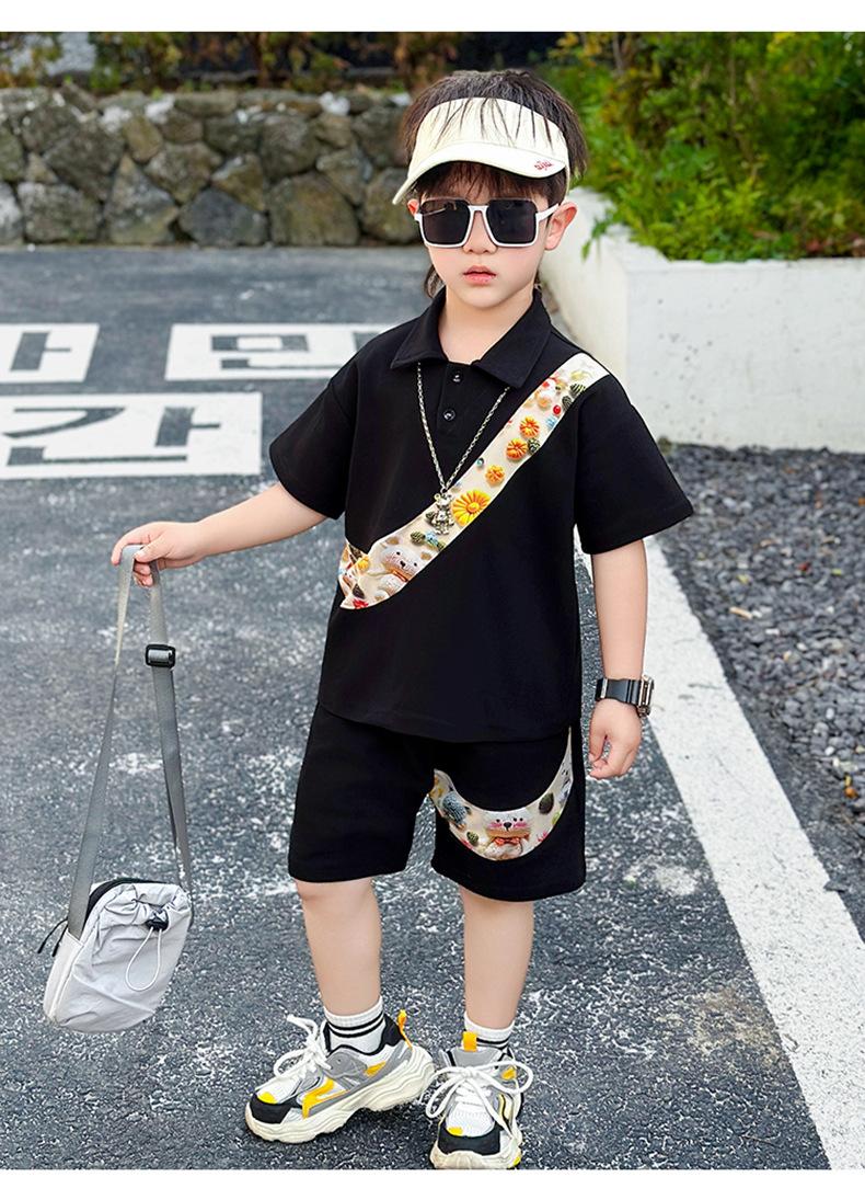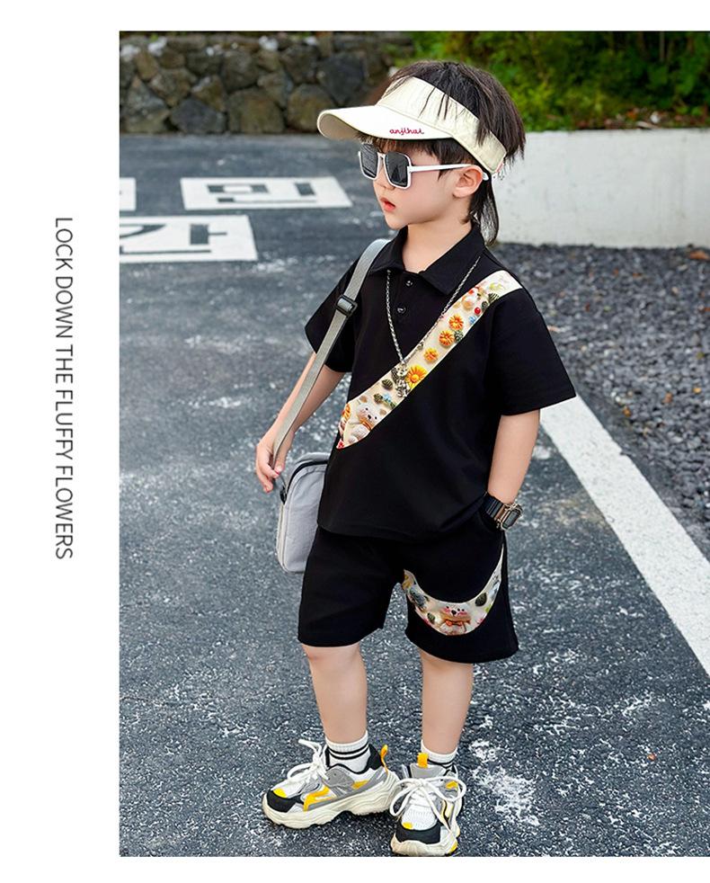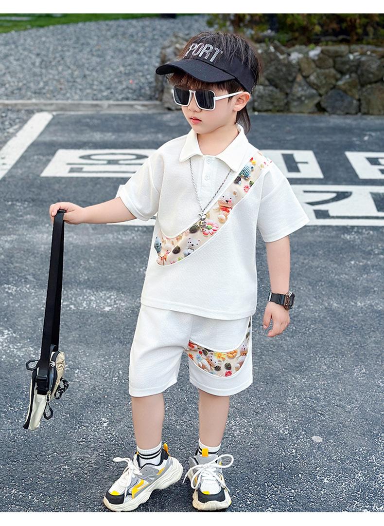 Ropa para niños Traje de verano para niños 2025 Verano Nuevo estilo Conjunto de dos piezas de manga corta para niños Ropa de bebé a la moda