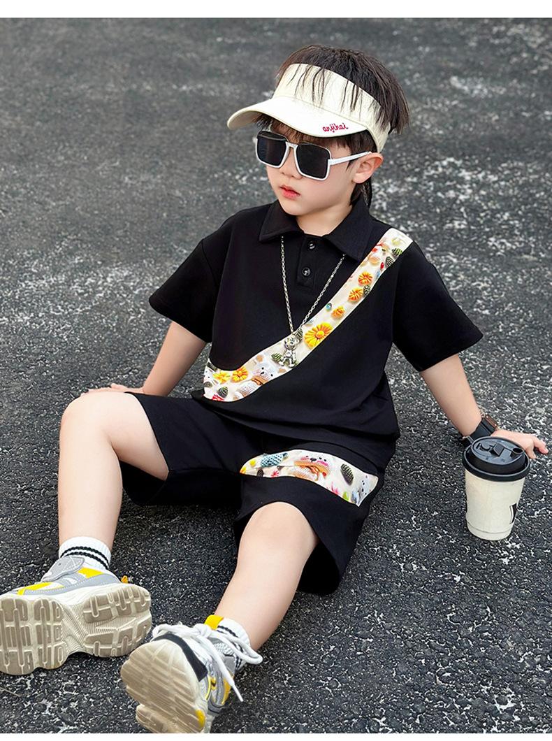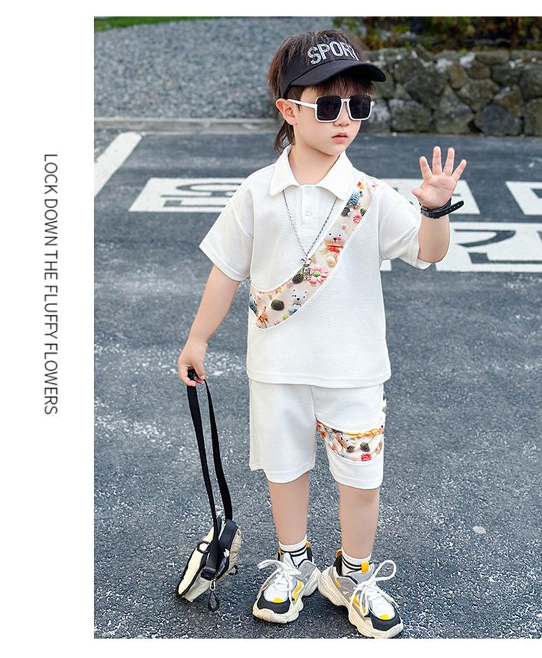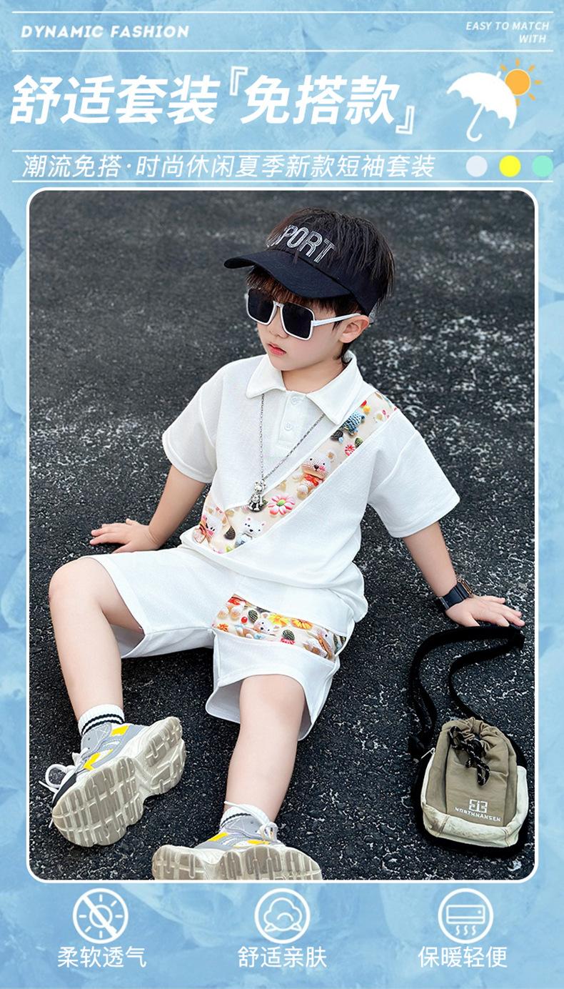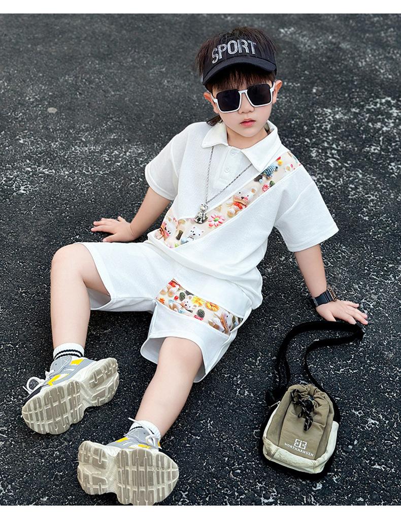 Ropa para niños Traje de verano para niños 2025 Verano Nuevo estilo Conjunto de dos piezas de manga corta para niños Ropa de bebé a la moda