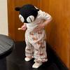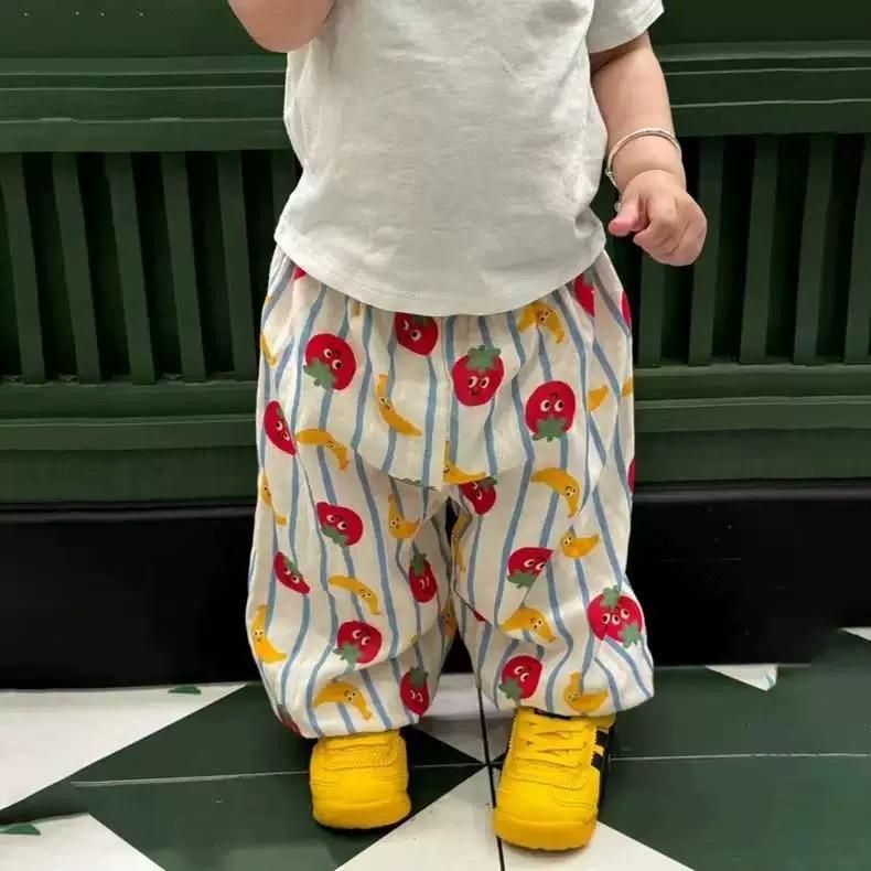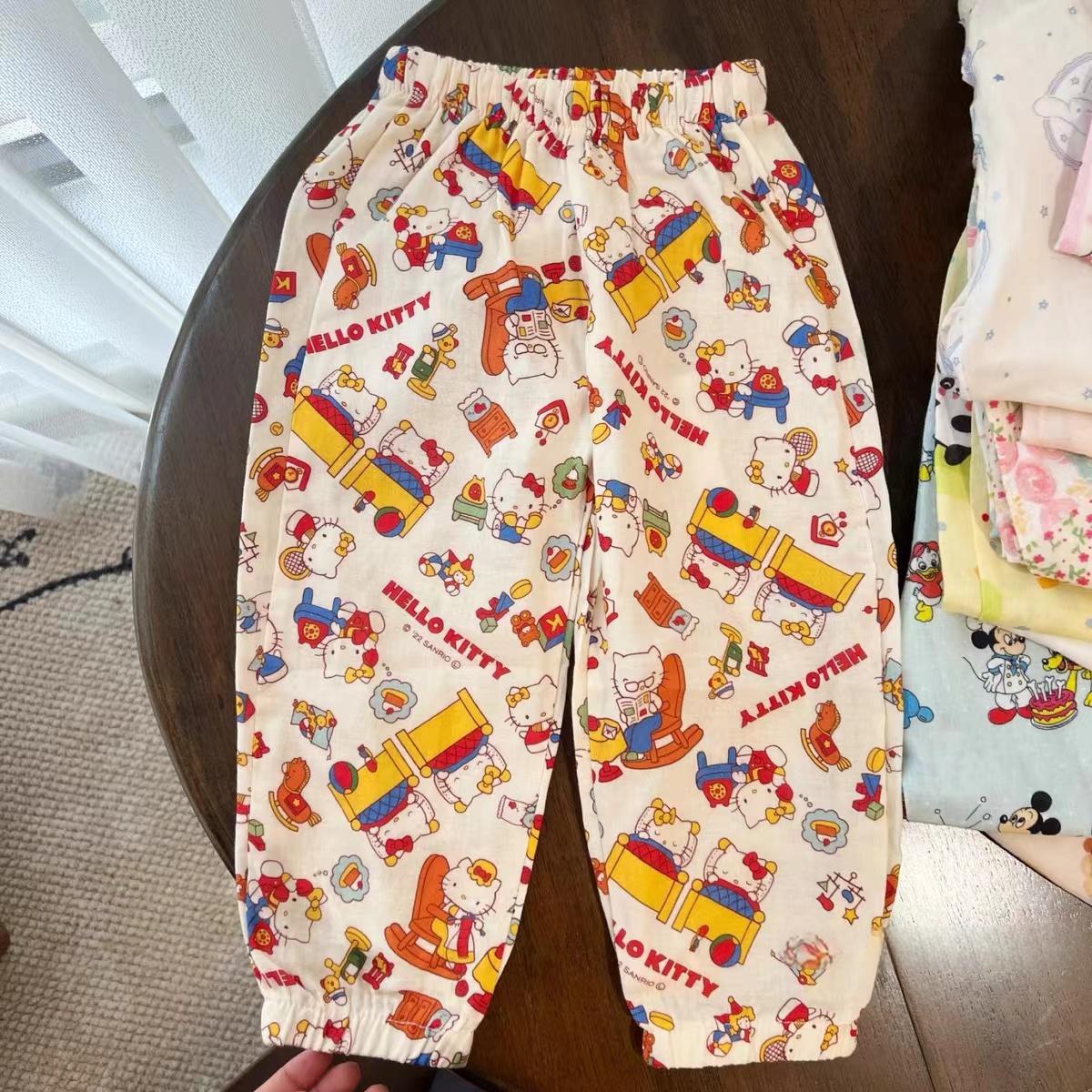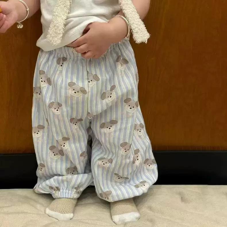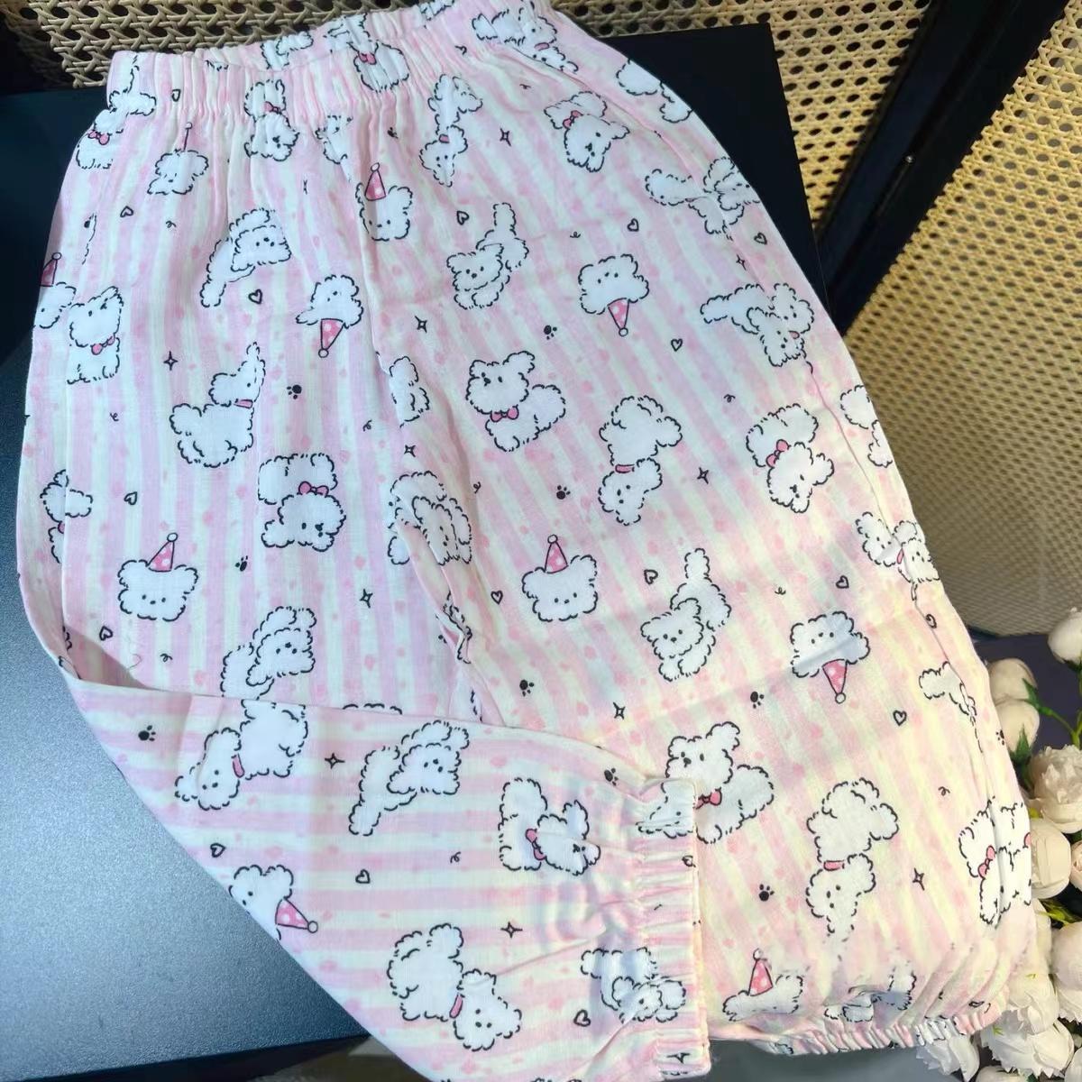 Verano Nuevo ~ Rayas Rosas Línea Perro Niños Linterna Pantalones de Pijama Clase A Algodón Puro Doble Hilo Dibujos Animados Ocio Hogar