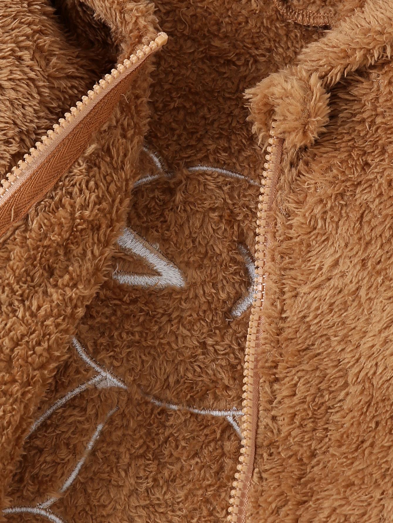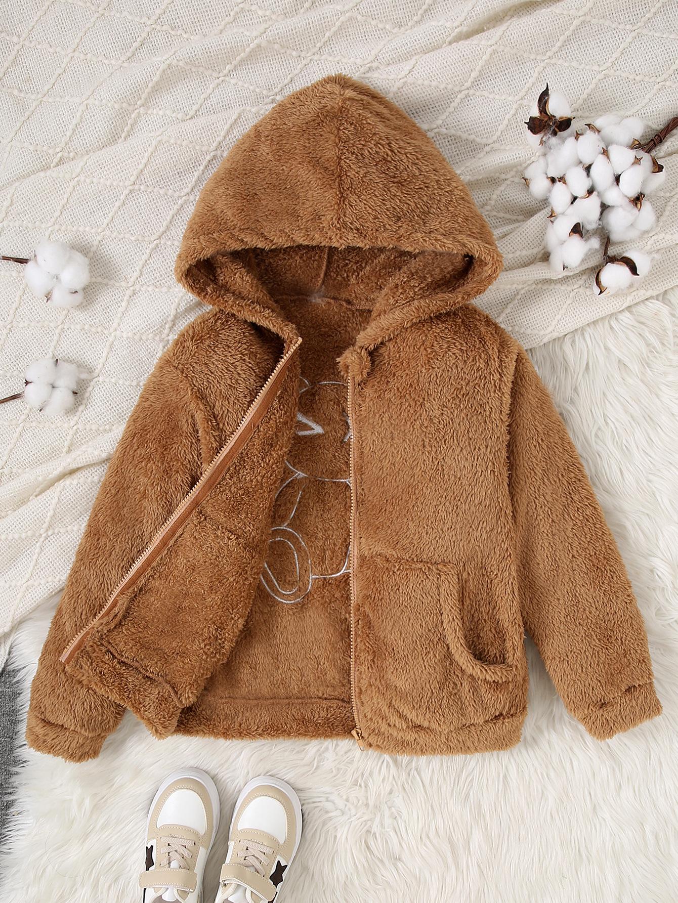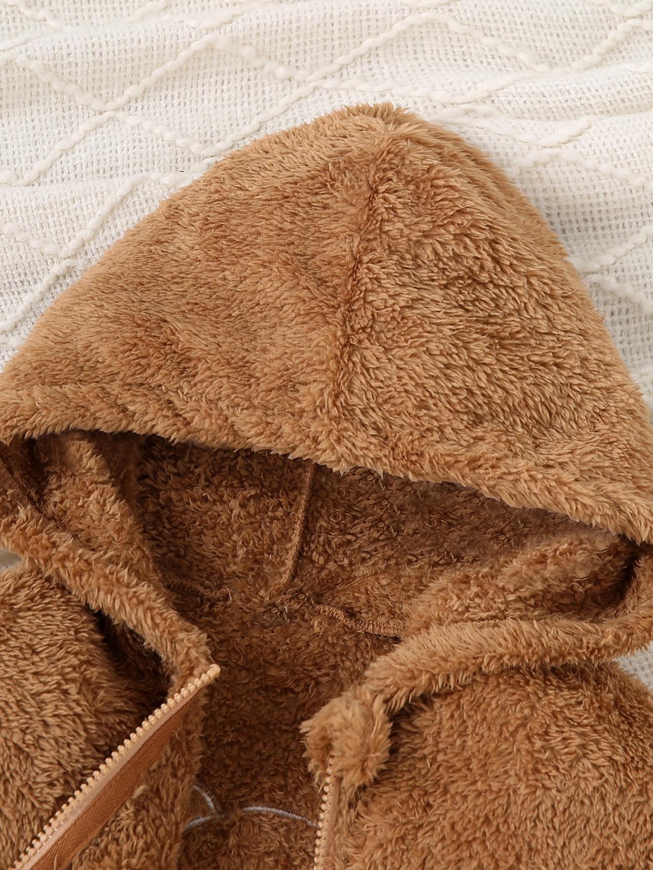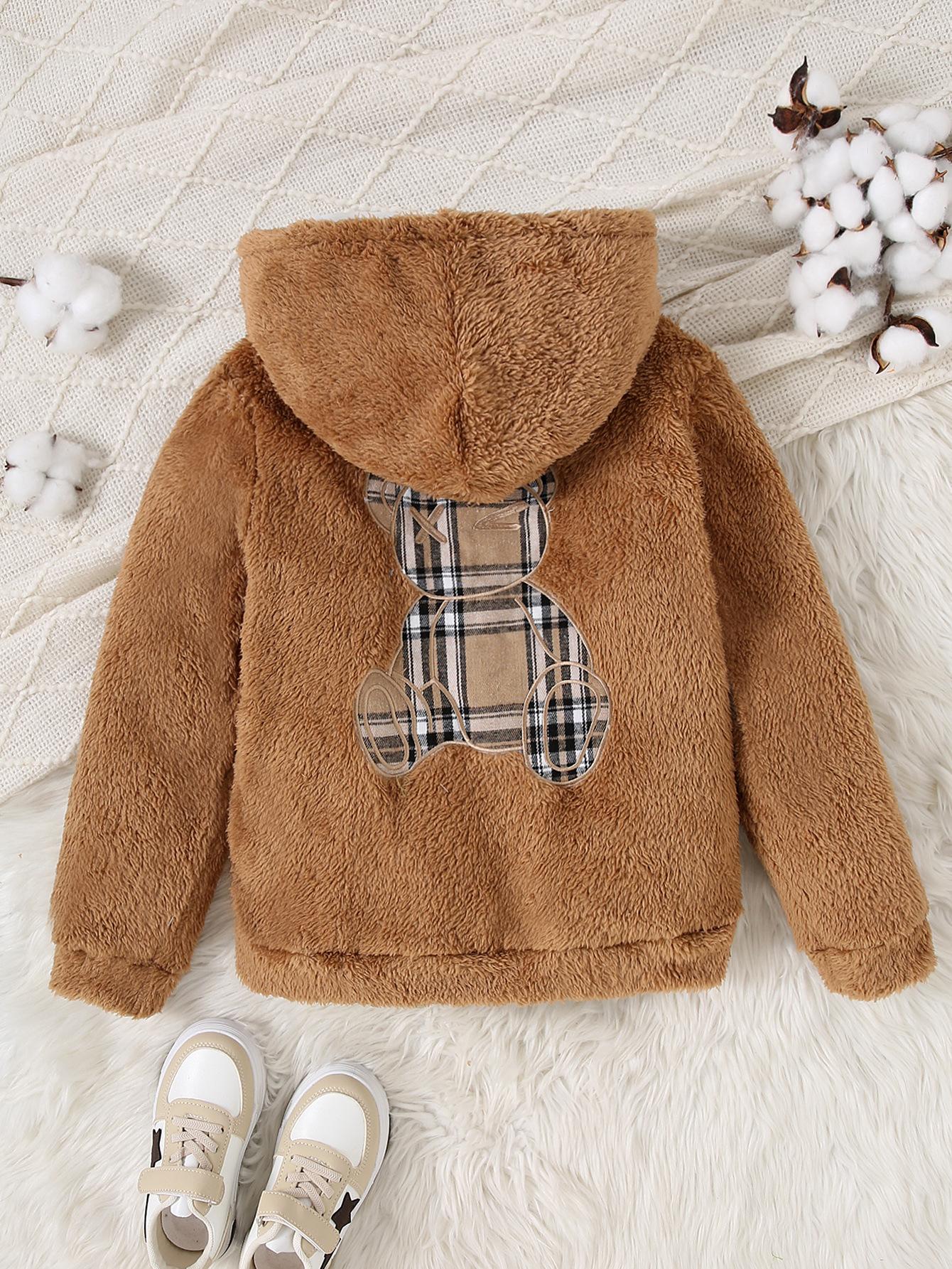 Sudadera con Capucha con Cremallera y Bolsillos Dobles Laterales para Niñas de Otoño e Invierno, con Parche de Tela de Dibujos Animados Lindo de Oso de Imitación de Piel