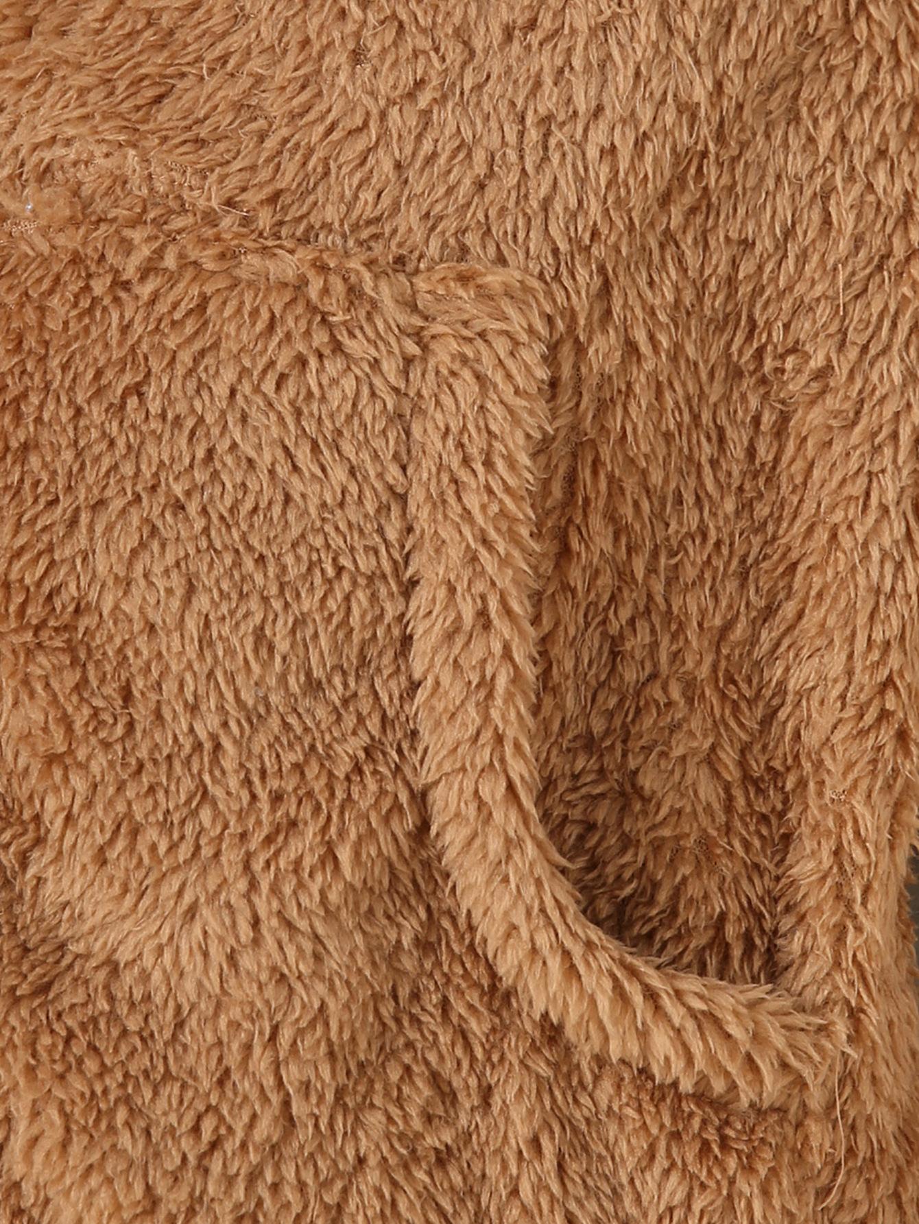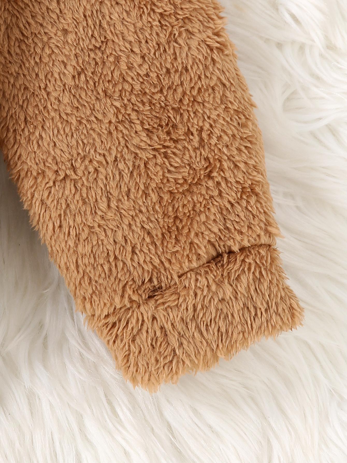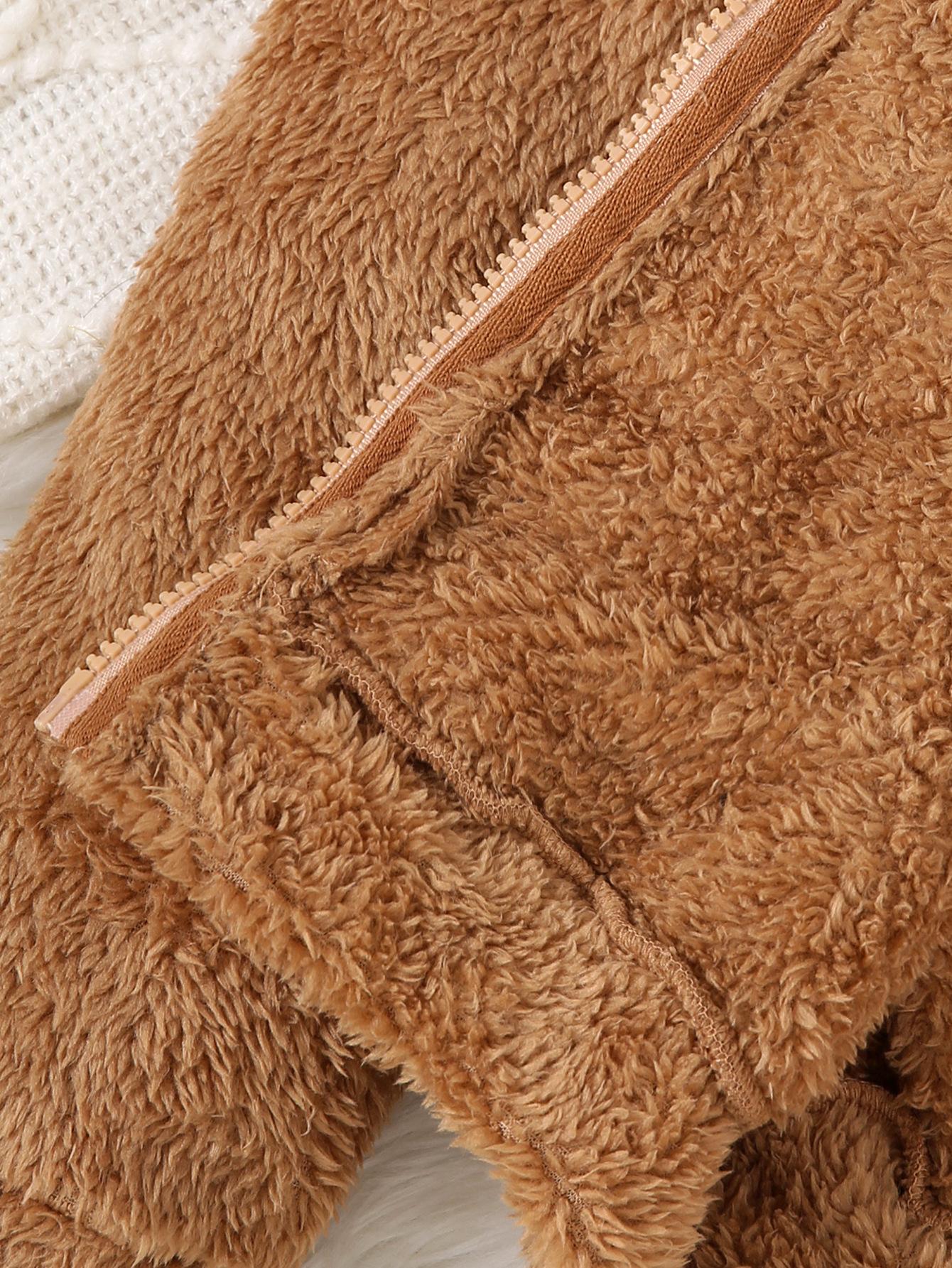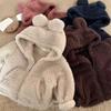 Sudadera con Capucha con Cremallera y Bolsillos Dobles Laterales para Niñas de Otoño e Invierno, con Parche de Tela de Dibujos Animados Lindo de Oso de Imitación de Piel