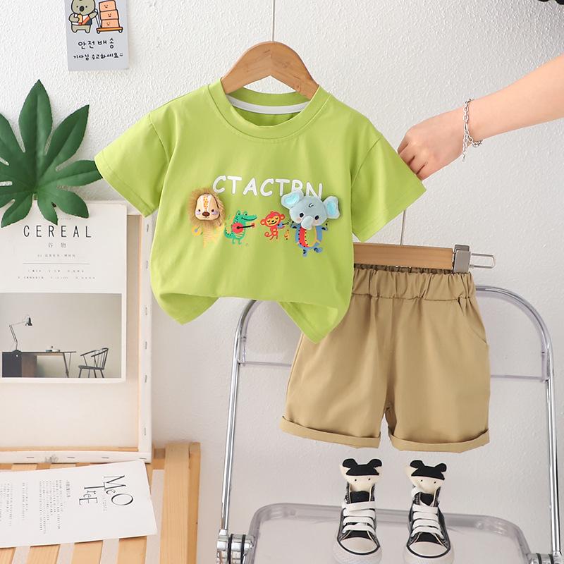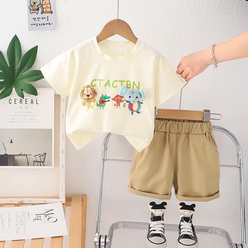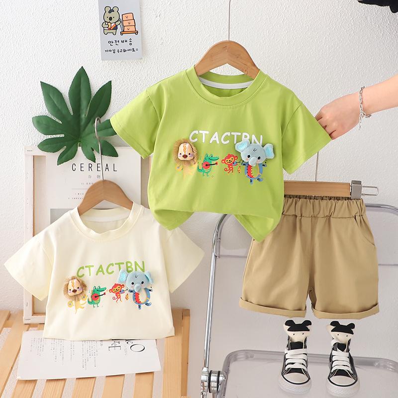 Traje de Verano para Niño 2025 Nuevo Estilo Ropa de Verano para Bebé Niños Verano Dibujos Animados Manga Corta Conjunto de Dos Piezas Moderno