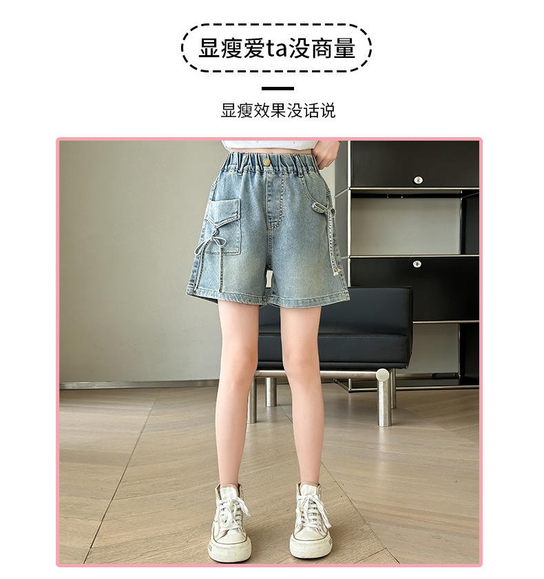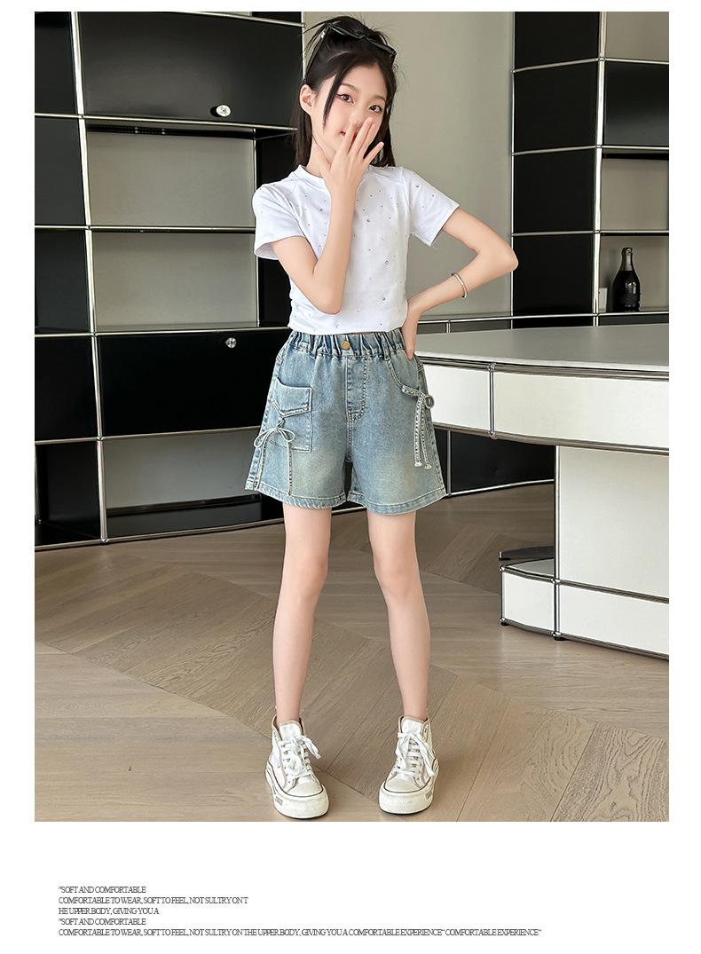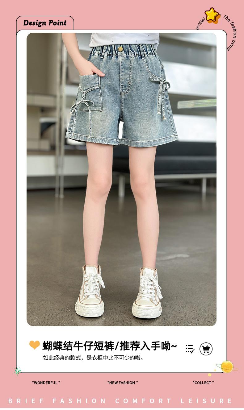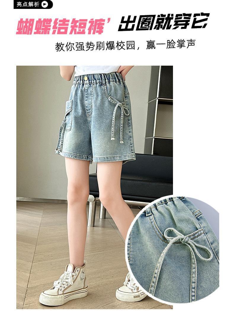 Amazon Moda Verano para Niñas Shorts de Mezclilla 2025 Nuevo Estilo Coreano Mediano y Grande Niños Delgados Lazo Pantalones Cortos Hot Pants Trendy