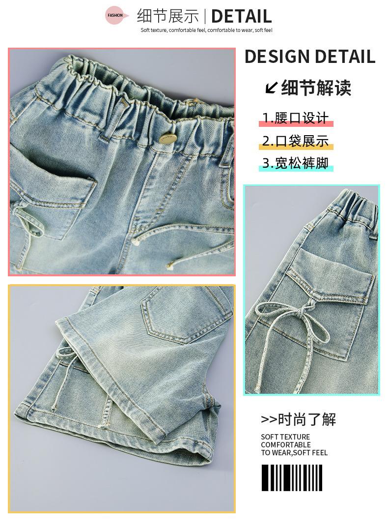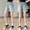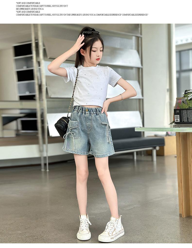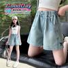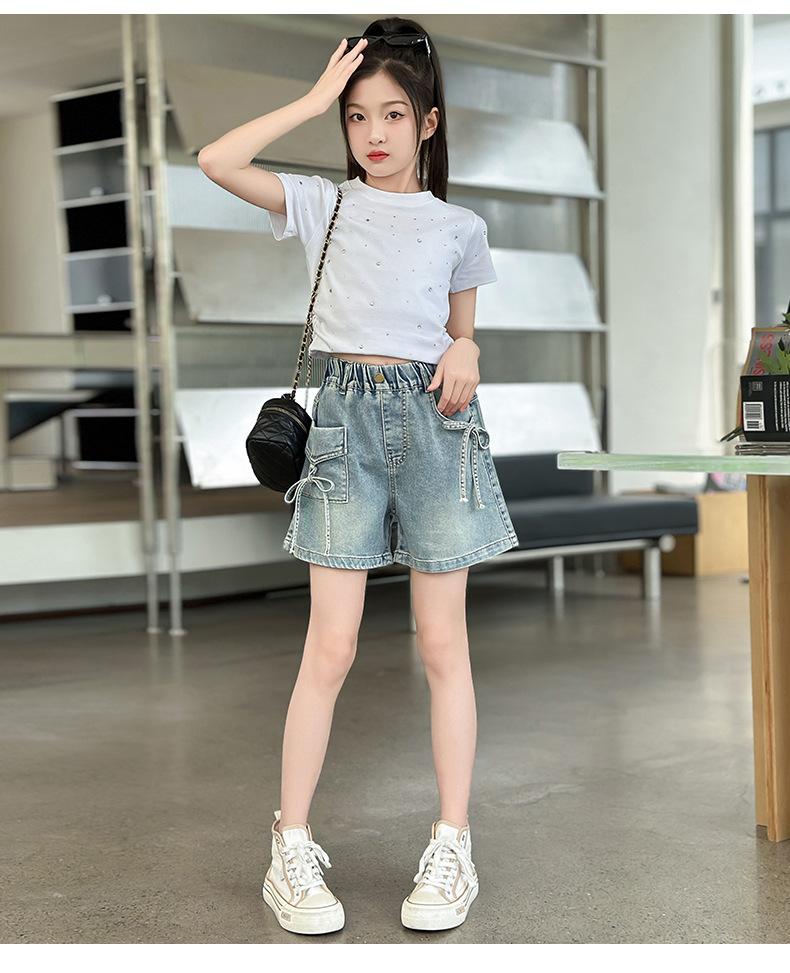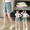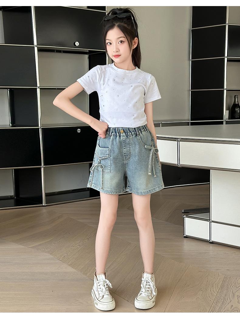 Amazon Moda Verano para Niñas Shorts de Mezclilla 2025 Nuevo Estilo Coreano Mediano y Grande Niños Delgados Lazo Pantalones Cortos Hot Pants Trendy