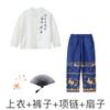 325 White Guofeng Long Sleeve 215 Xizang Blue Nine-color Deer Trousers White Jade Waist Pei Ning Necklace Black Fan