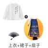 325 White Guofeng Long-sleeved 218 Xizang Blue Nine-color Deer Skirt Nian Necklace Black Fan