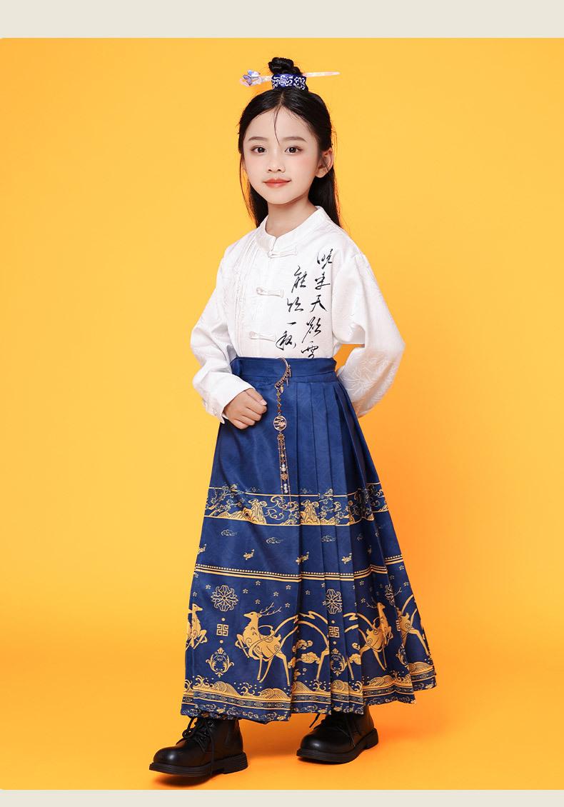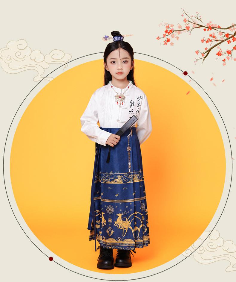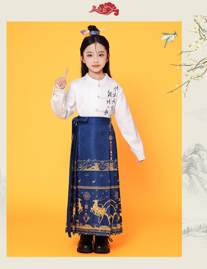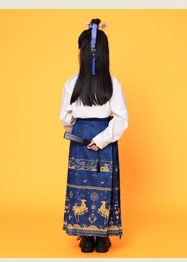 325 White Guofeng Long-sleeved 218 Xizang Blue Nine-color Deer Skirt White Jade Waist