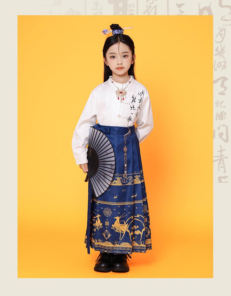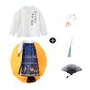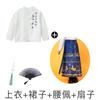 325 White Guofeng Long-sleeved 218 Xizang Nine-color Deer Skirt White Jade Waist Black Fan